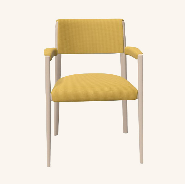 Seat and backrest in fabric (yellow). Legs in wood (birch).
