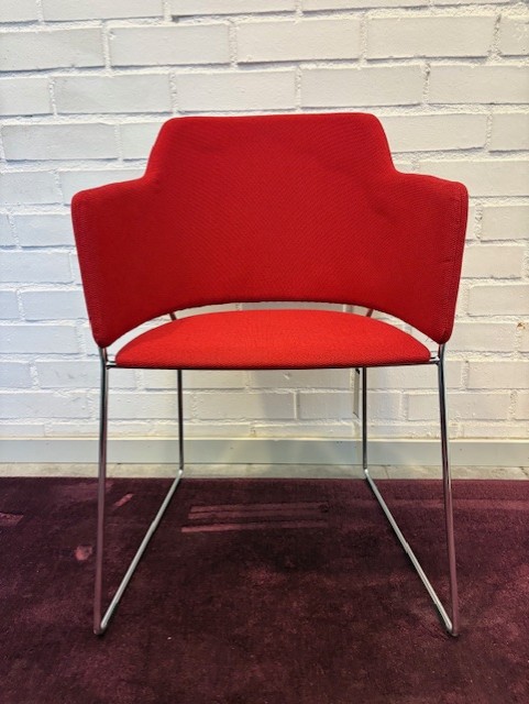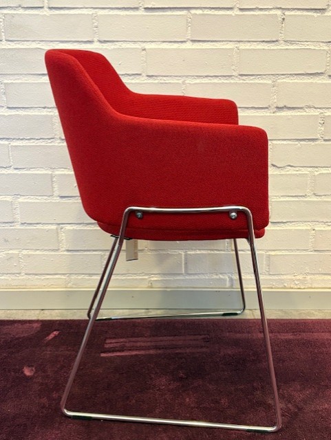 Seat and backrest in fabric (red). Sledgebase in metal (chrome).