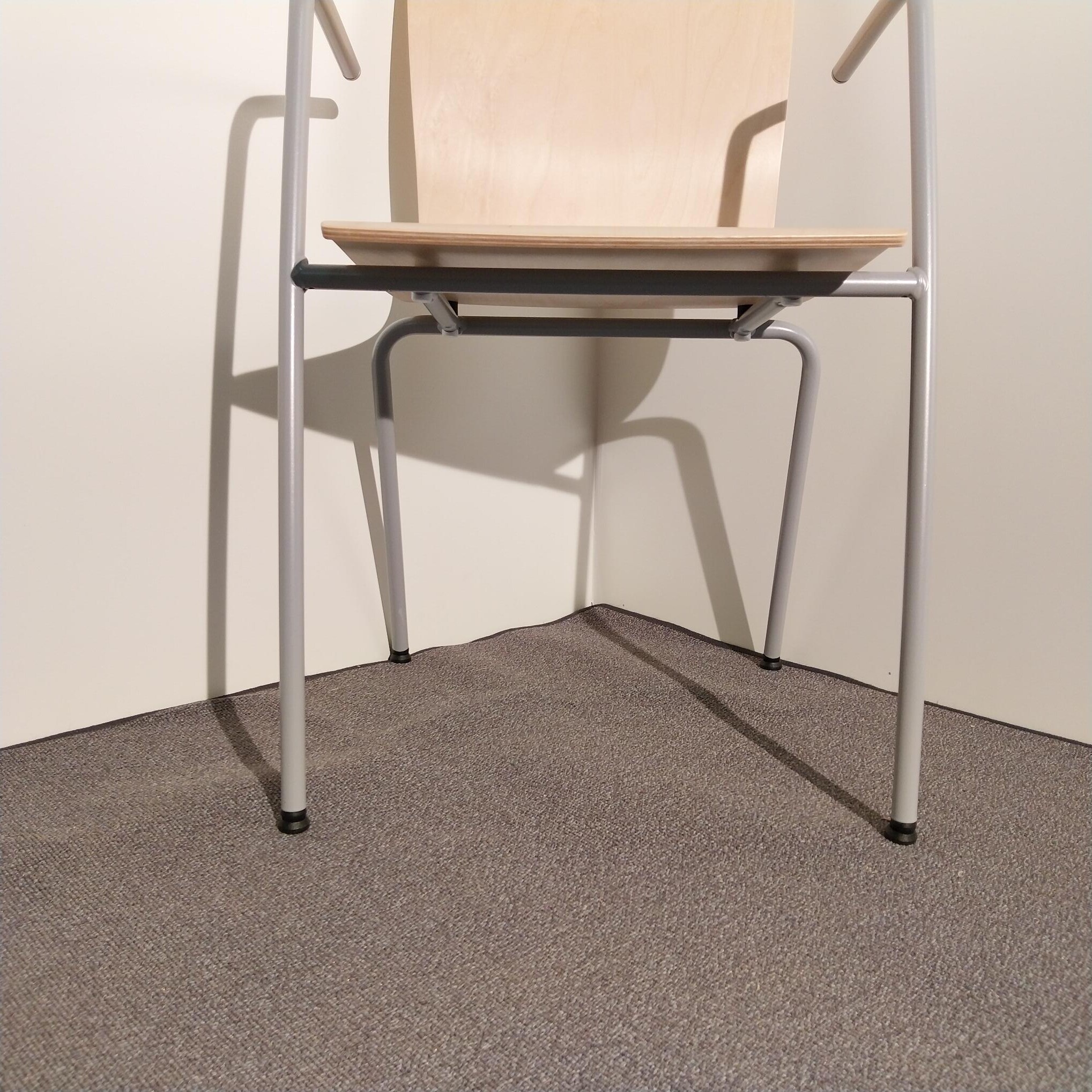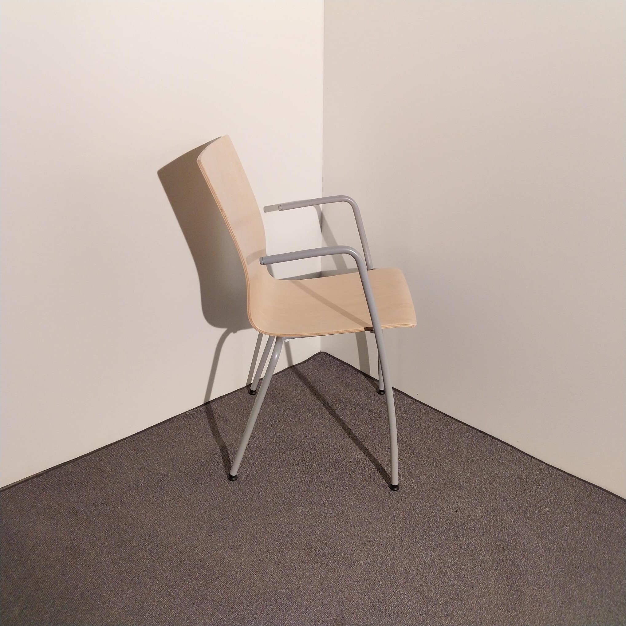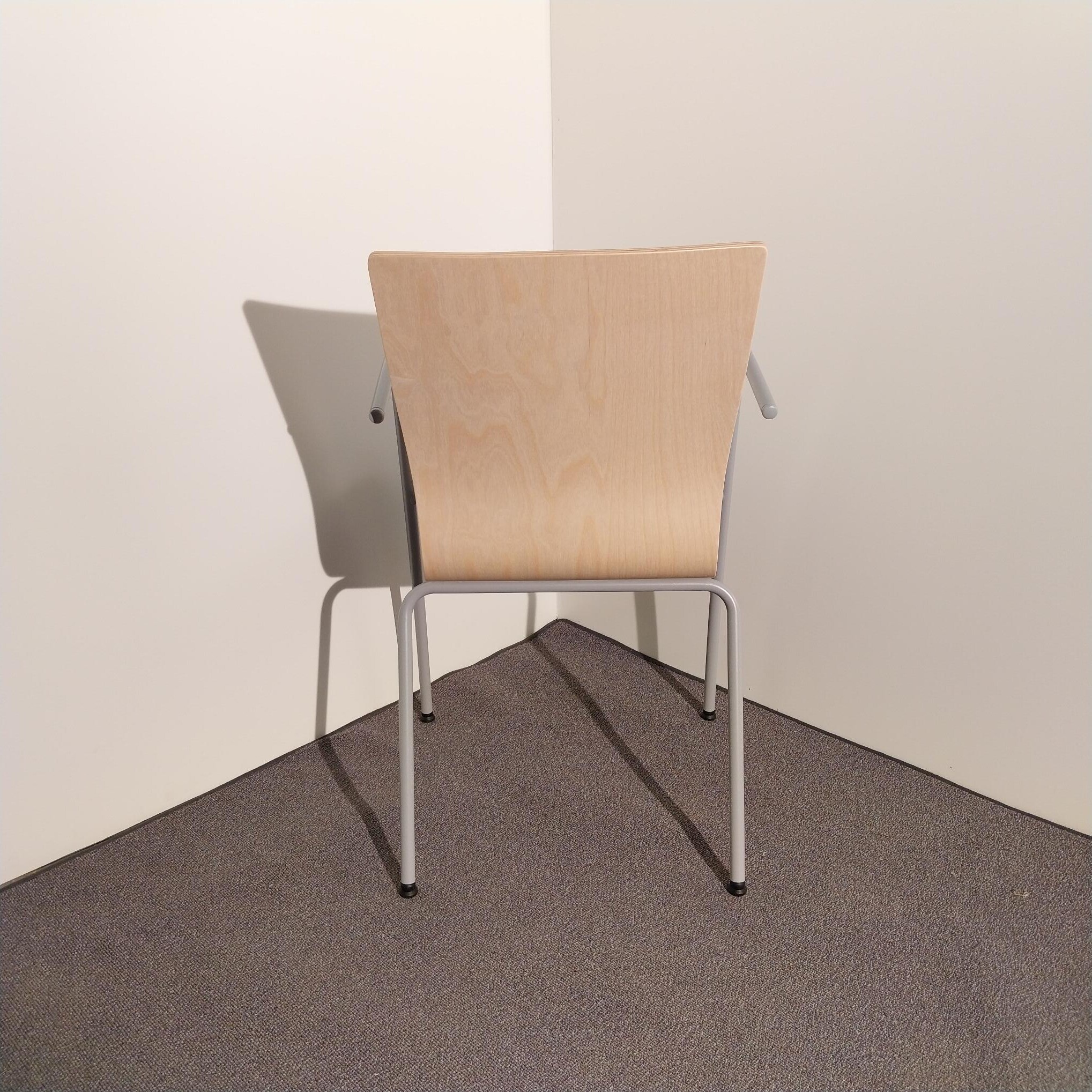 Seat and backrest in wood (birch). Legs in metal (silver).