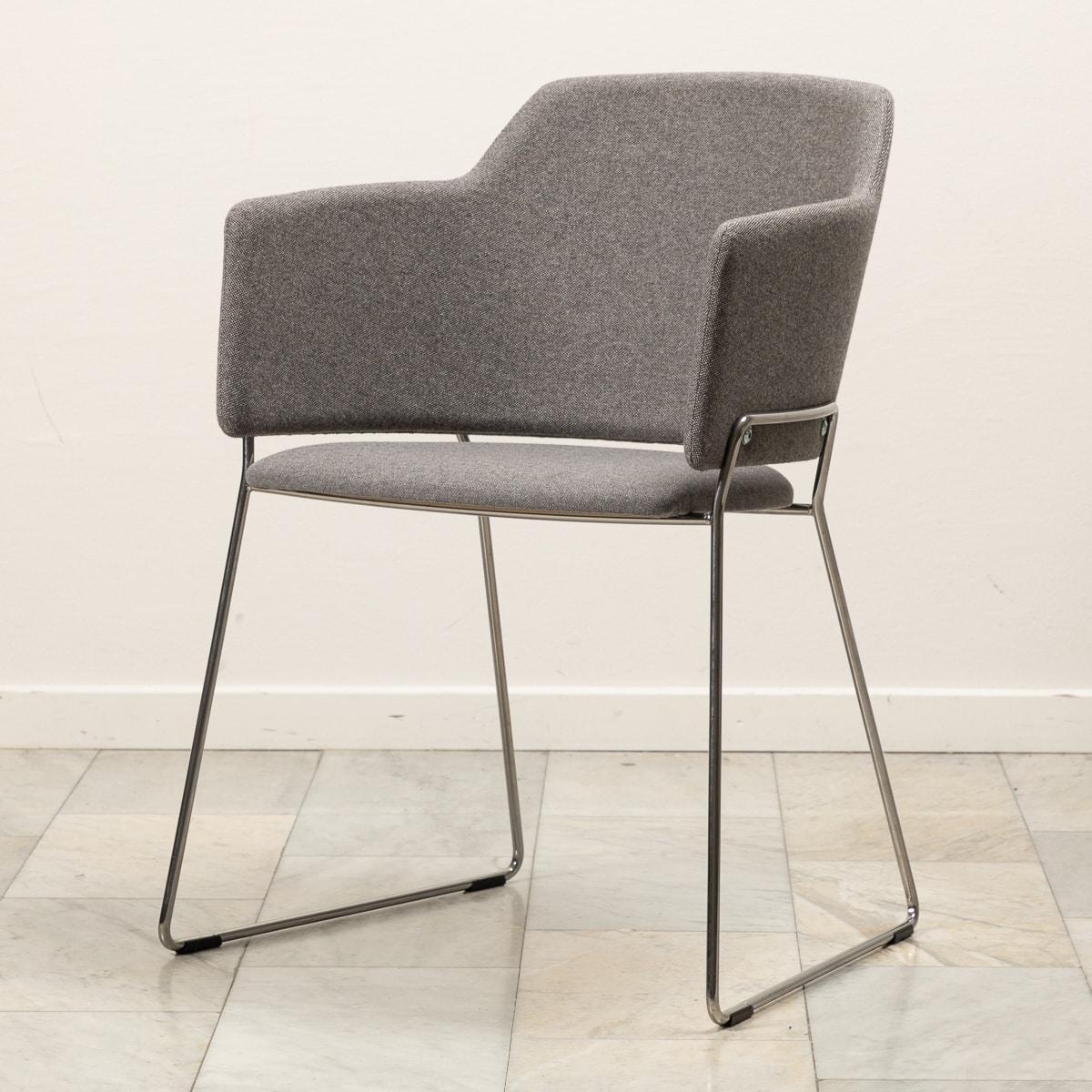 Seat and backrest in fabric (grey). Sledgebase in metal (chrome).