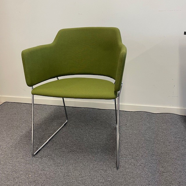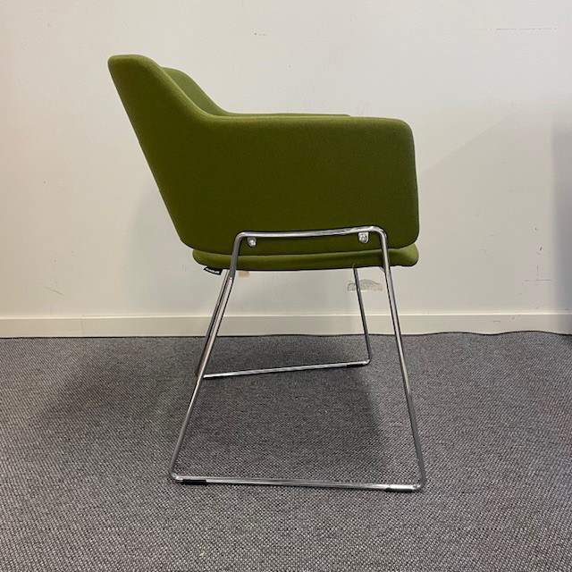 Seat and backrest in fabric (green). Sledgebase in metal (chrome).