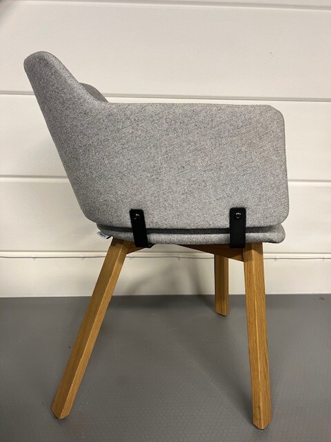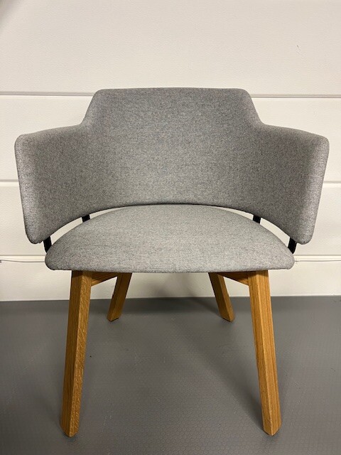 Seat and backrest in fabric (grey). Legs in wood (oak).