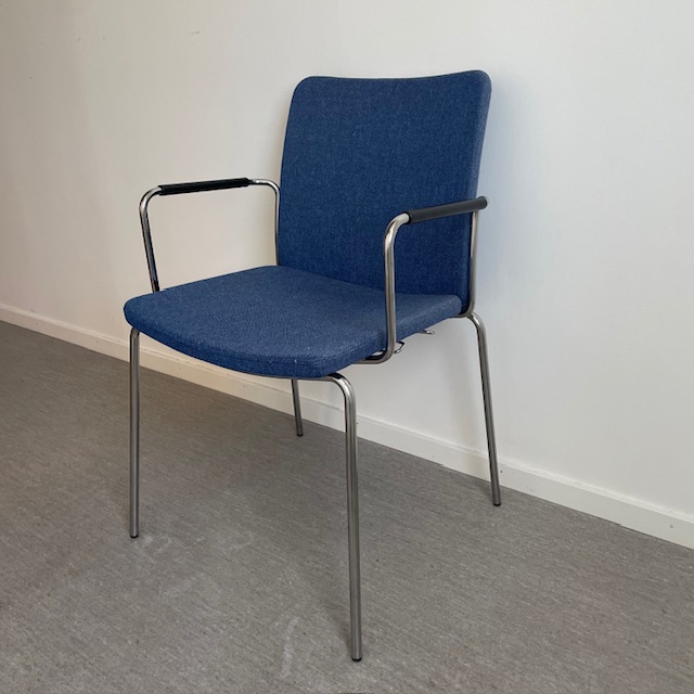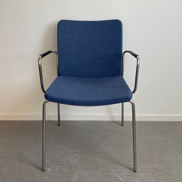 Seat and backrest in fabric (blue). Legs in metal (chrome).