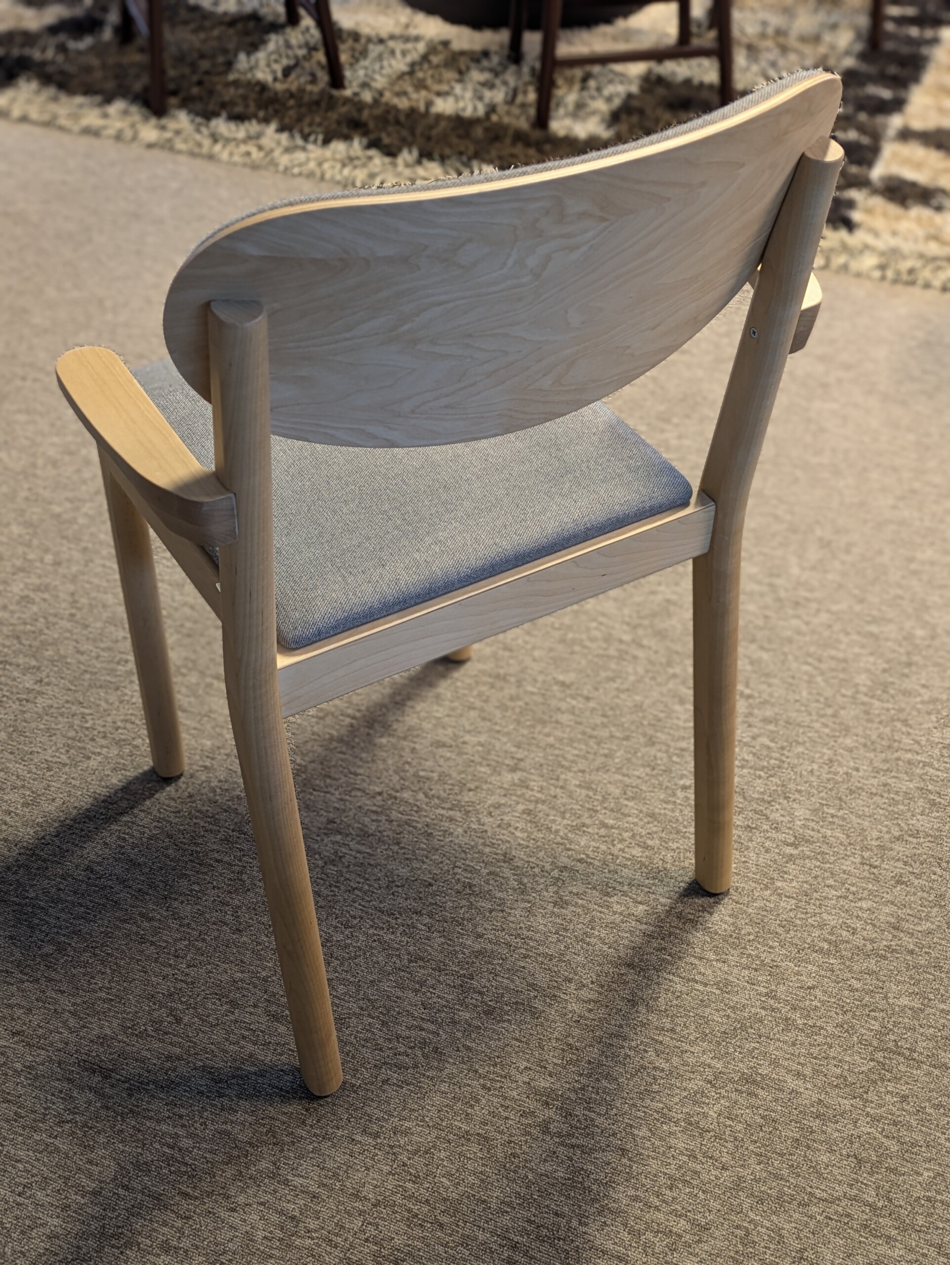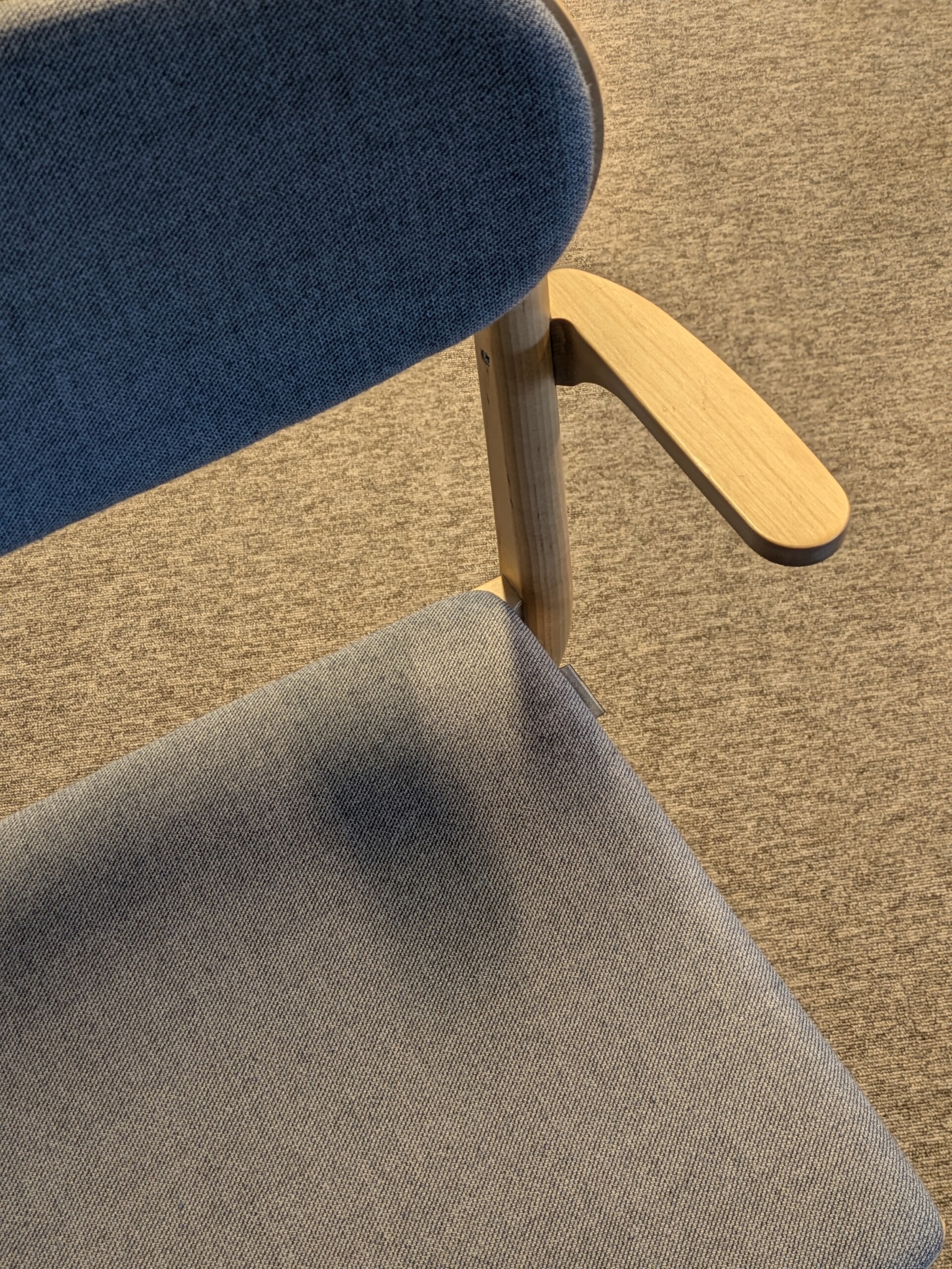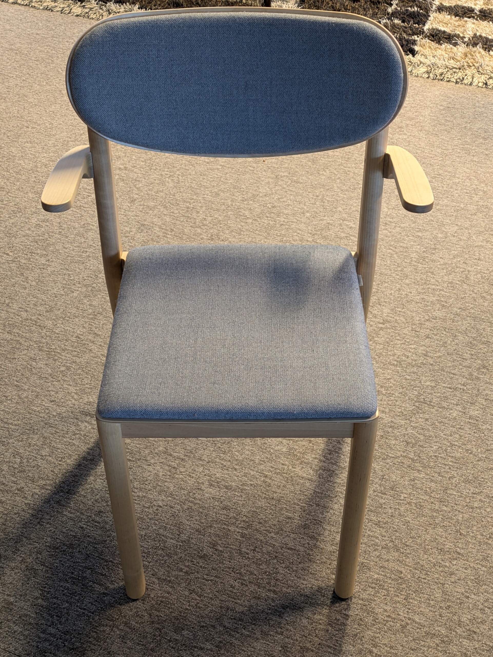 Seat in fabric (grey). Backrest in wood (birch). Legs in wood (birch).