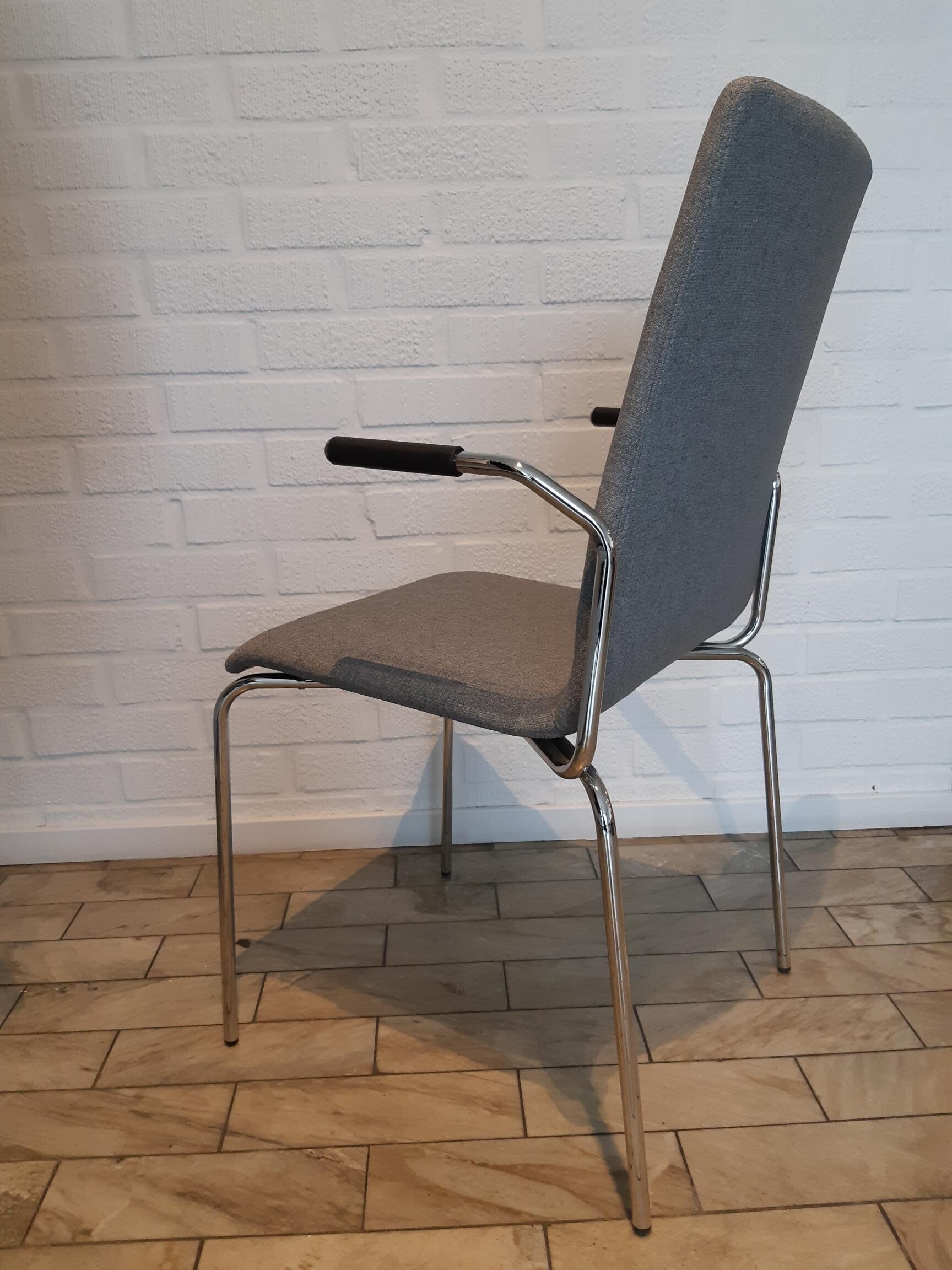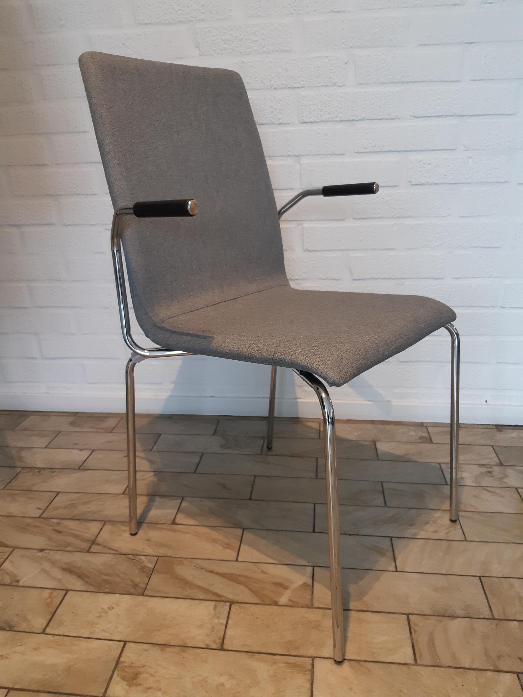 Seat and backrest in fabric (grey). Legs in metal (chrome).