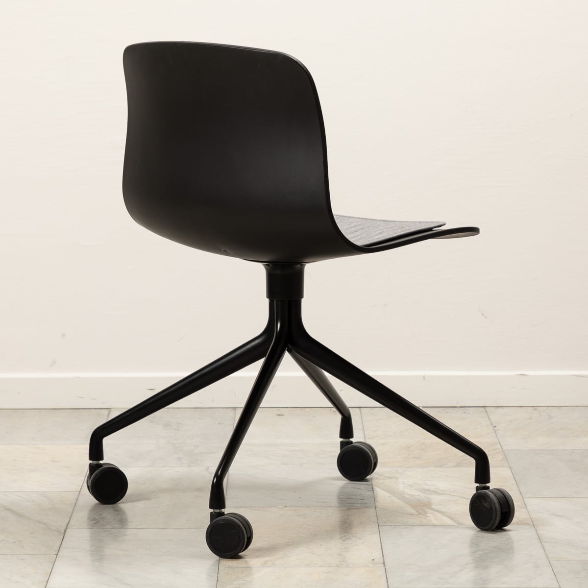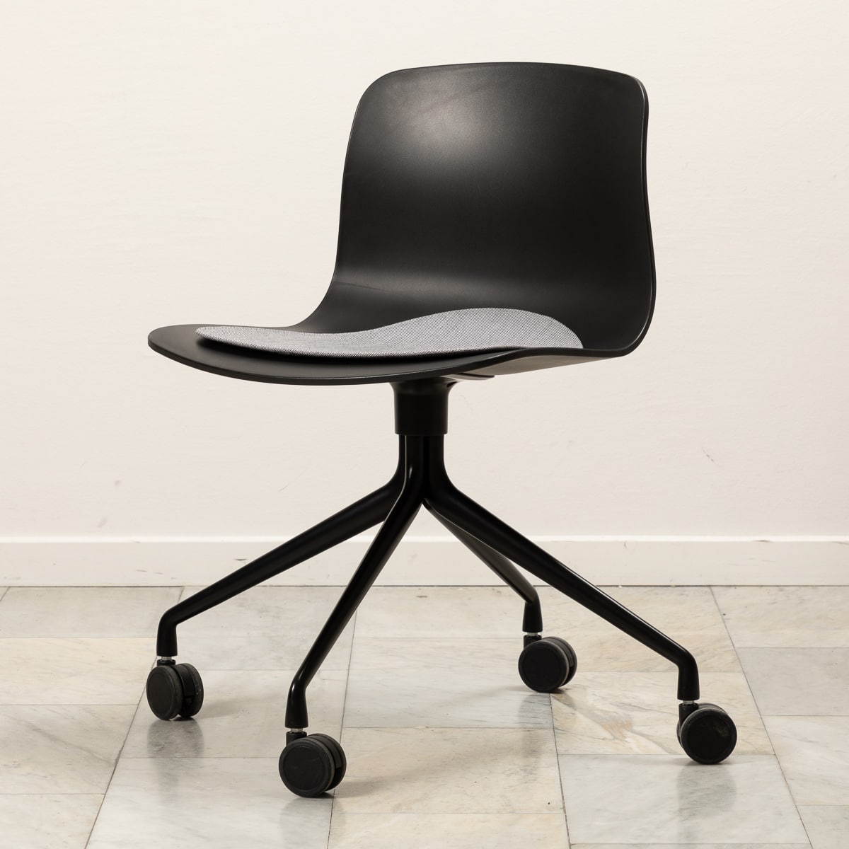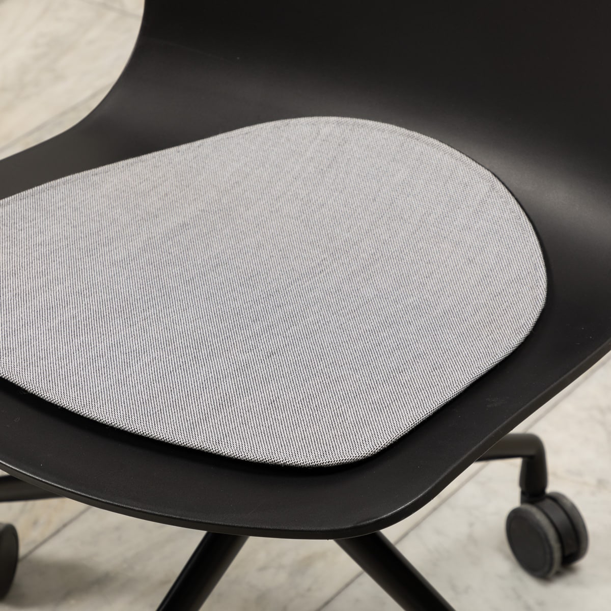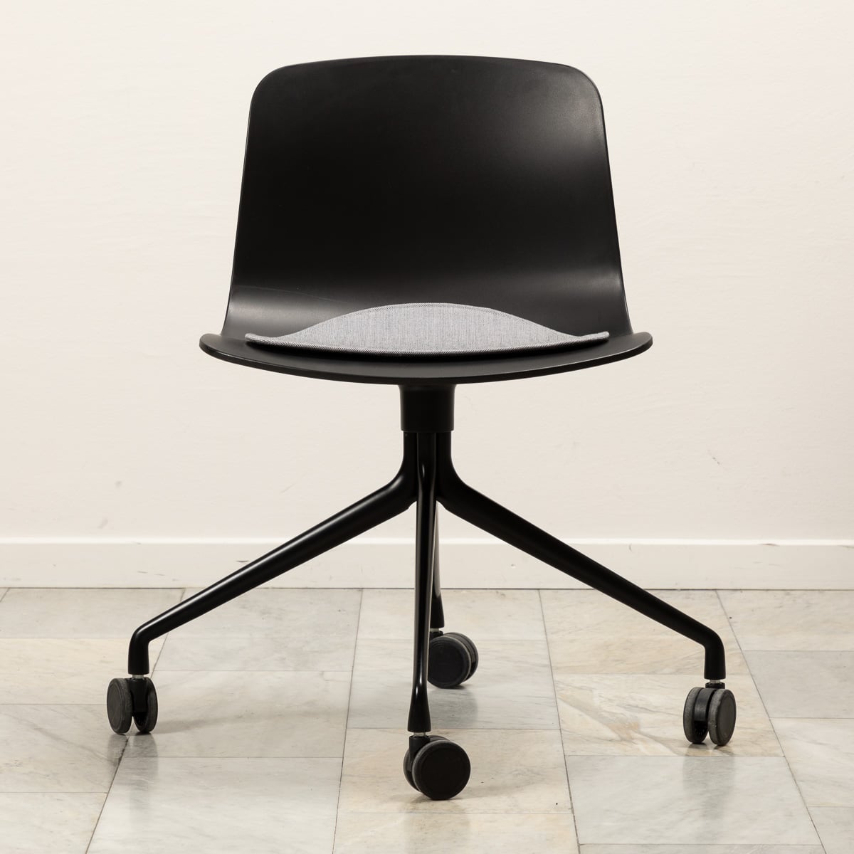 Seat in fabric (grey). Backrest in plastic (black). Star base in metal (black).