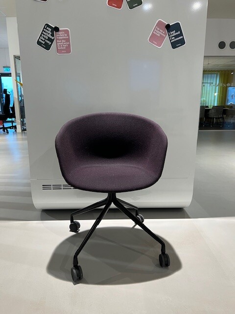 Seat and backrest in fabric (purple). Star base in metal (black).