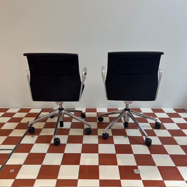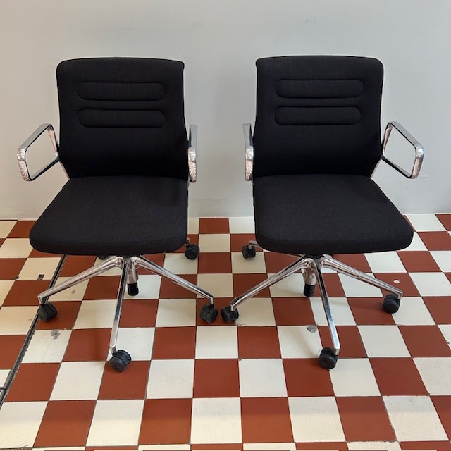 Seat and backrest in fabric (black). Star base in metal (chrome). Adjustable height.