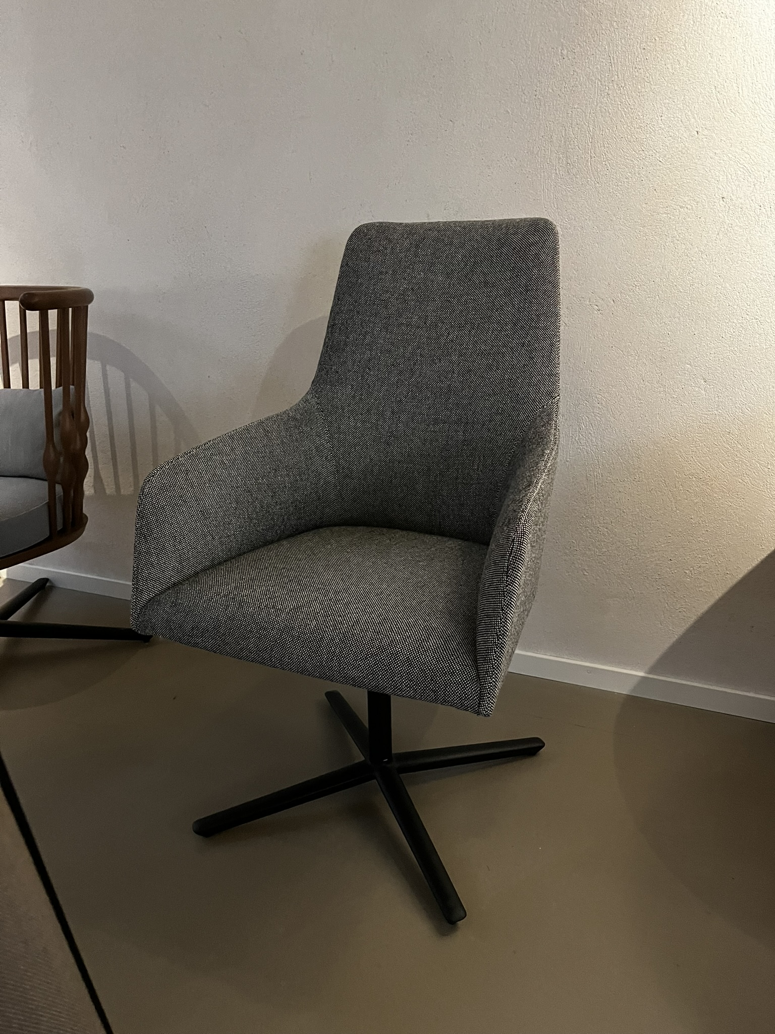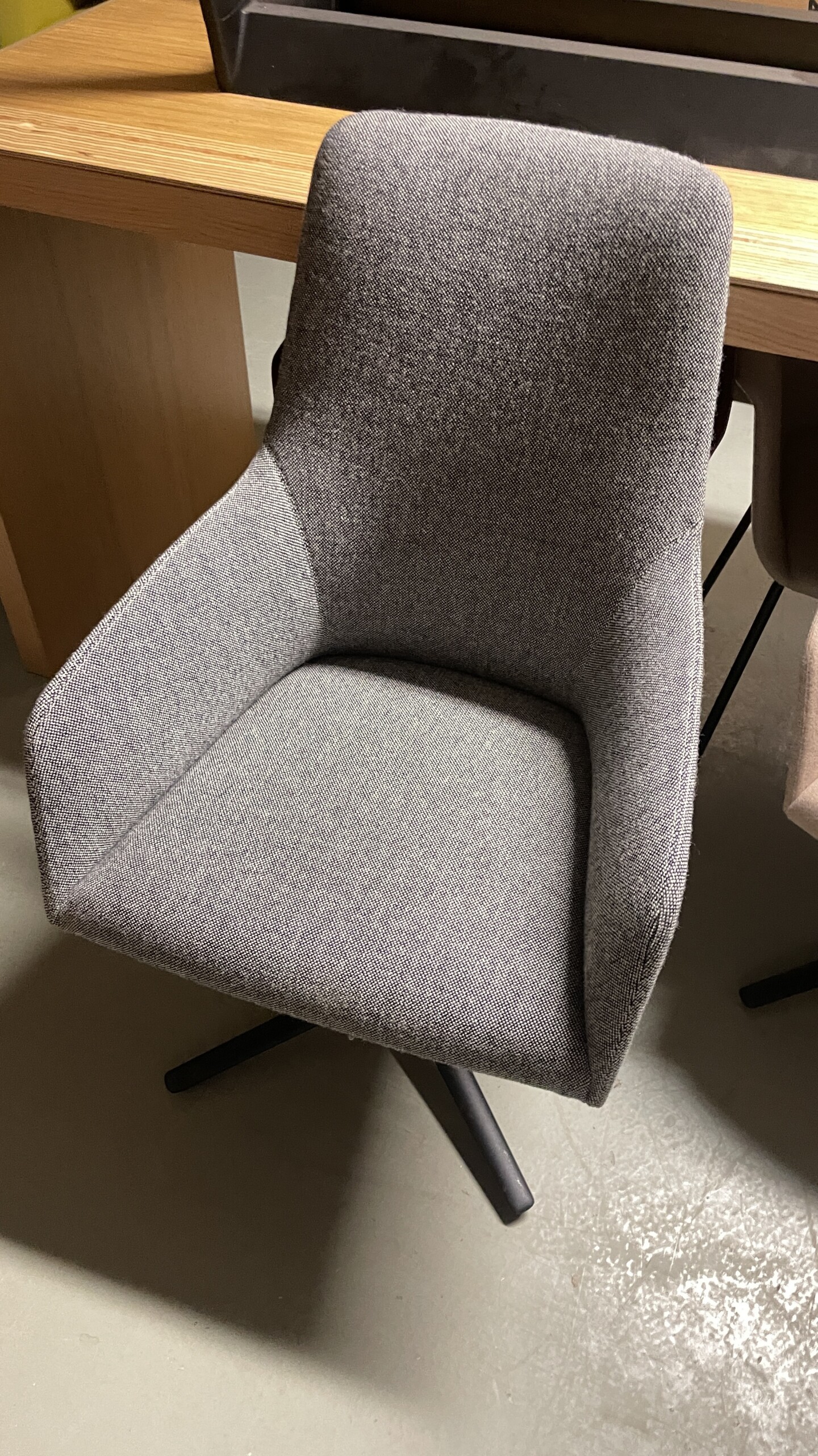 Seat and backrest in fabric (grey). Star base in metal (aluminium).