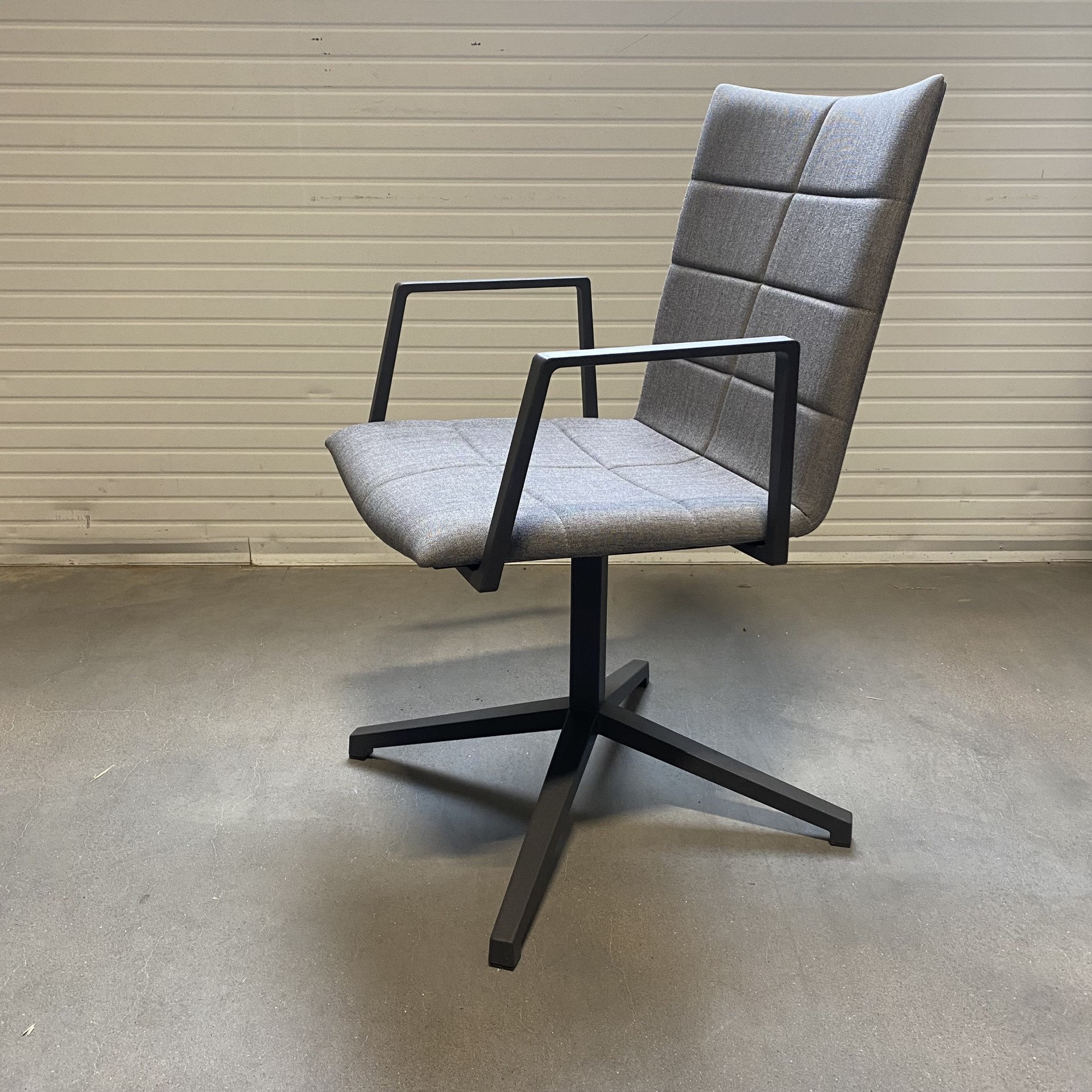 Seat and backrest in fabric (grey). Star base in metal (black).