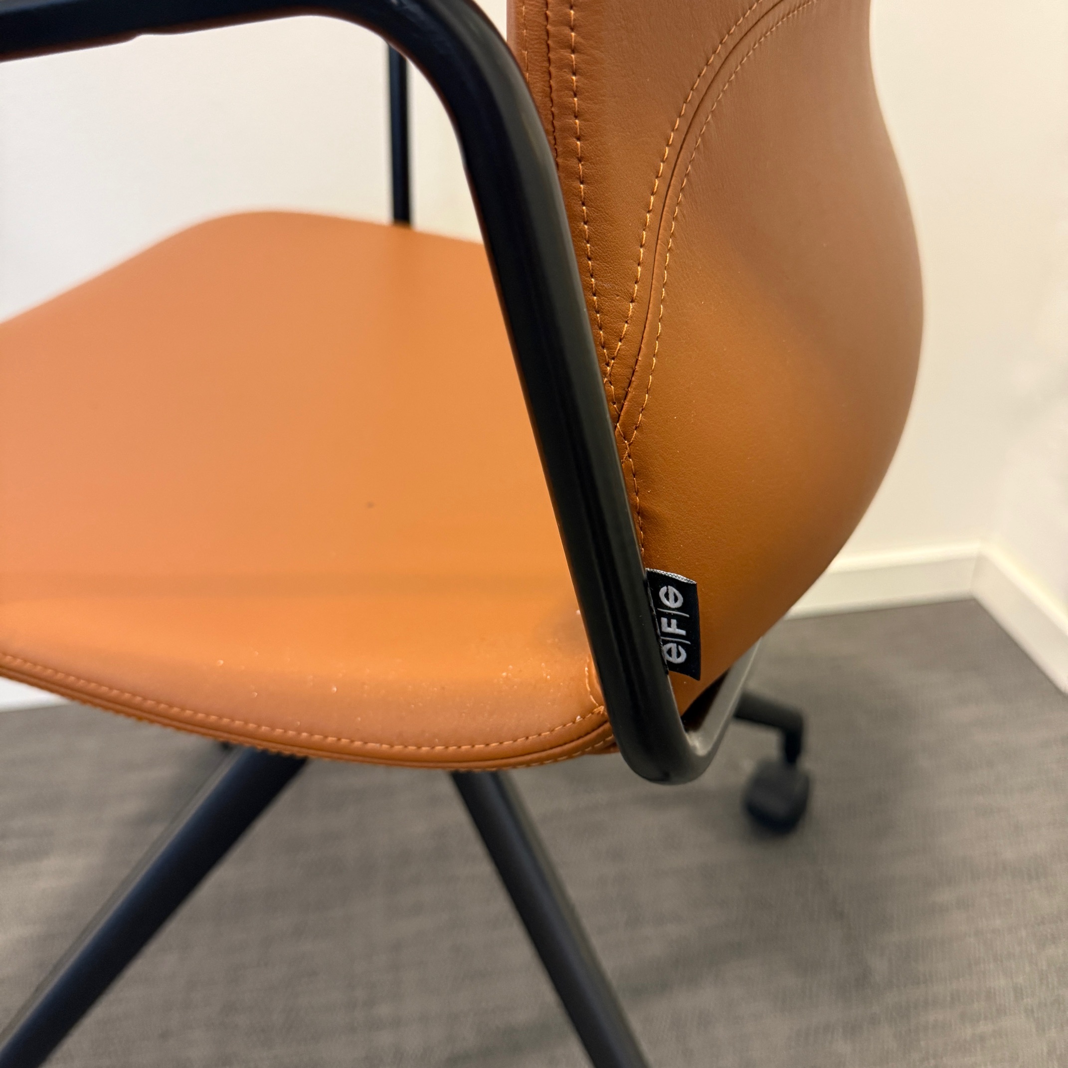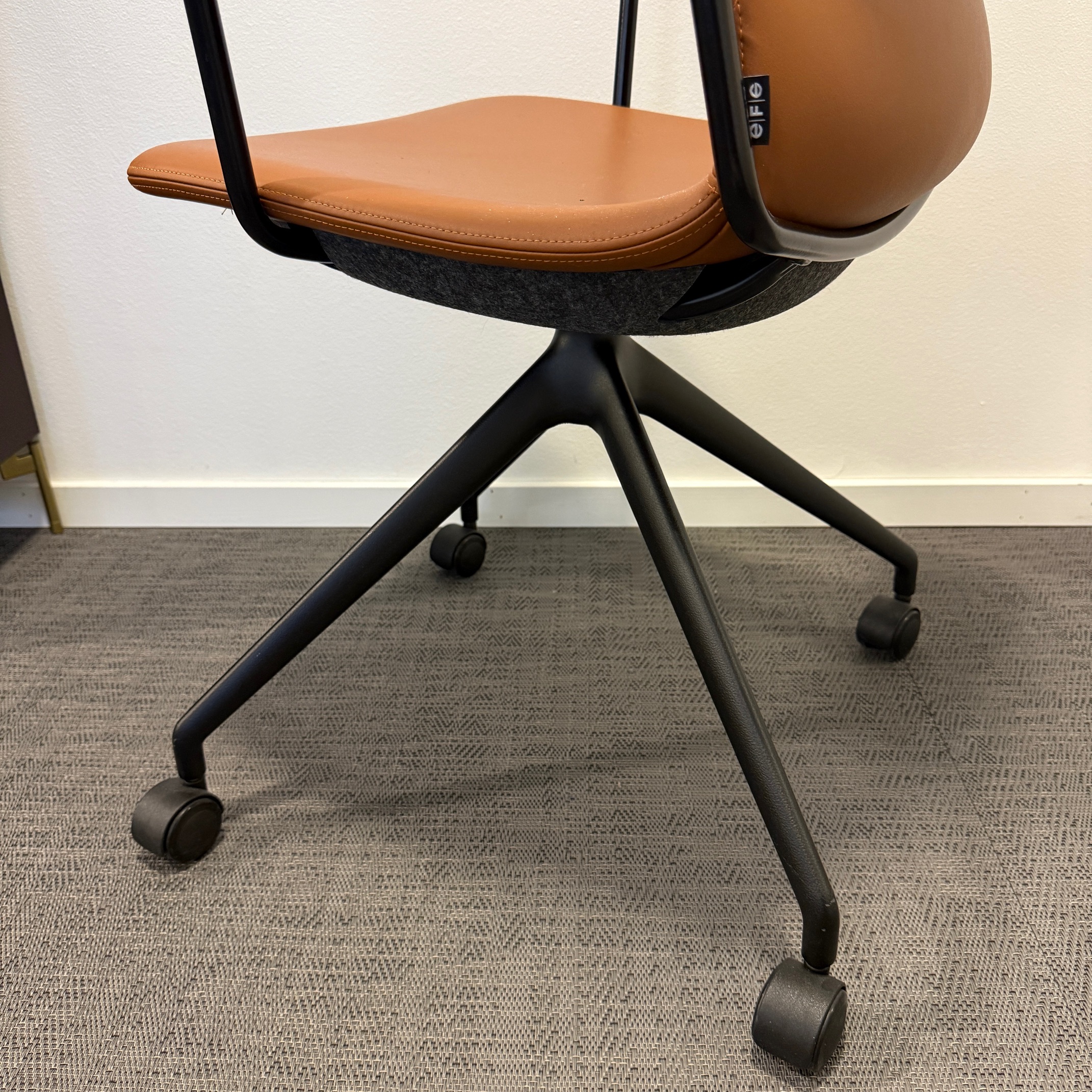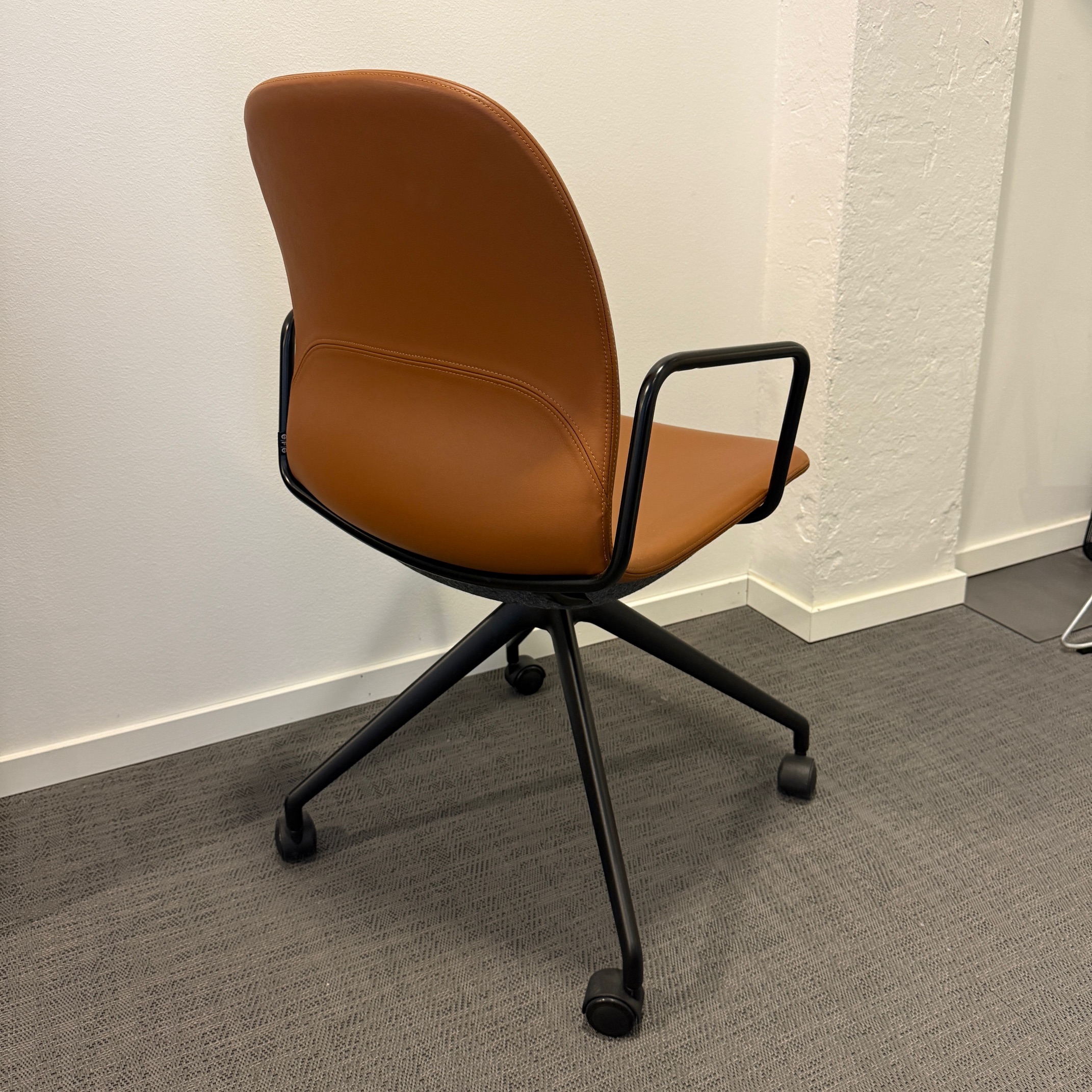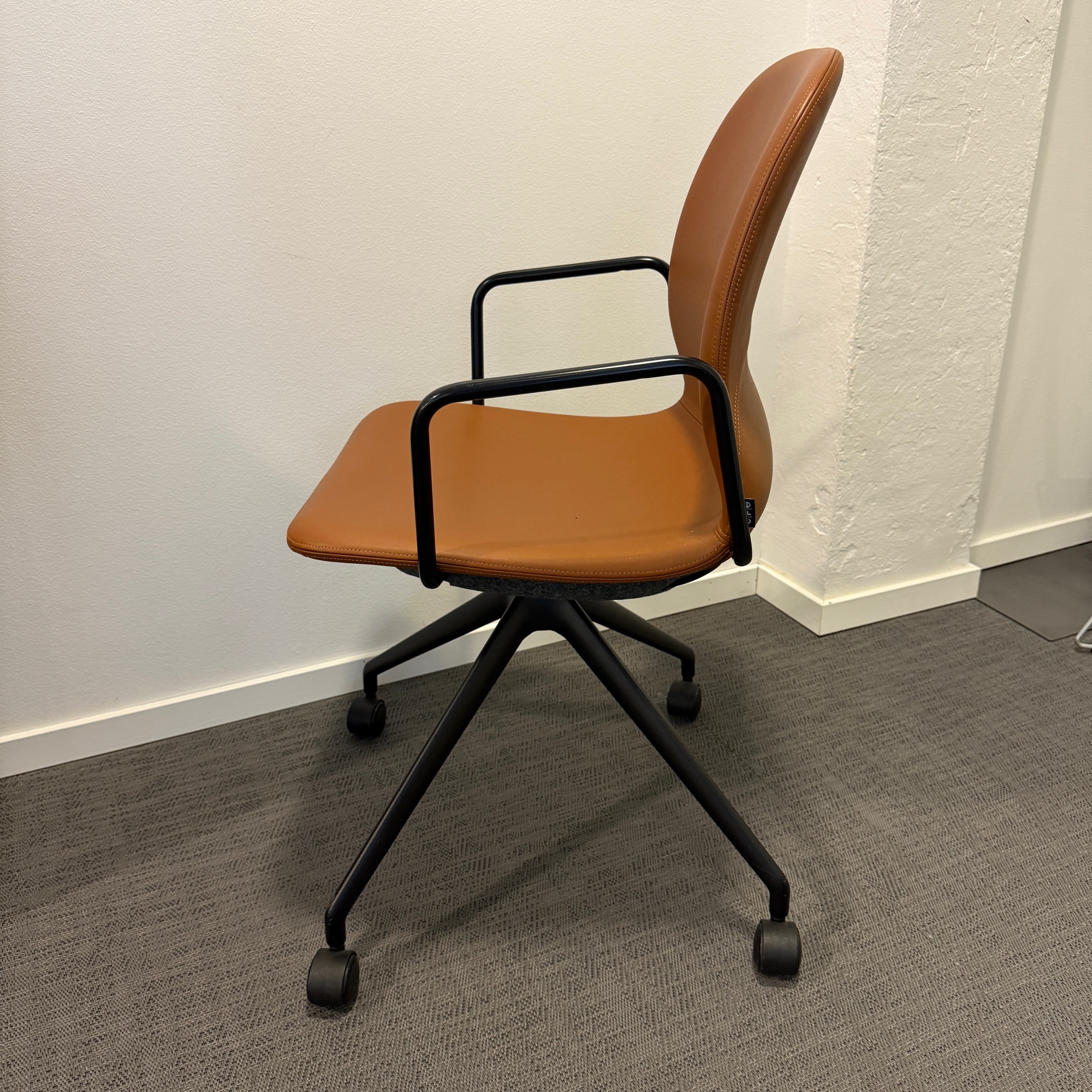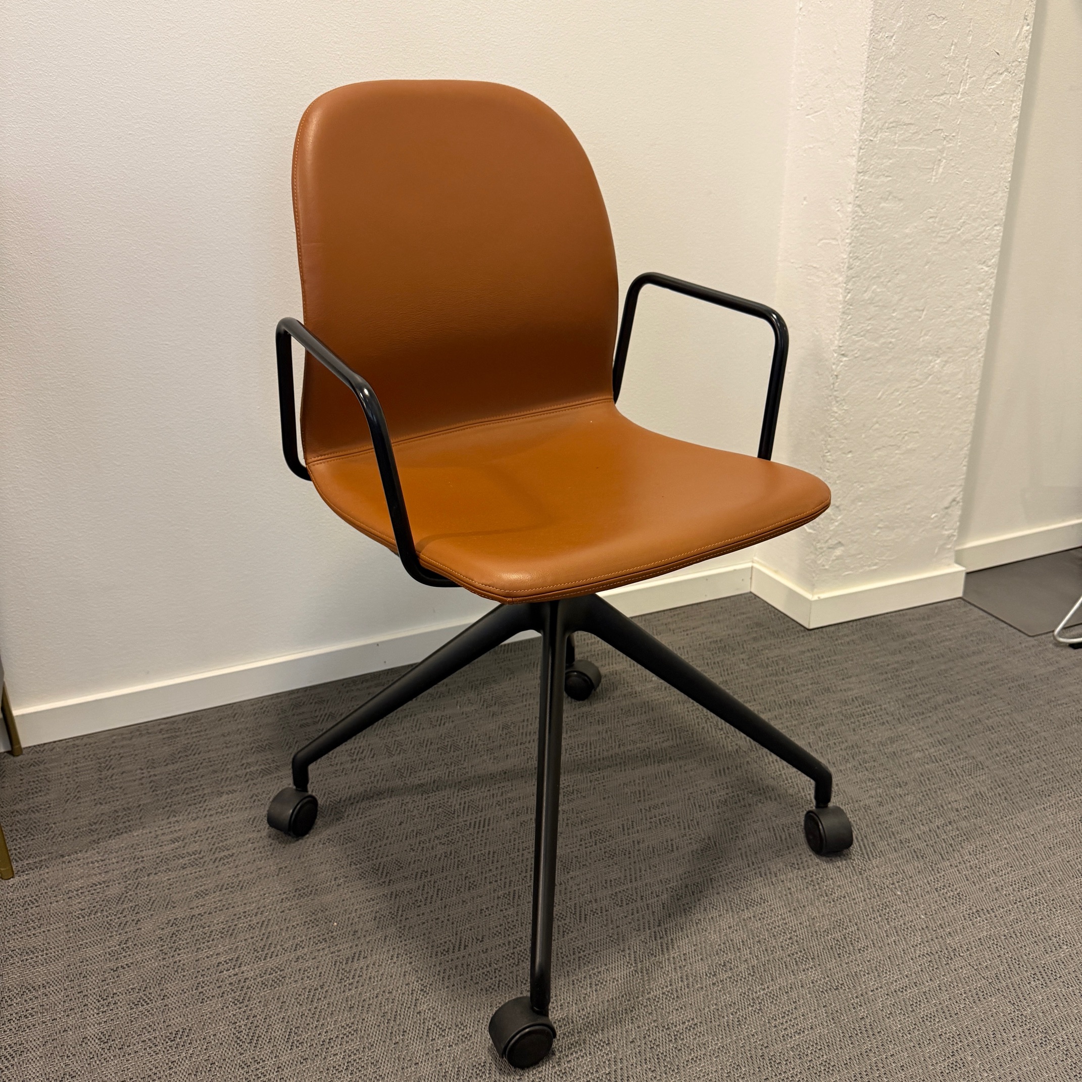 Seat and backrest in leather (brown). Star base in metal (black).