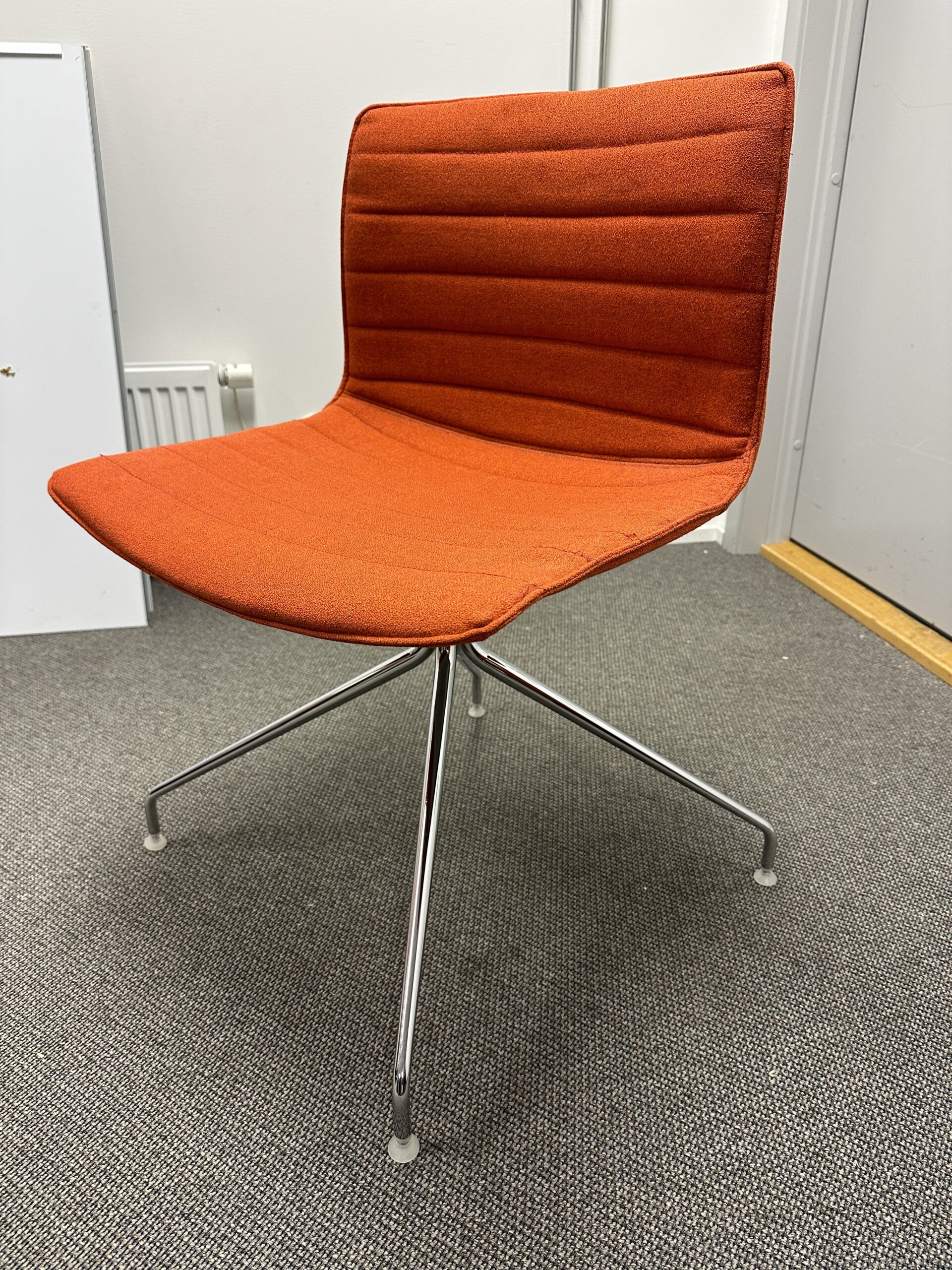 Seat and backrest in fabric (orange). Star base in metal (chrome).
