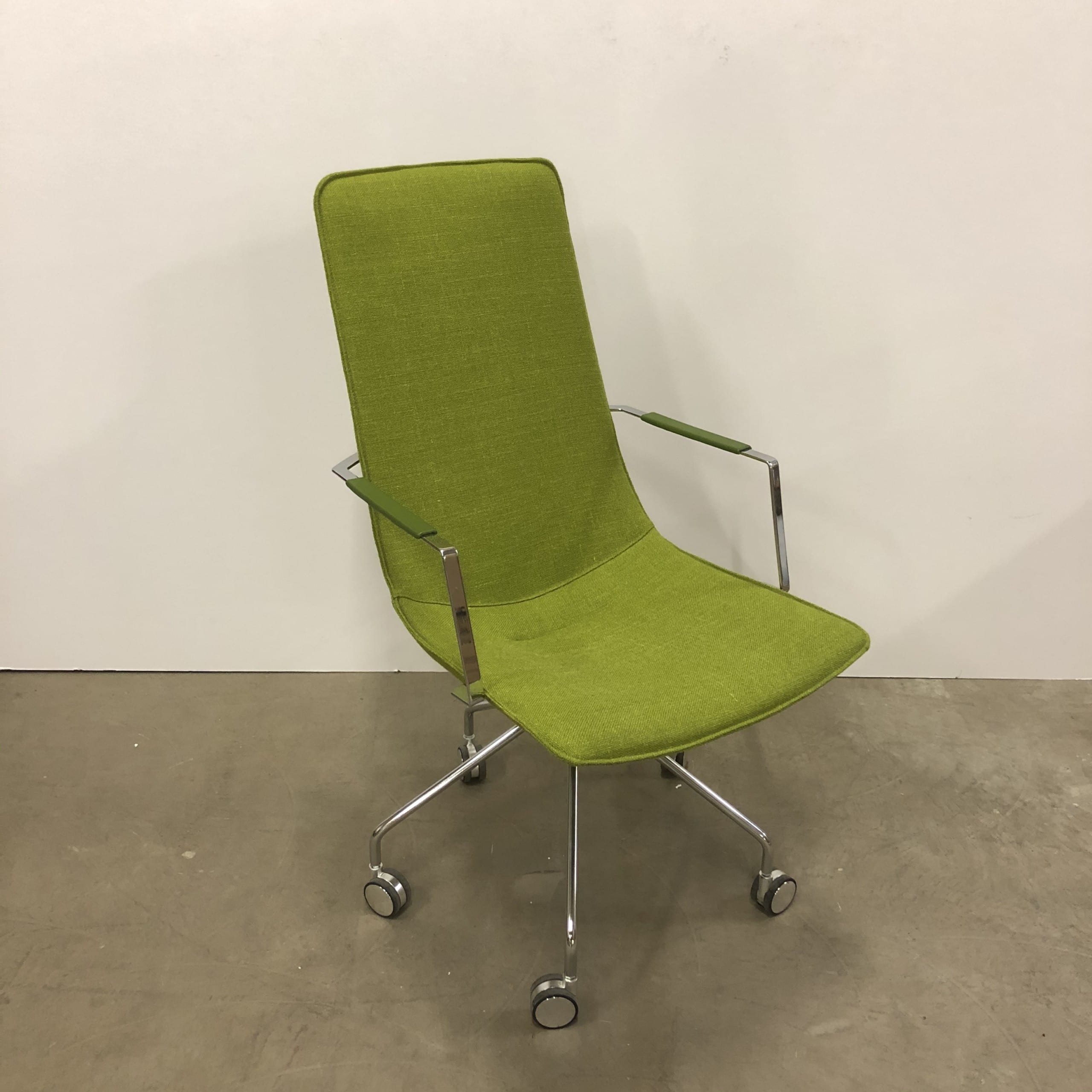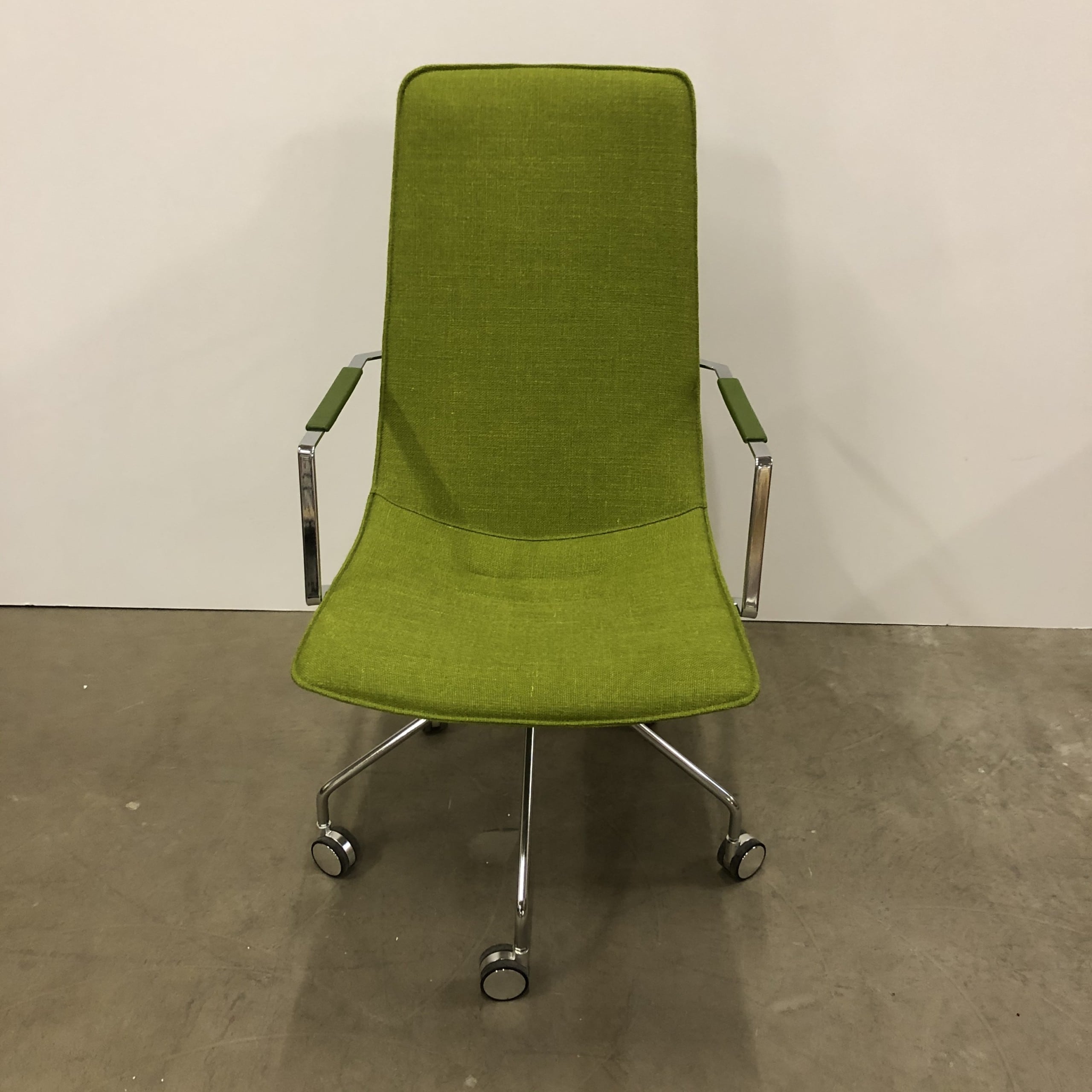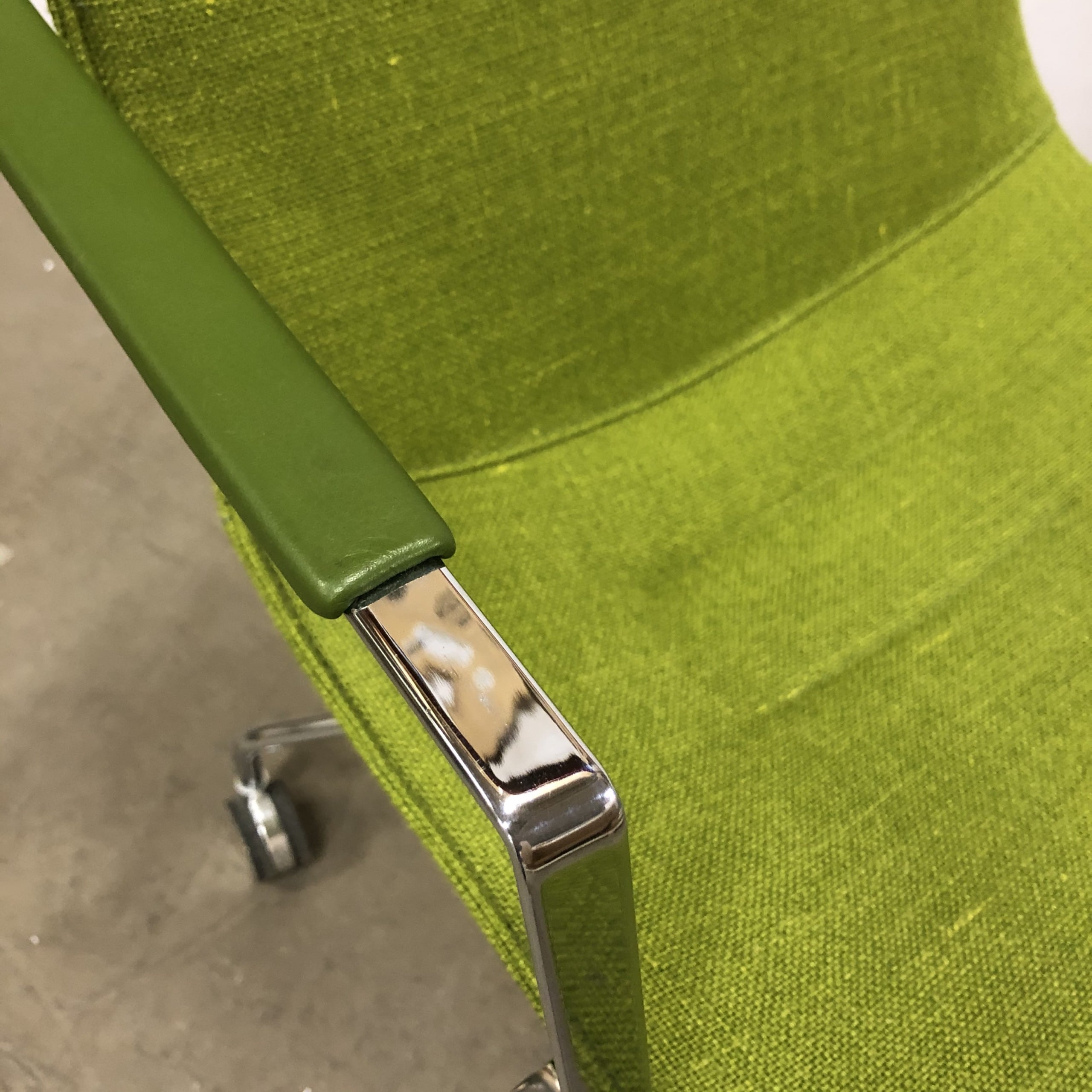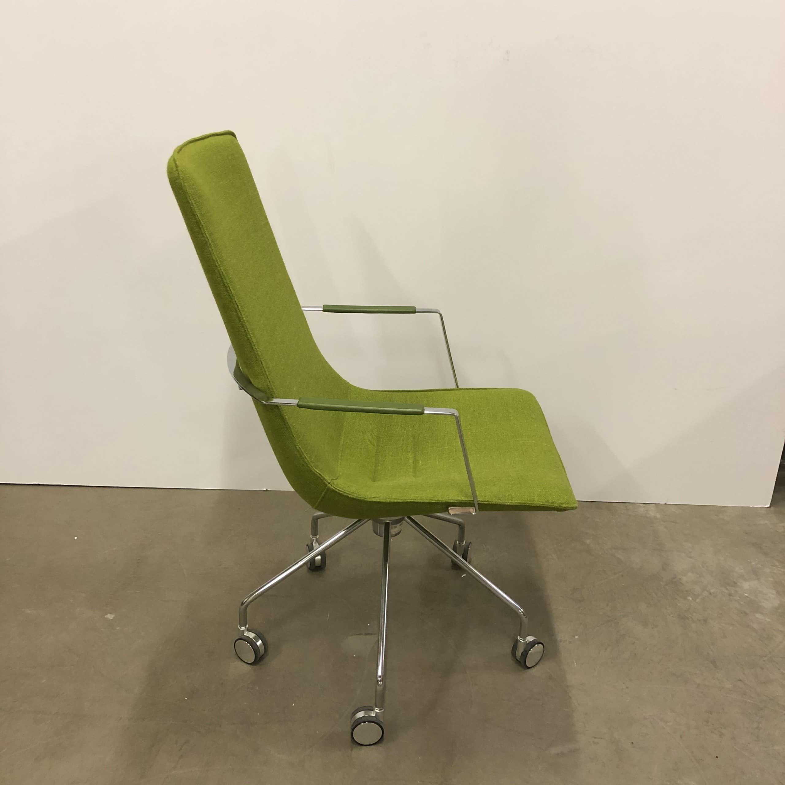 Seat and backrest in fabric (green). Star base in metal (chrome).