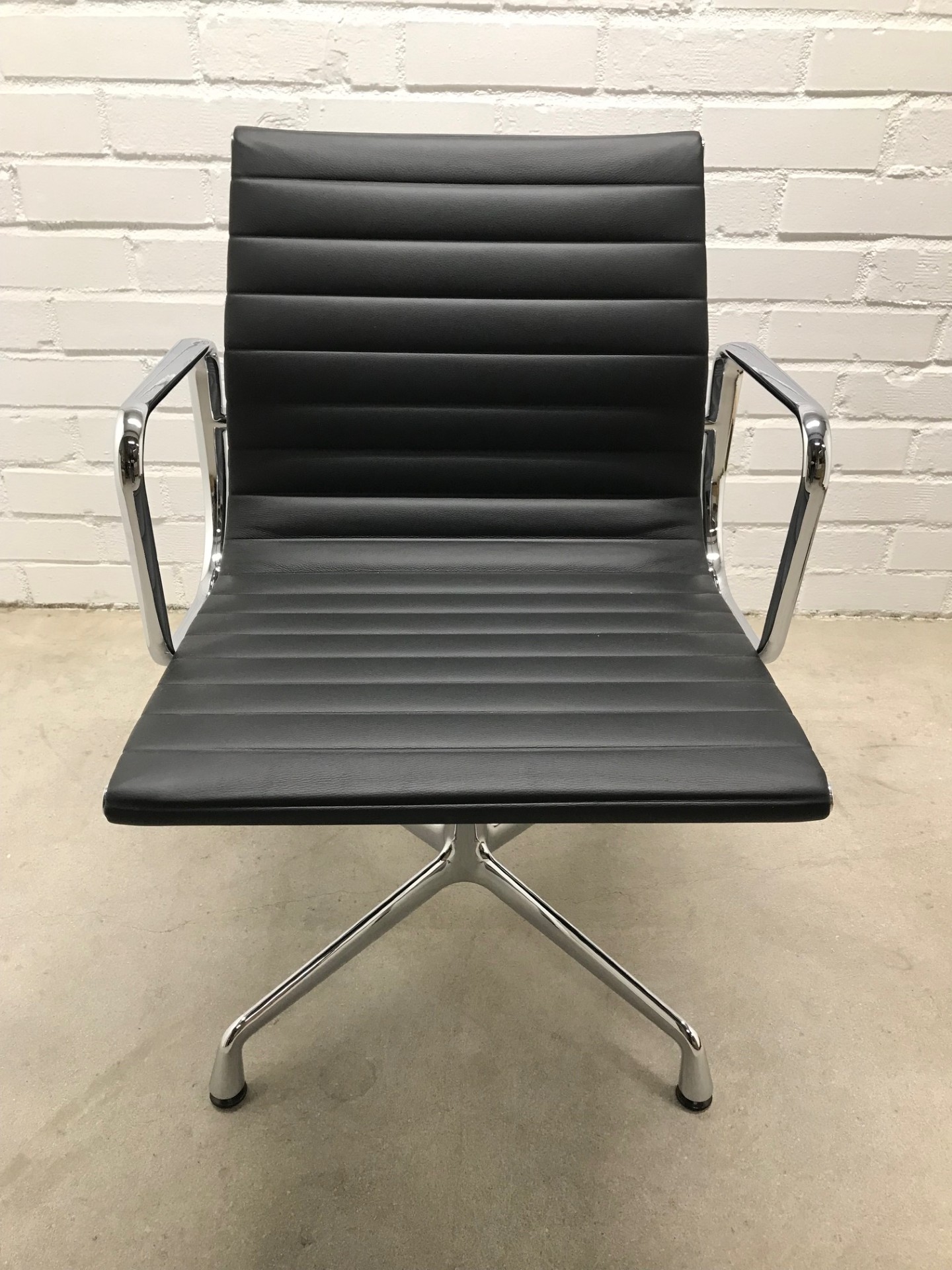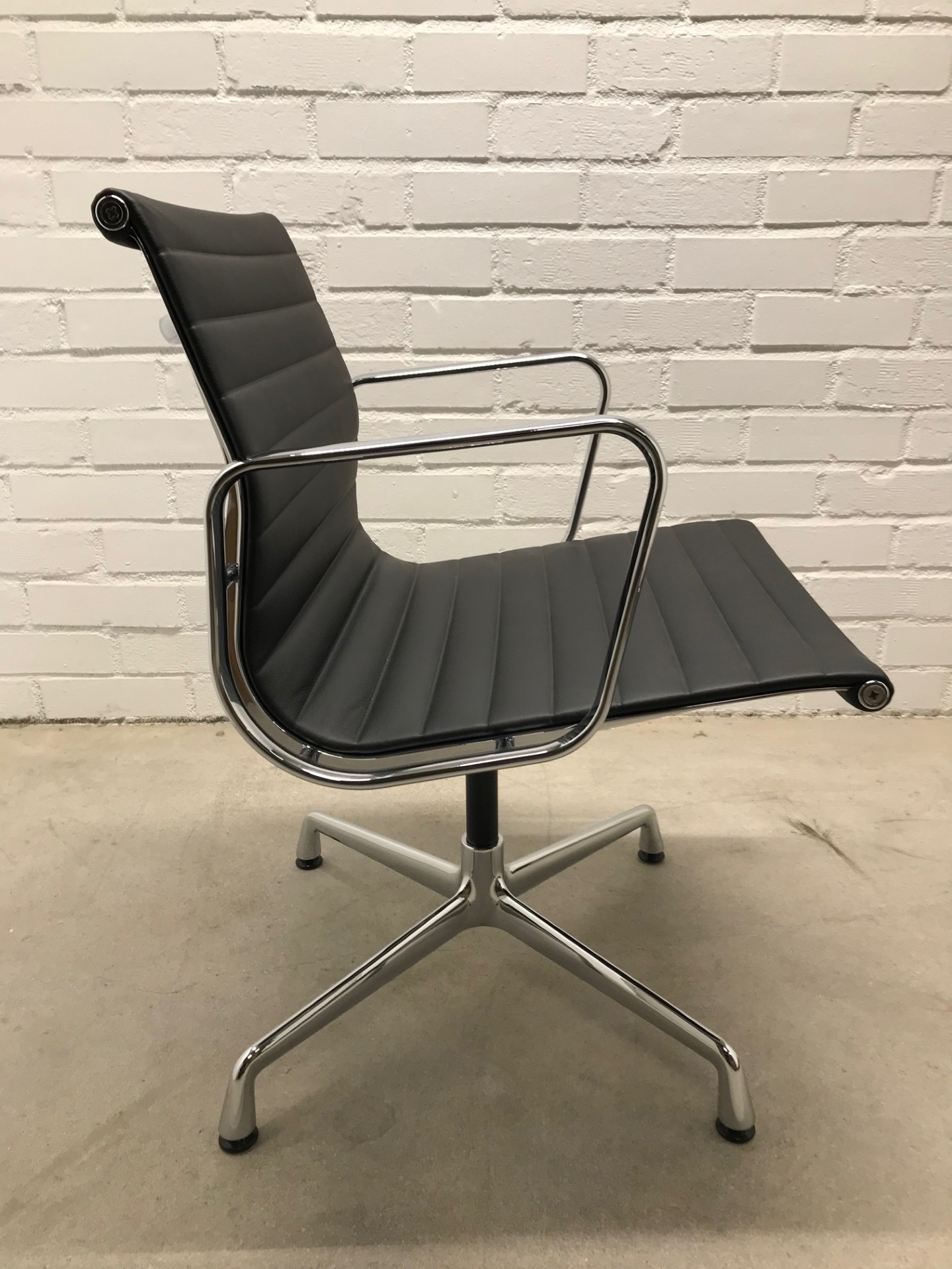 Seat and backrest in leather (black). Star base in metal (chrome).