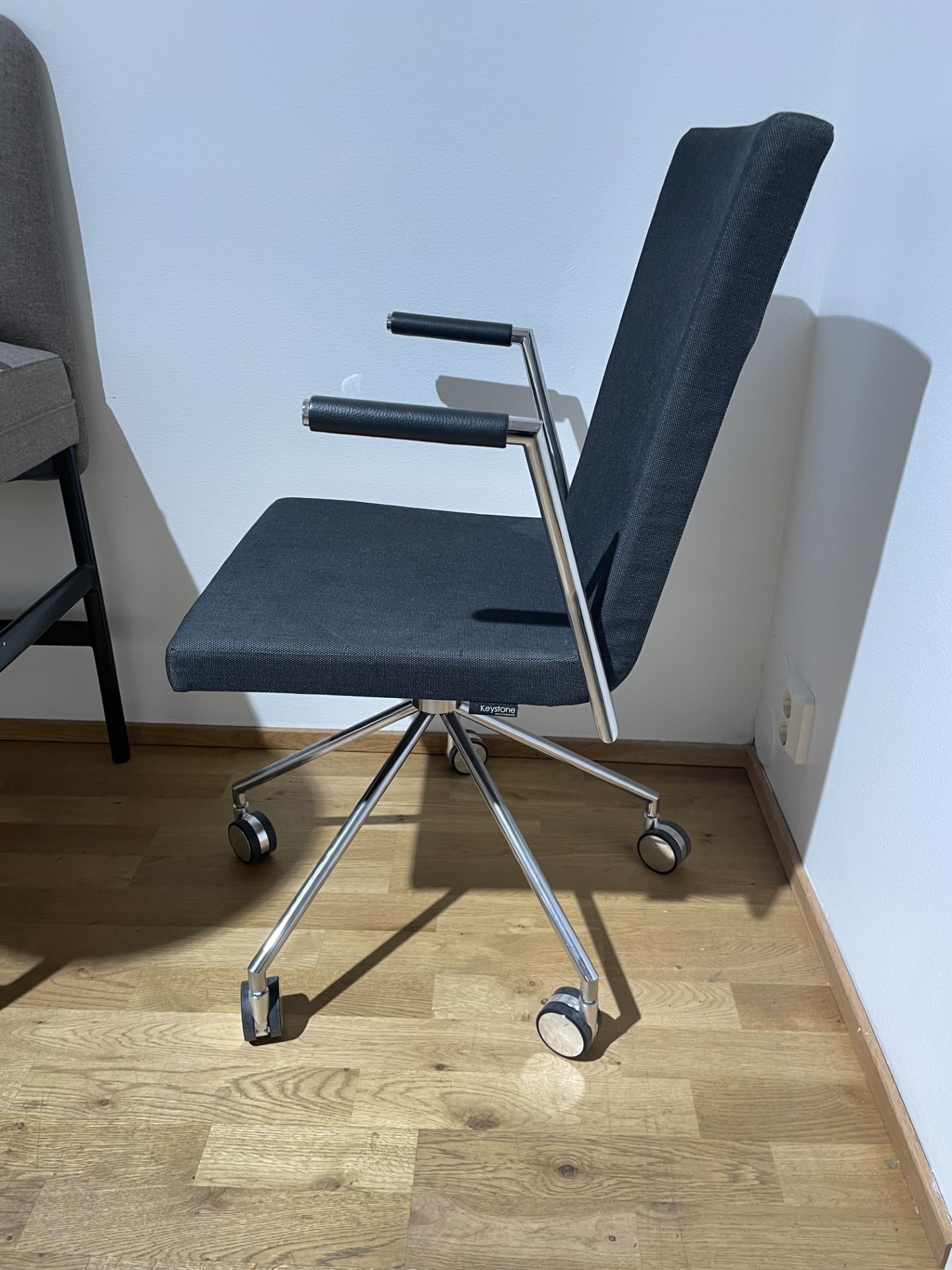 Seat and backrest in fabric (blue). Star base in metal (silver).