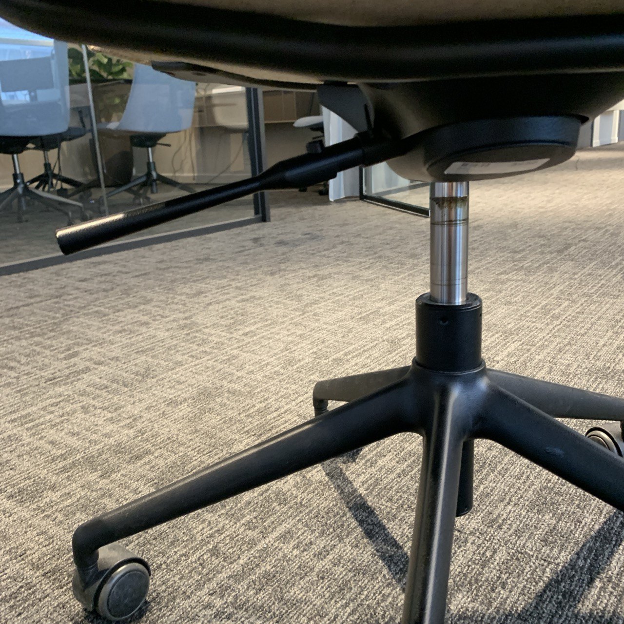 Seat and backrest in fabric (beige). Star base in metal (black). Adjustable height.