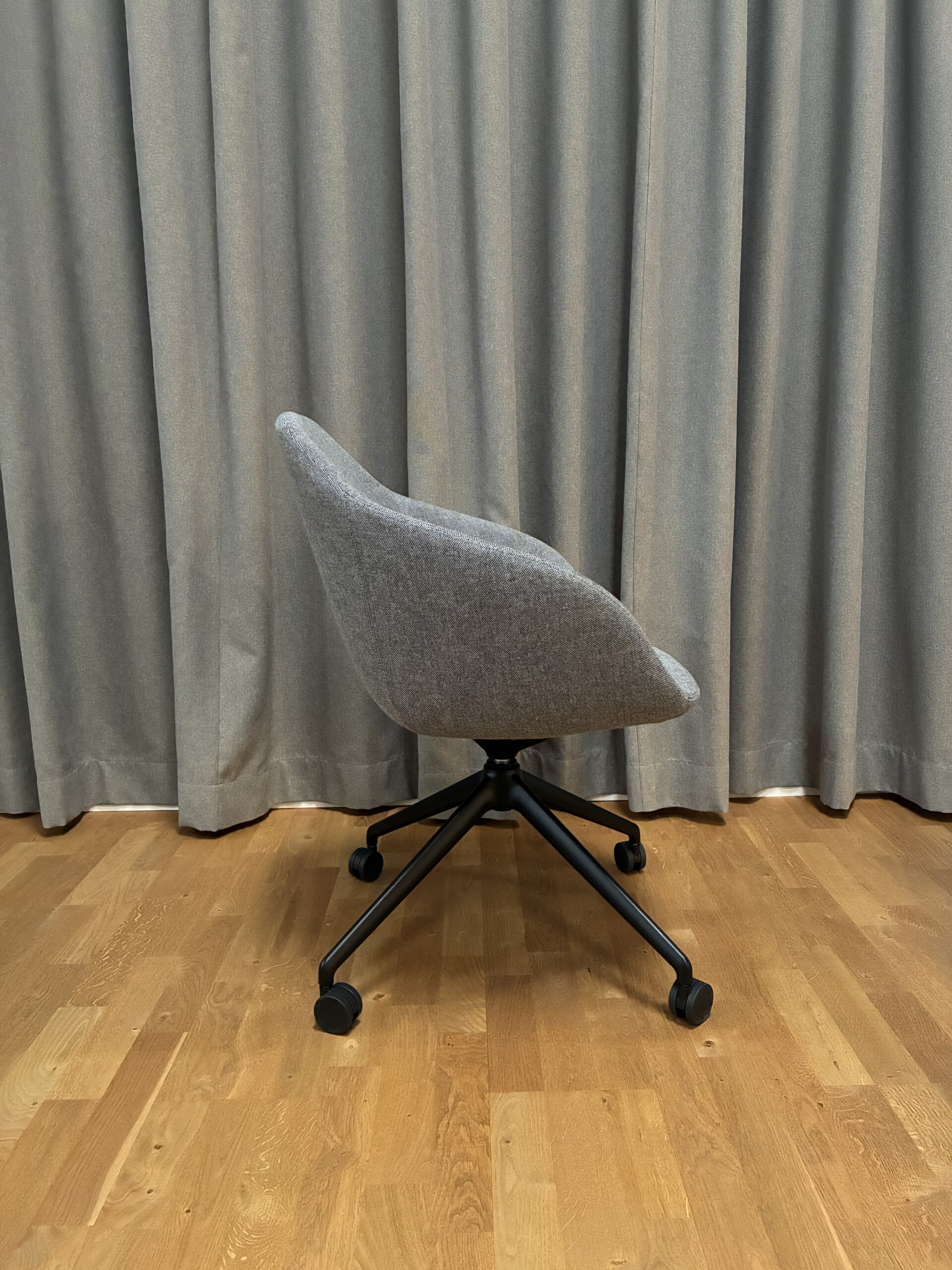 Seat and backrest in fabric (grey). Star base in metal (black).