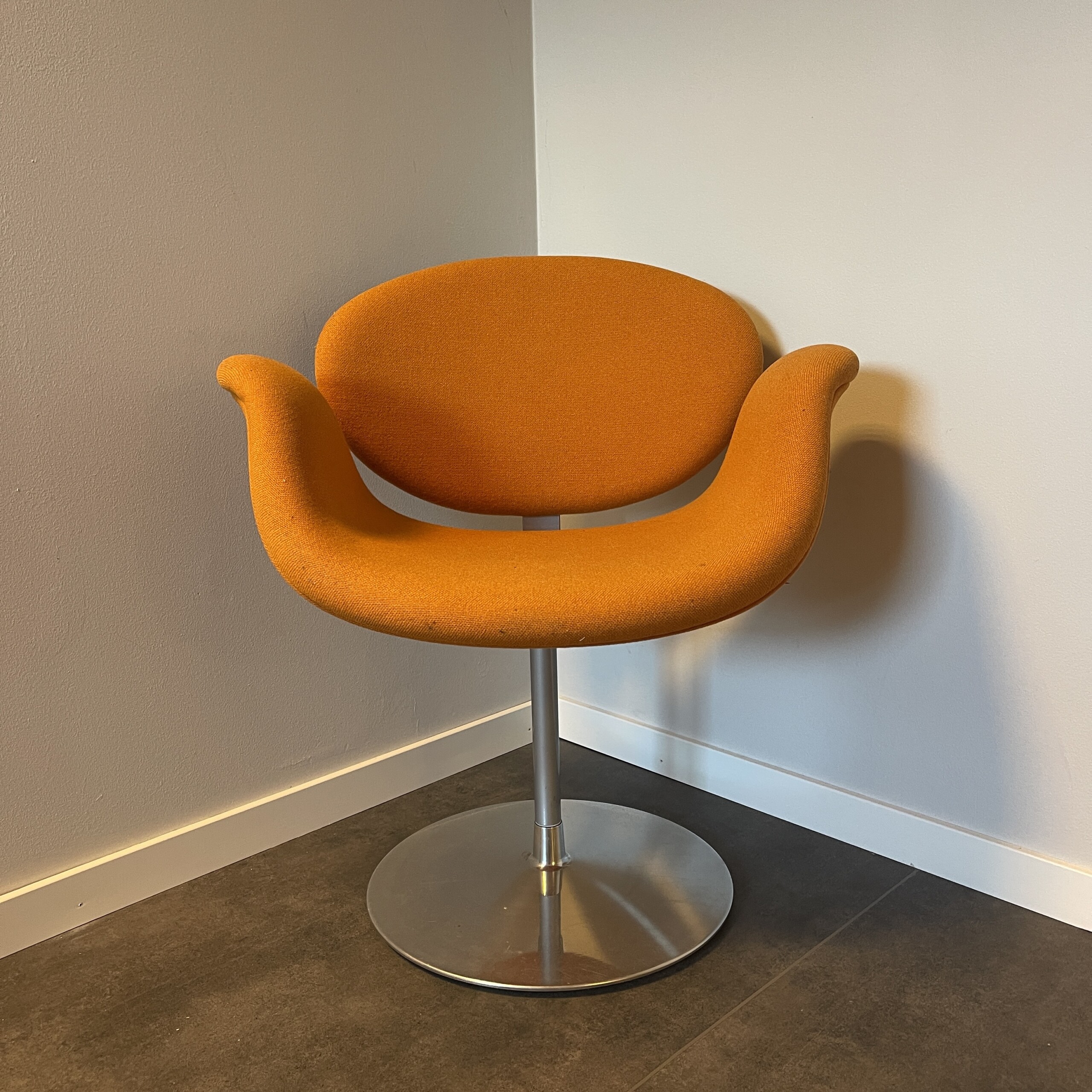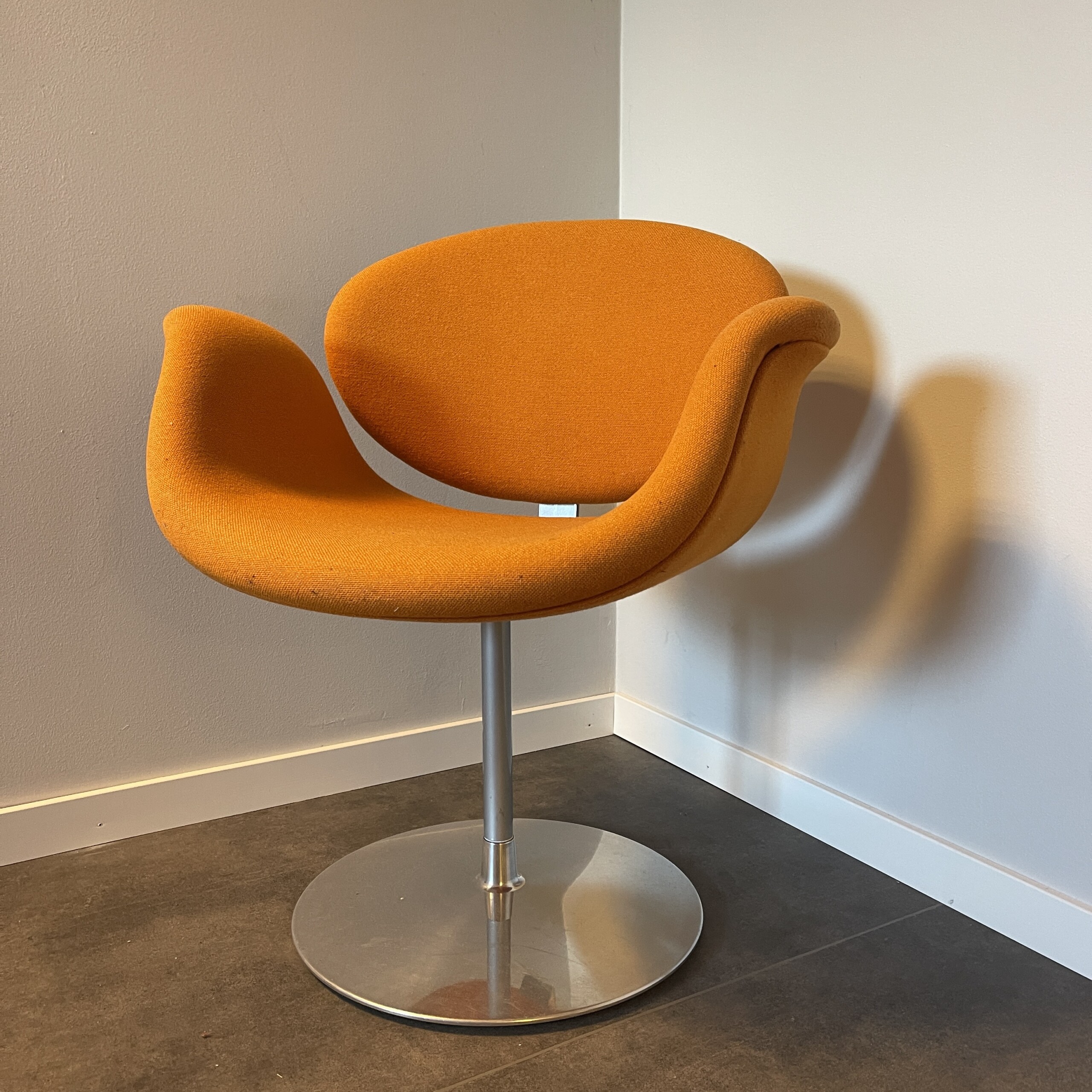 Seat and backrest in fabric (orange). Disc base in metal (chrome).