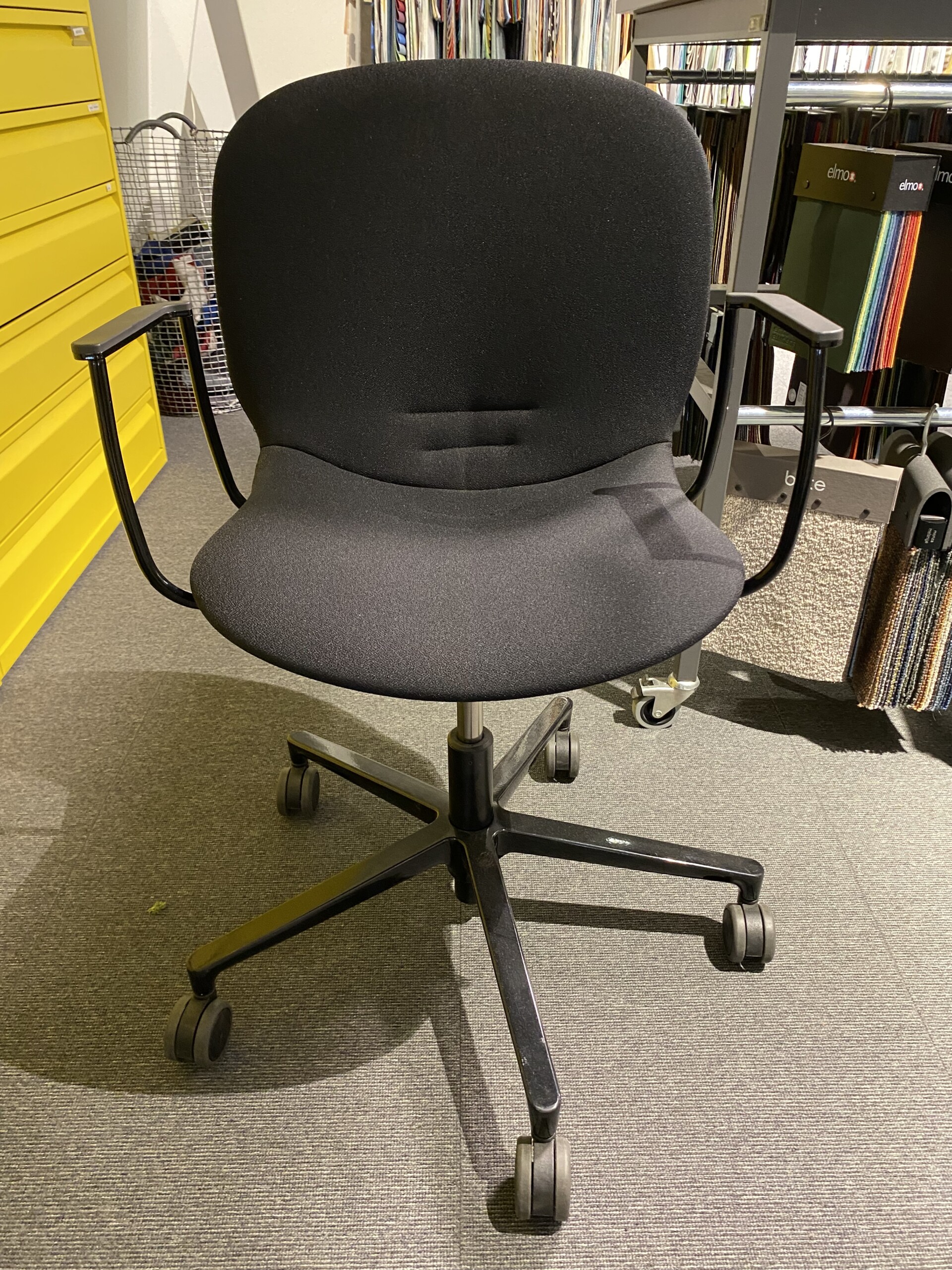 Seat and backrest in fabric (black). Star base in metal (black). Adjustable height.