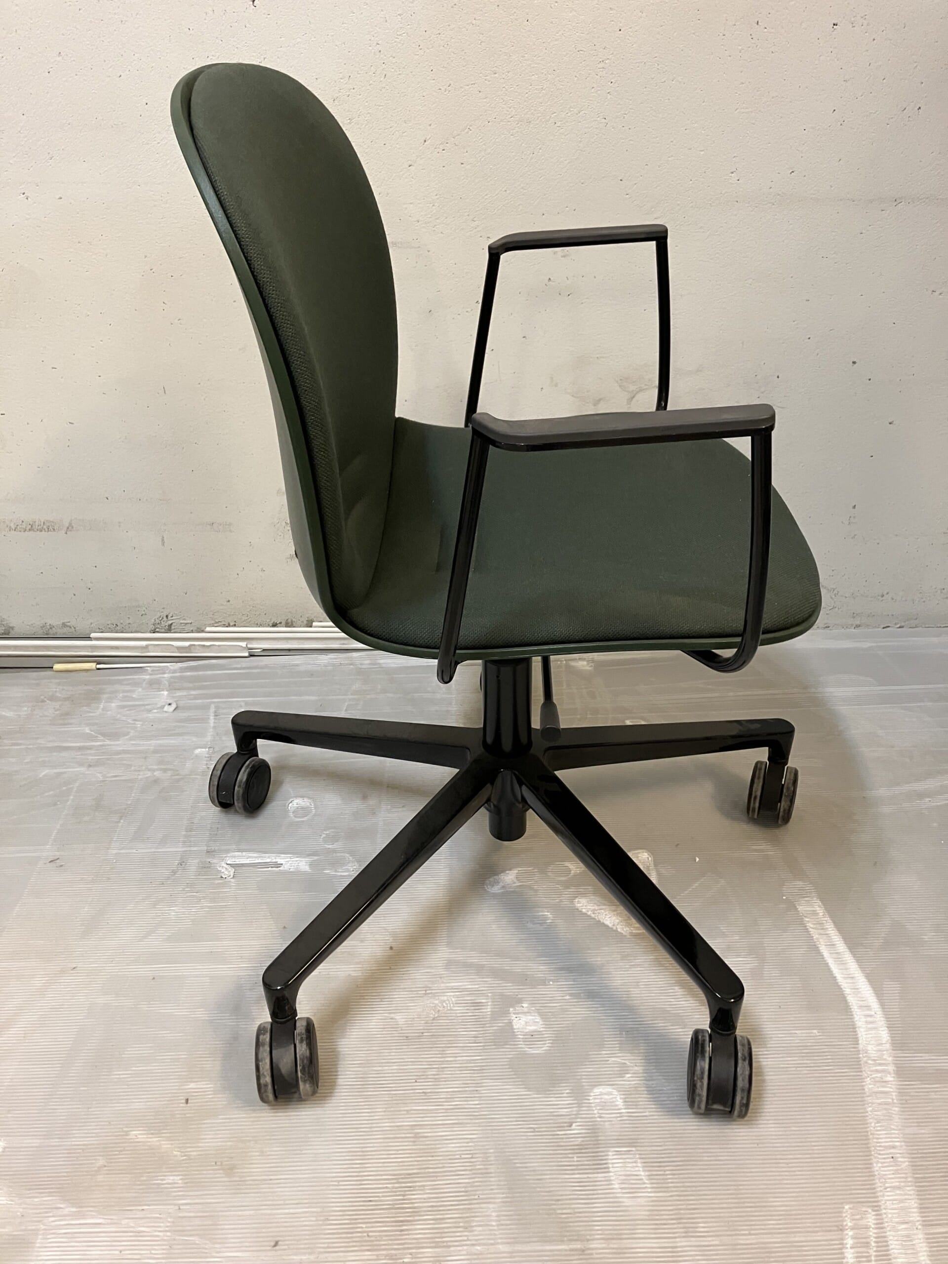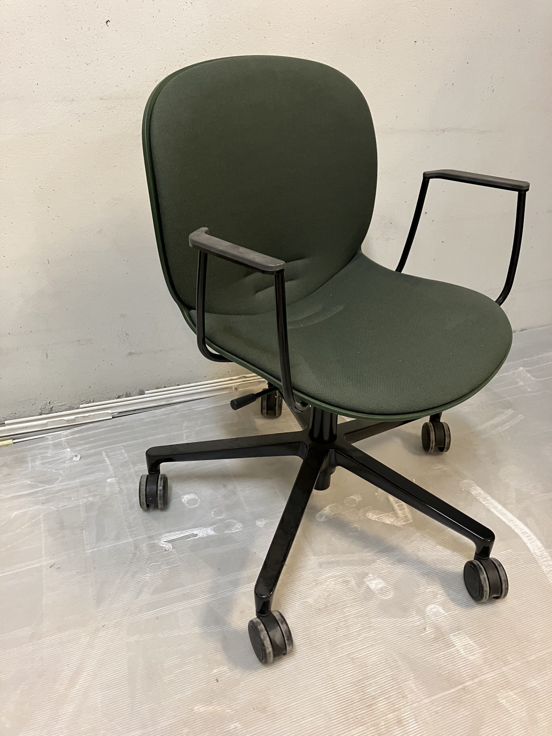 Seat and backrest in fabric (green). Star base in metal (black). Adjustable height.