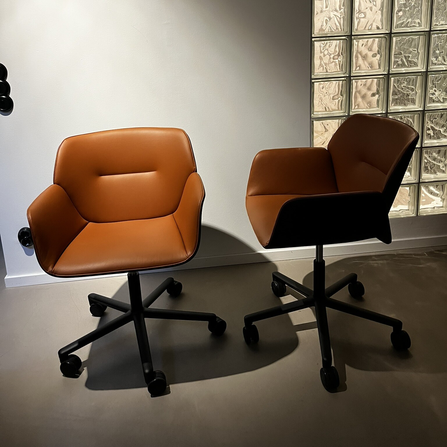 Seat and backrest in leather. Star base in metal.