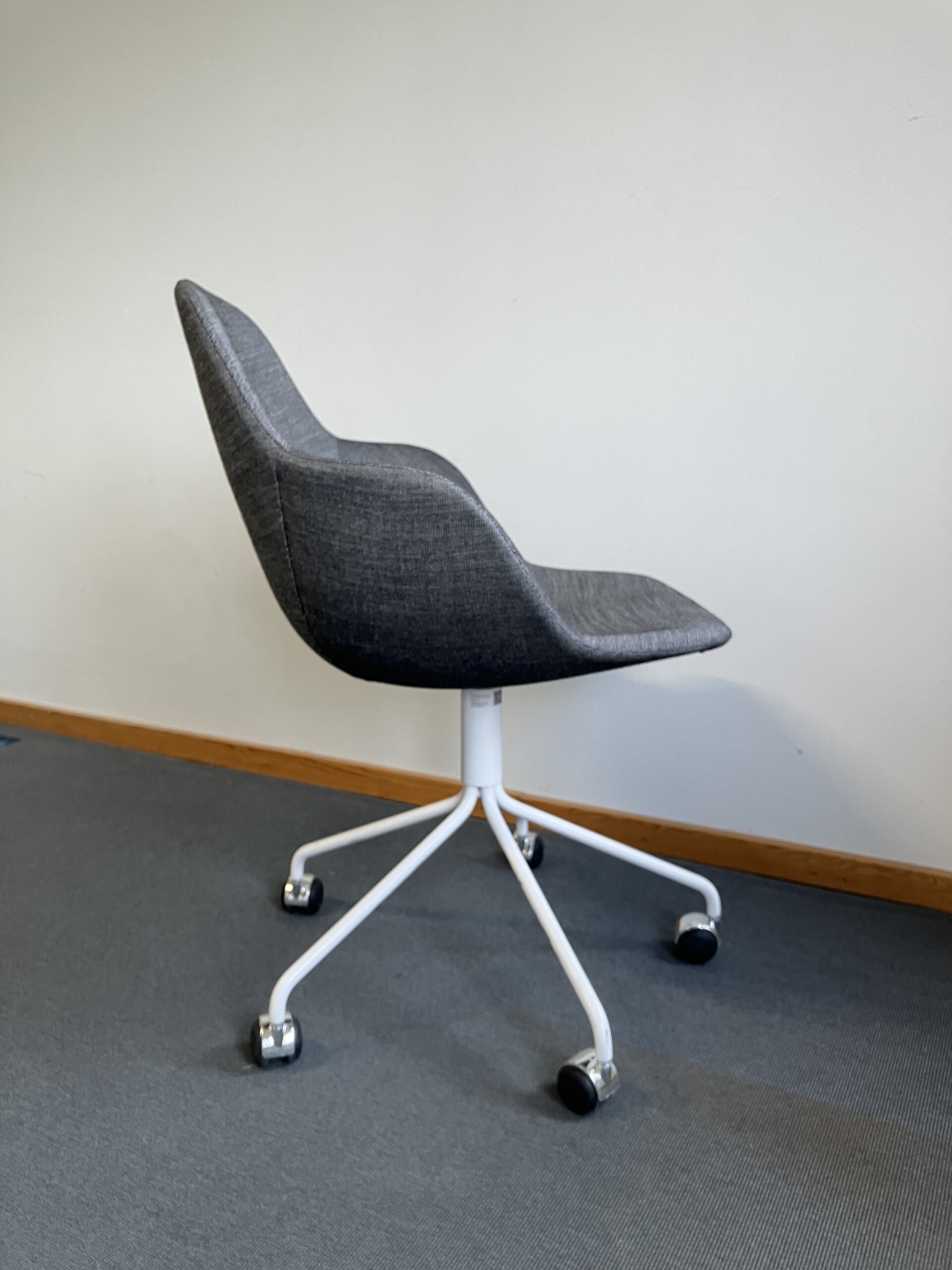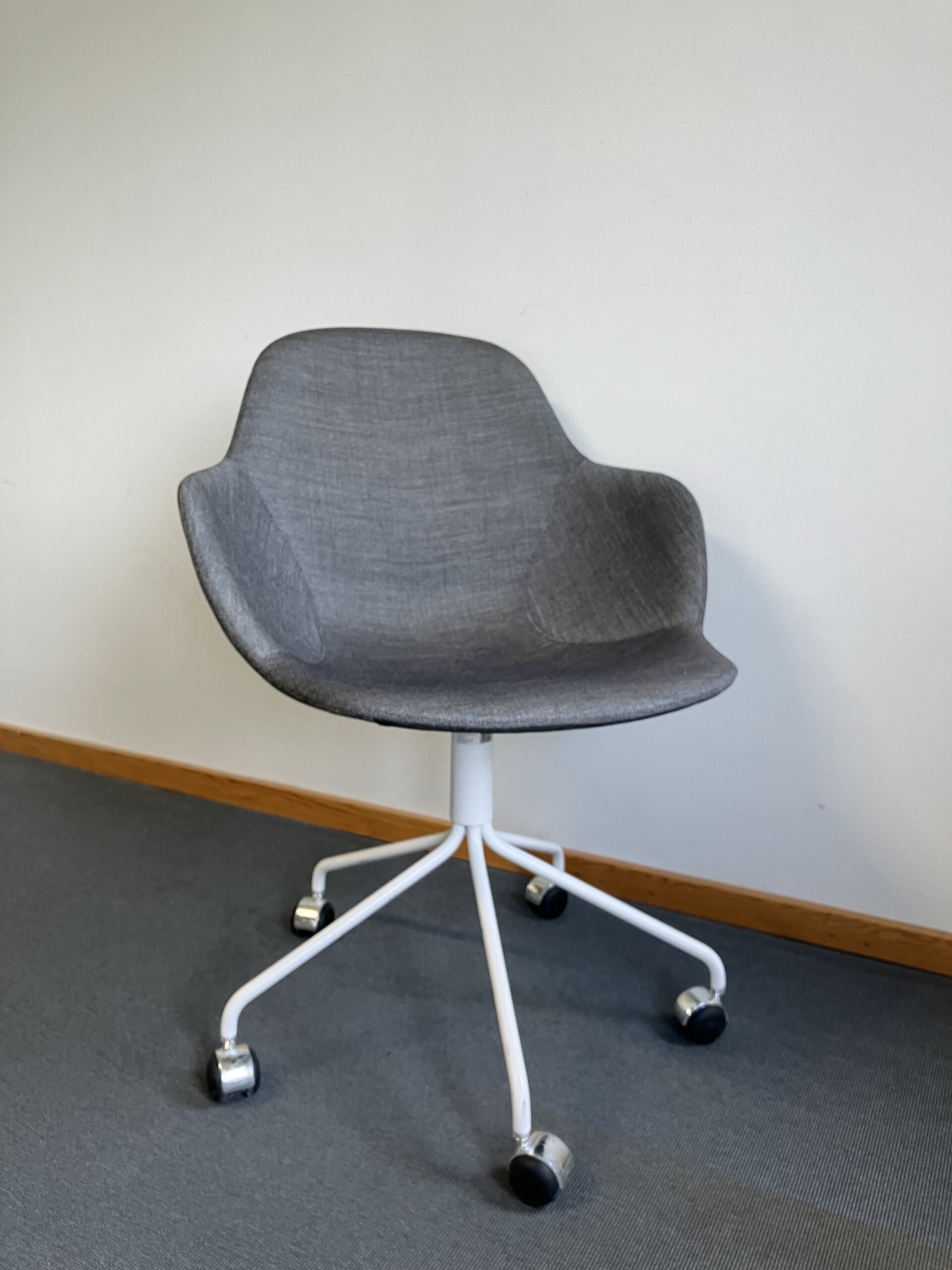 Seat and backrest in fabric (grey). Star base in metal (white).
