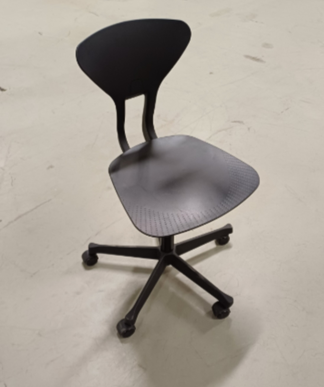 Seat and backrest in plastic (black). Star base in metal (black). Adjustable height.