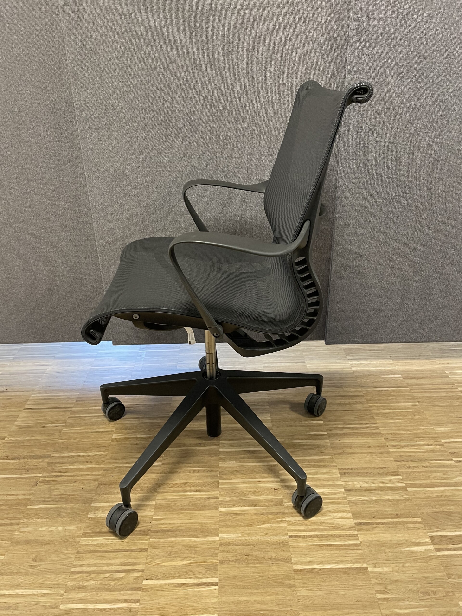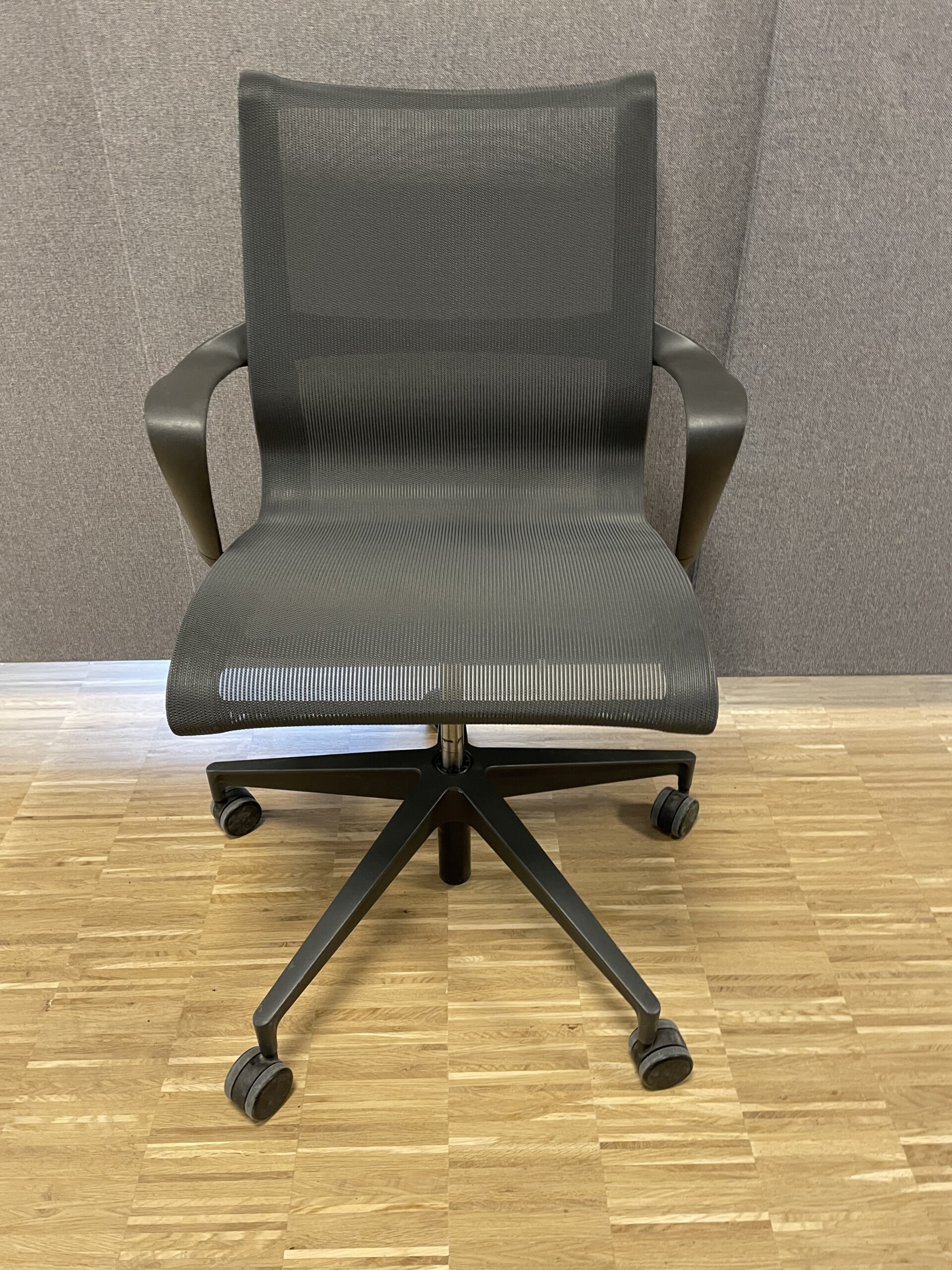 Seat and backrest in mesh (grey). Star base in metal (grey).