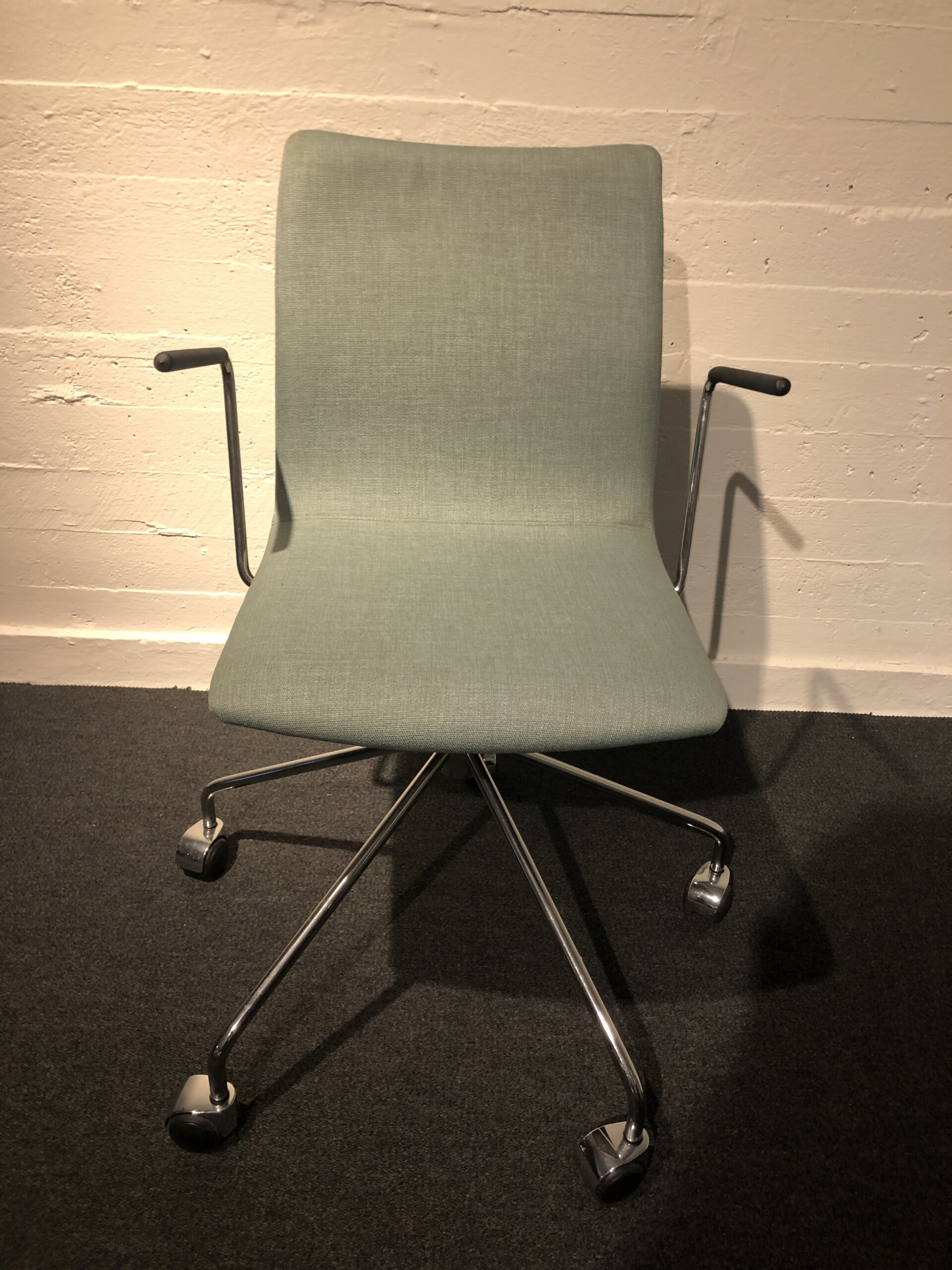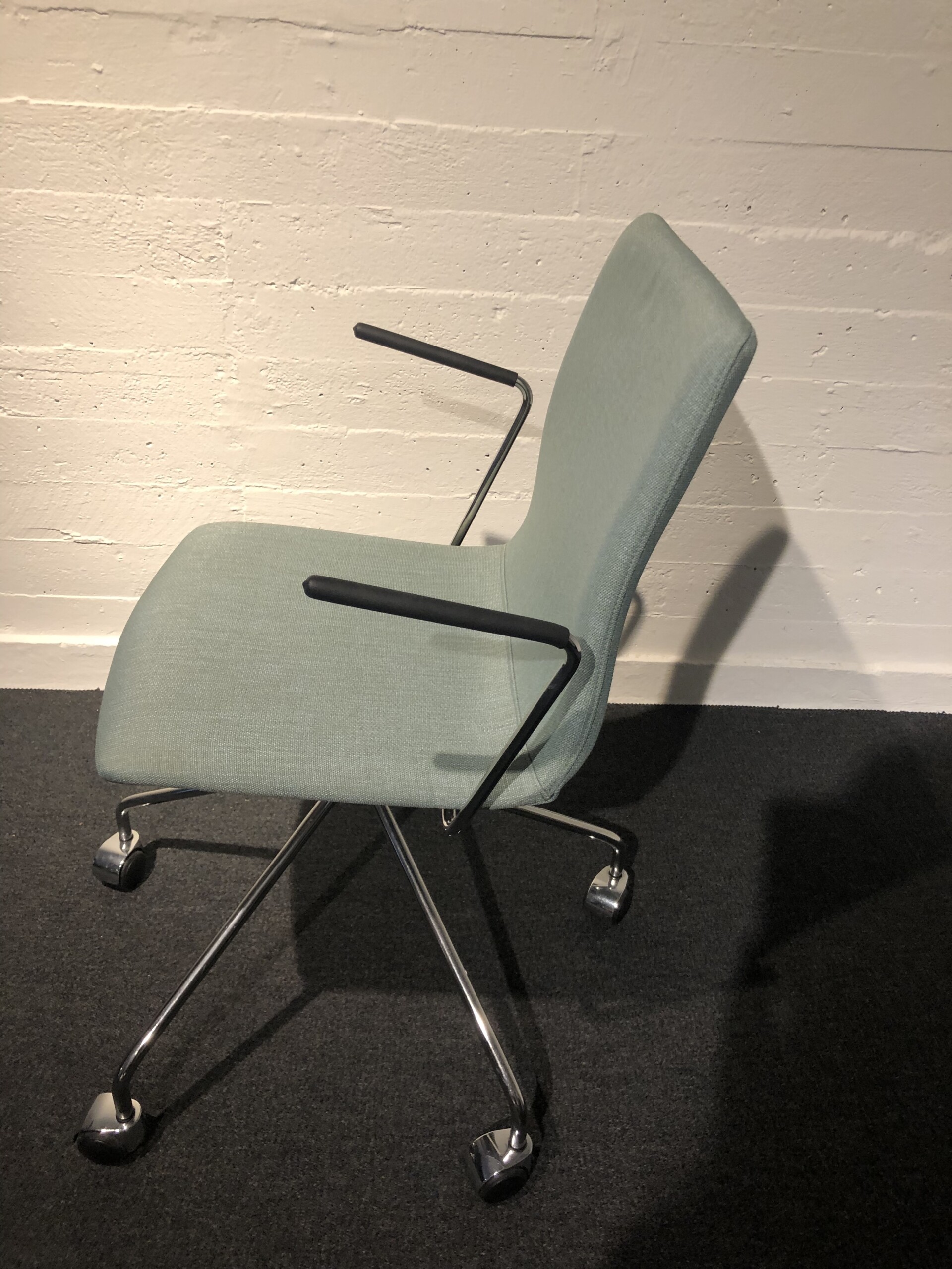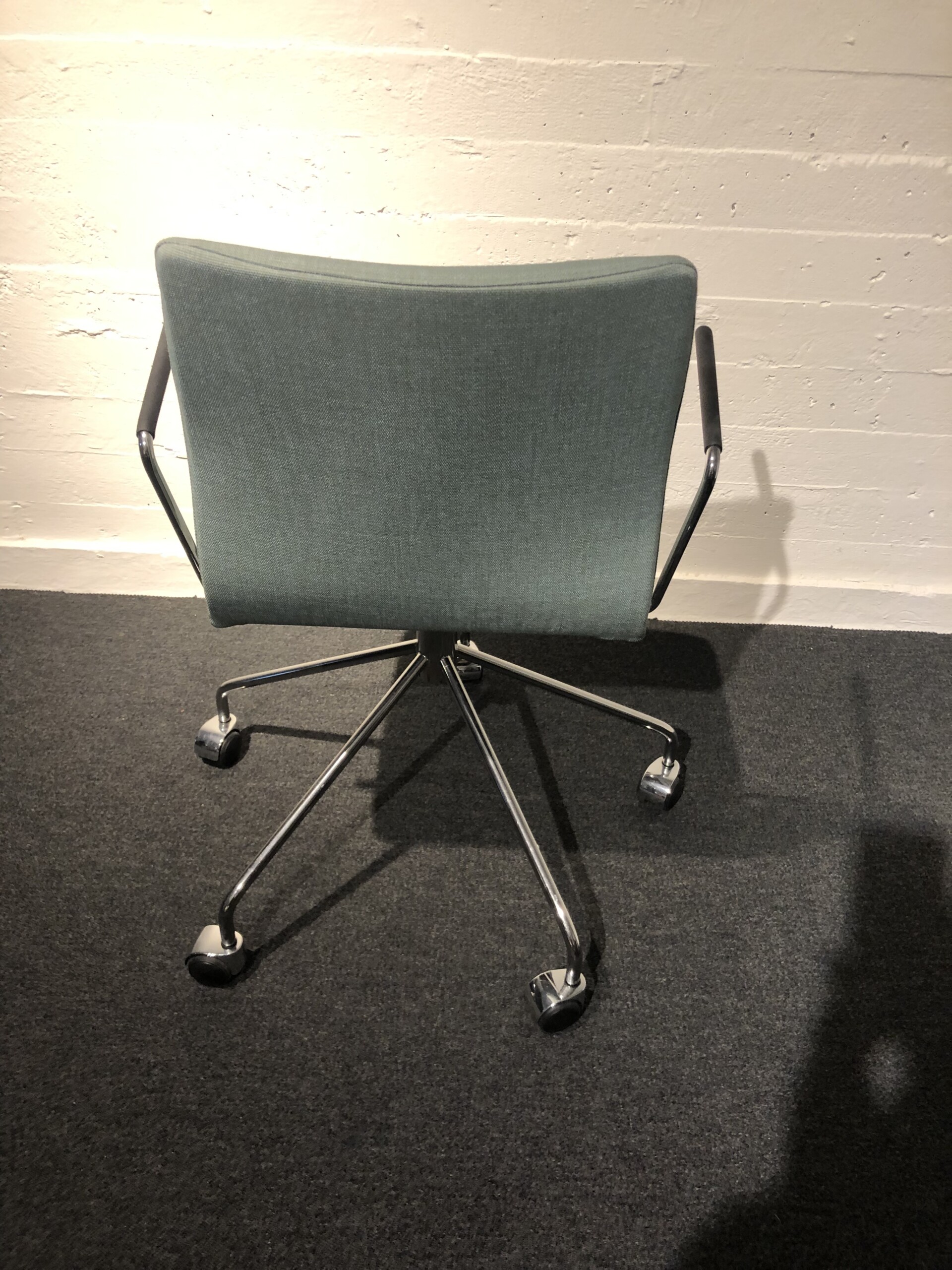 Seat and backrest in fabric (blue). Star base in metal (chrome).