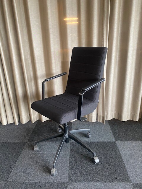 Seat and backrest in fabric (black). Star base in metal (black). Adjustable height.