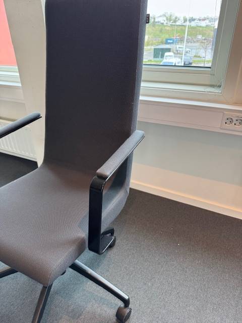 Seat and backrest in fabric (grey). Star base in metal (black). Adjustable height.