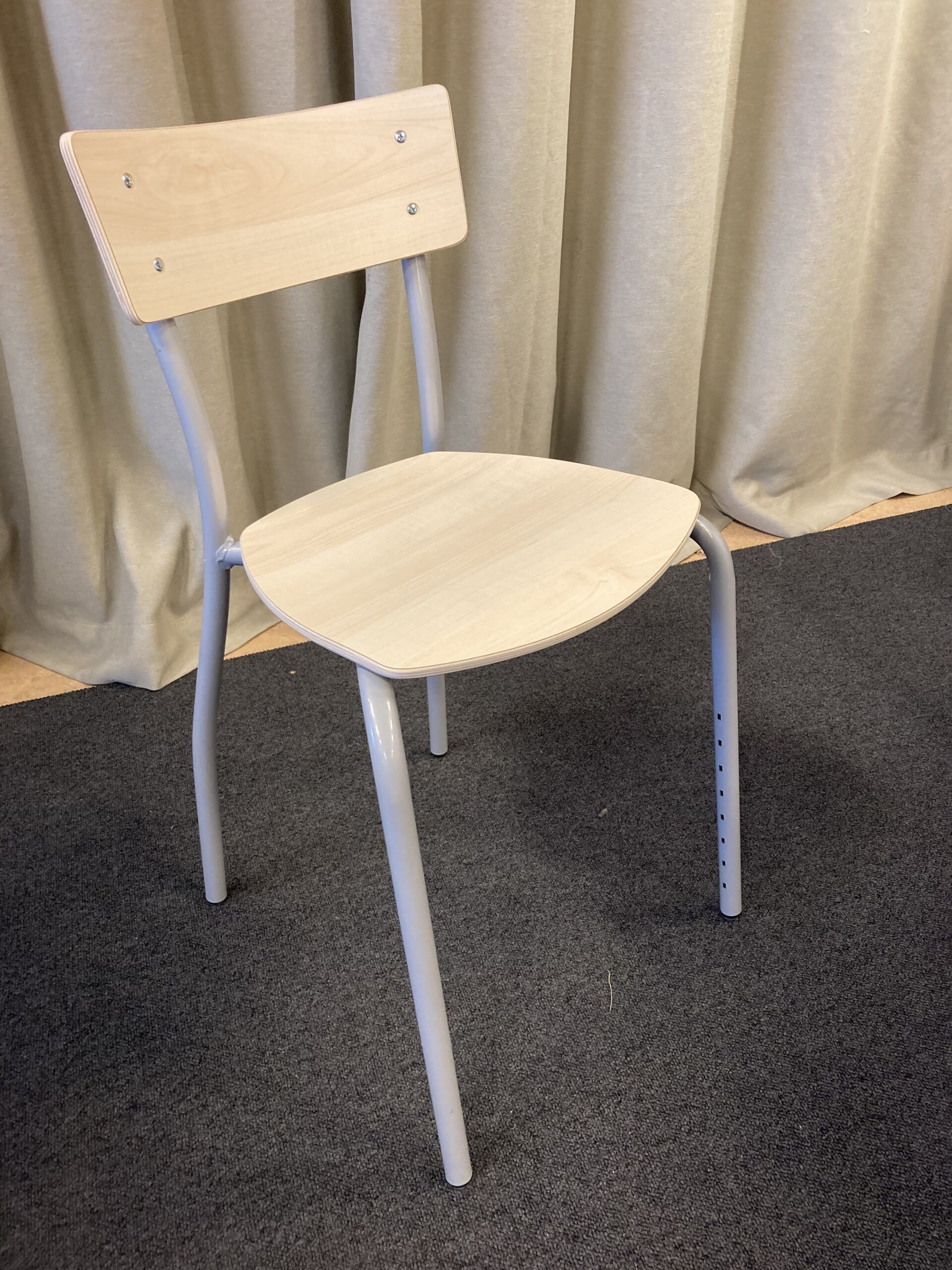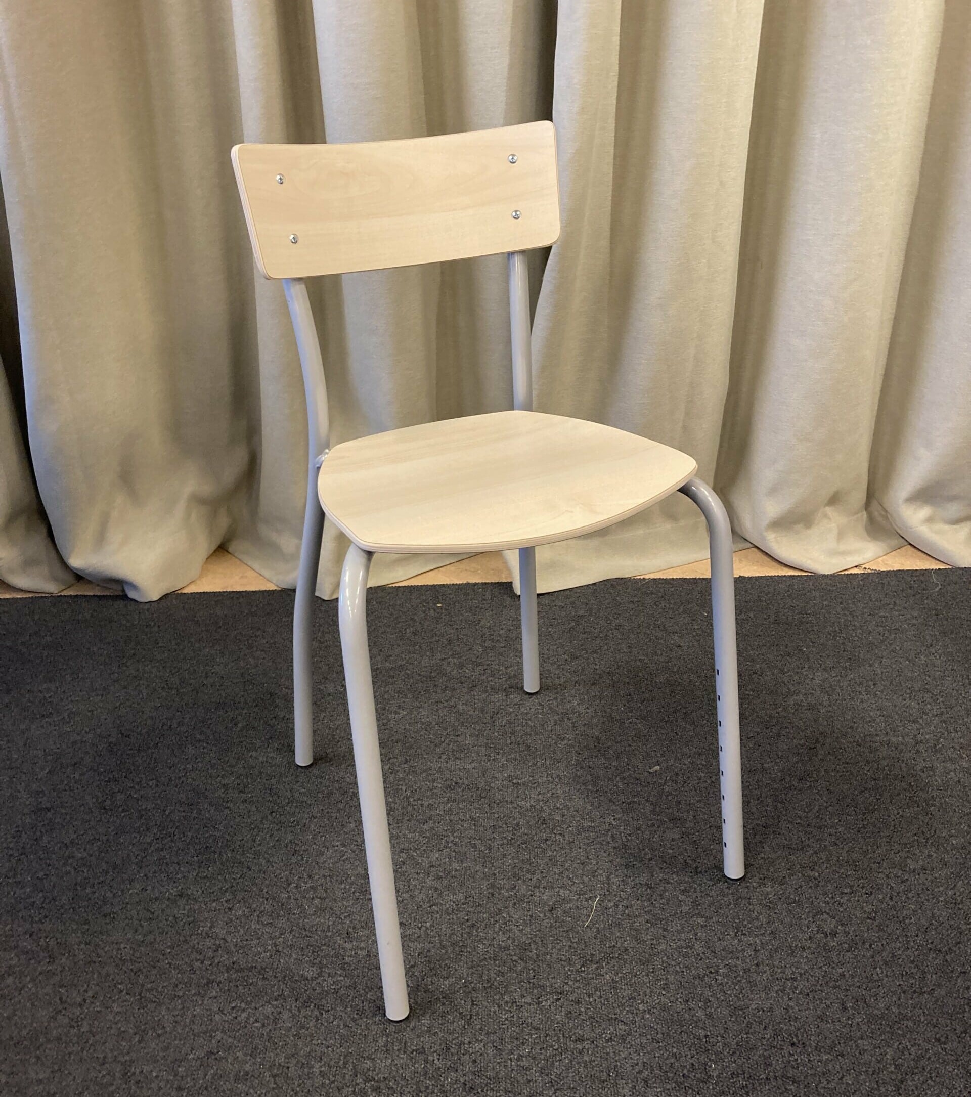 Seat and backrest in laminat (birch). Legs in metal (grey).