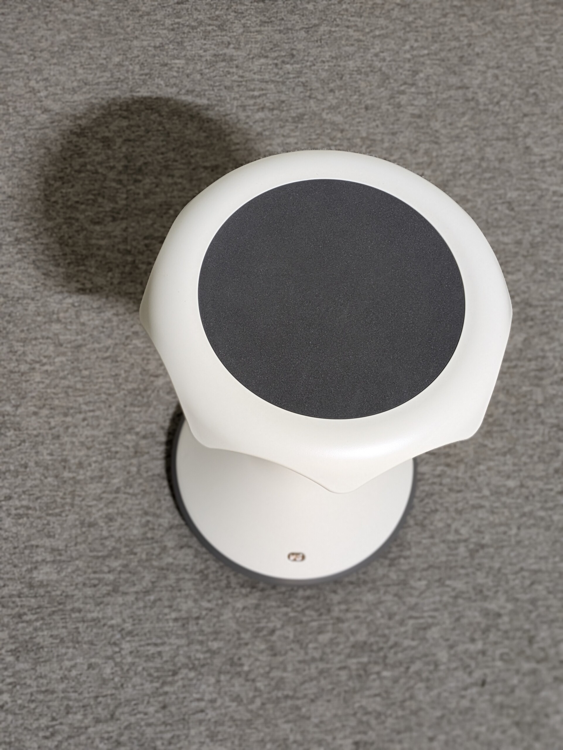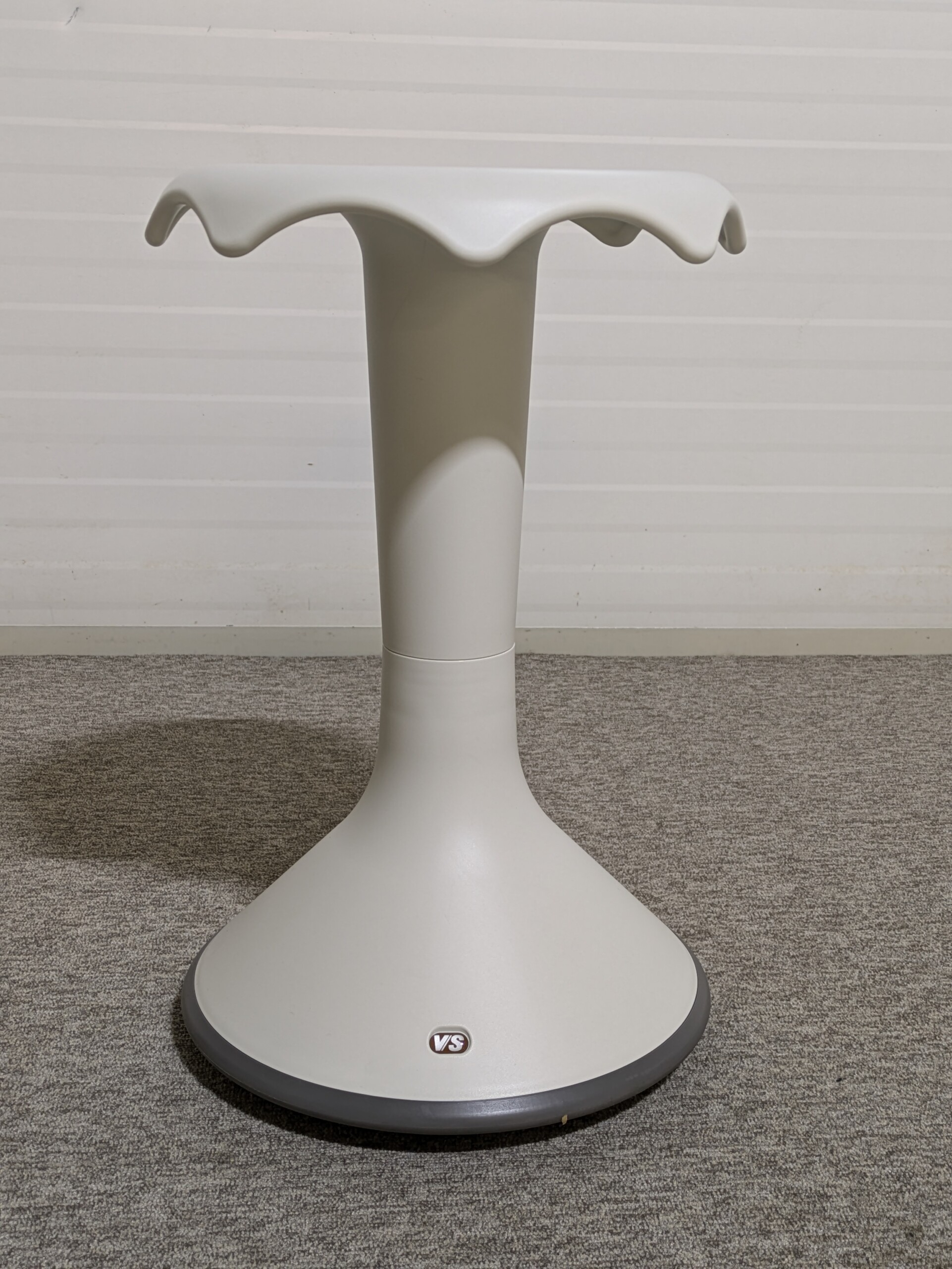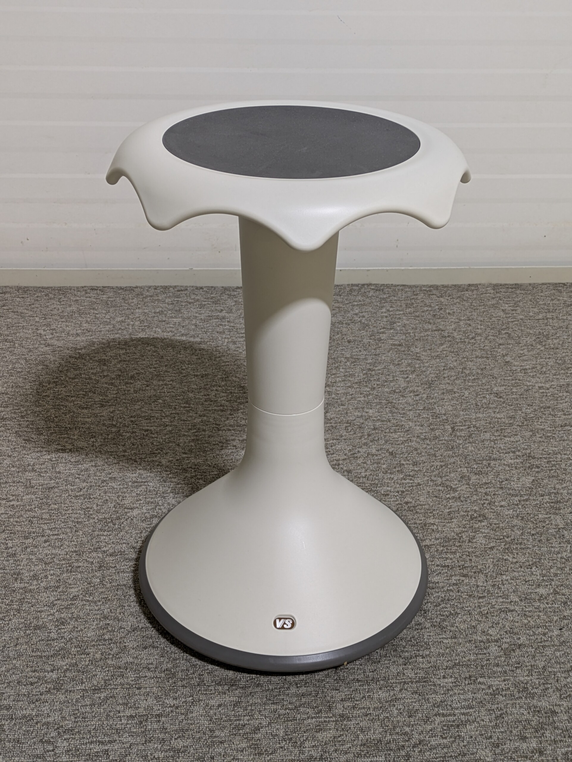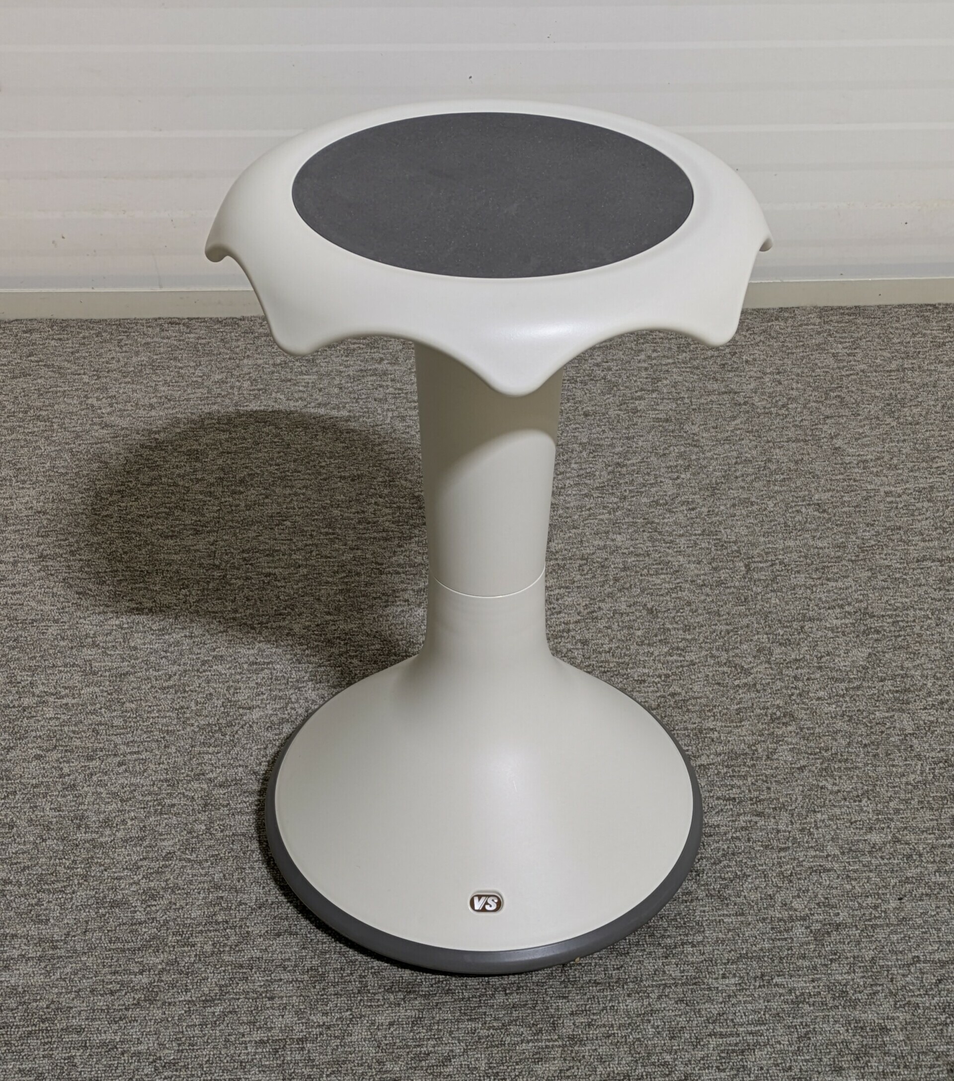 Seat in plastic (grey). Disc base in plastic (white).