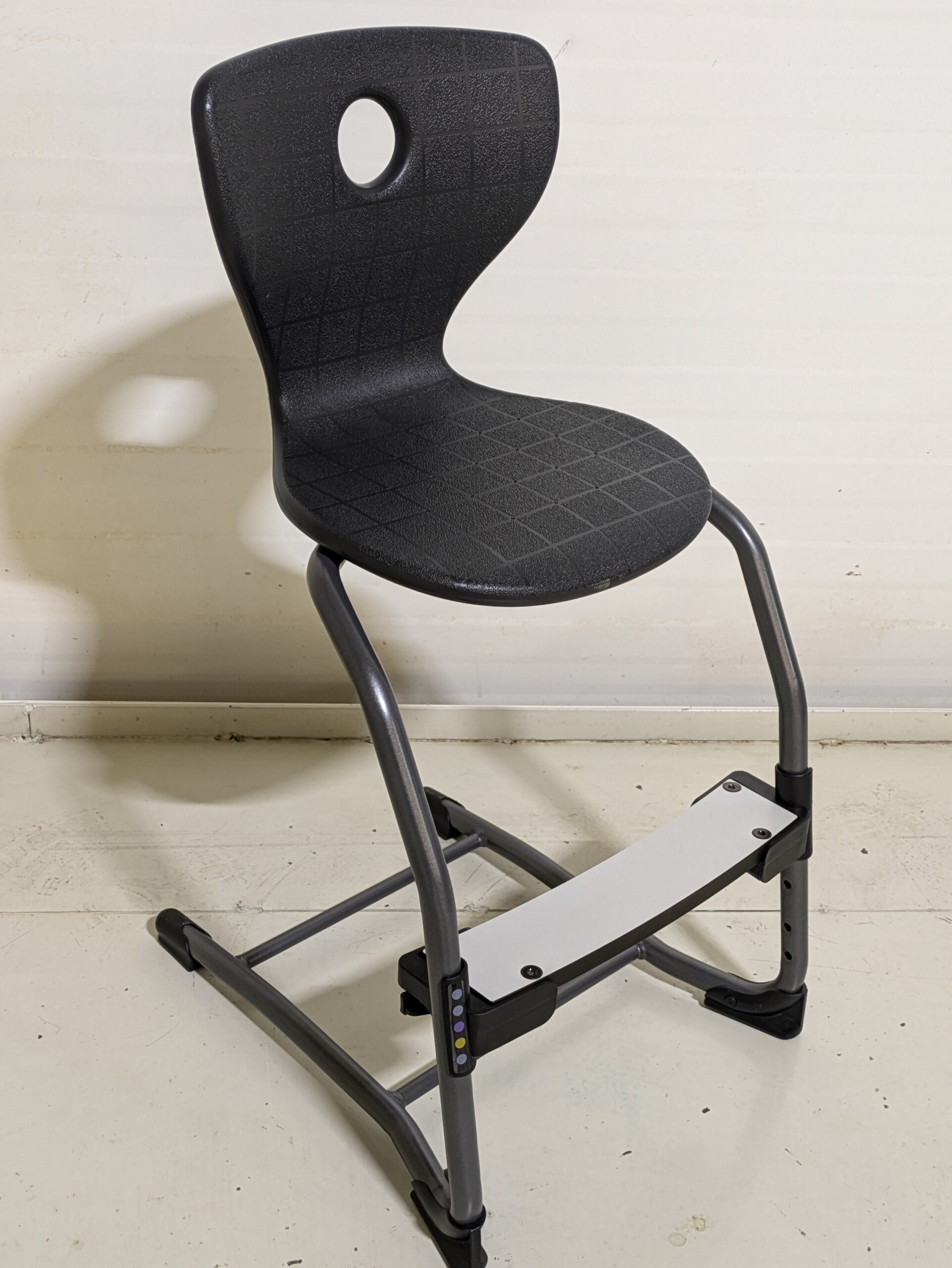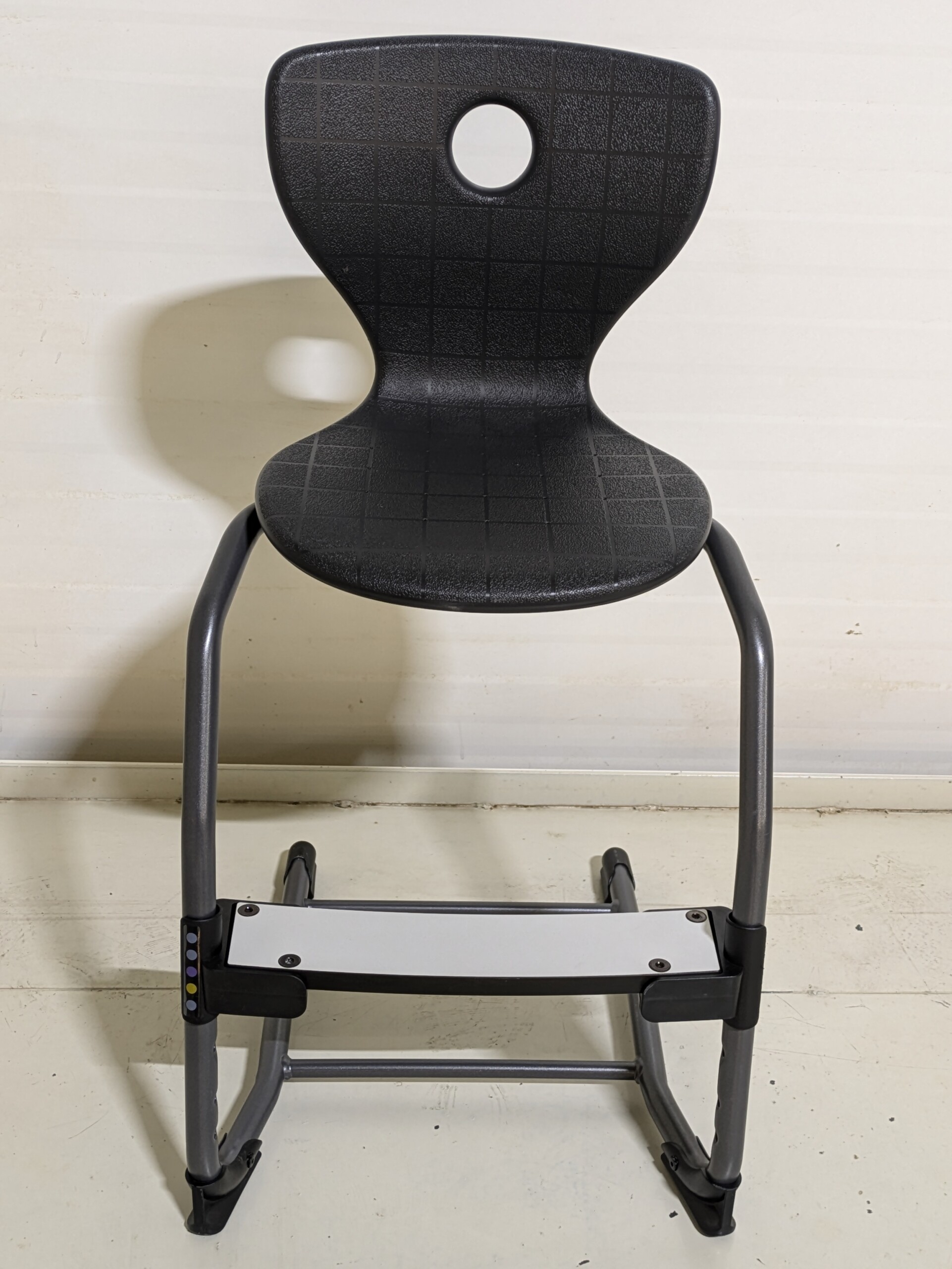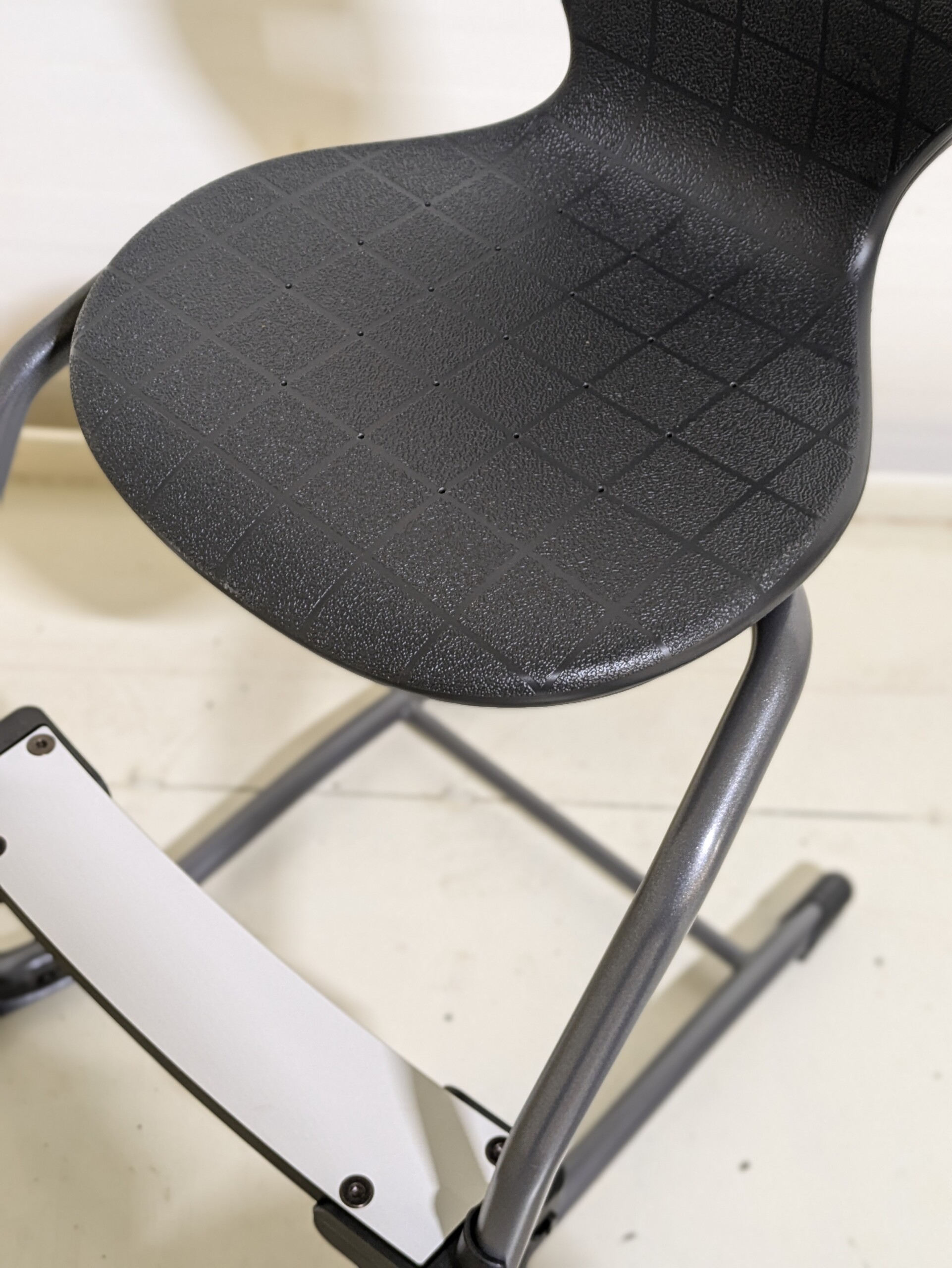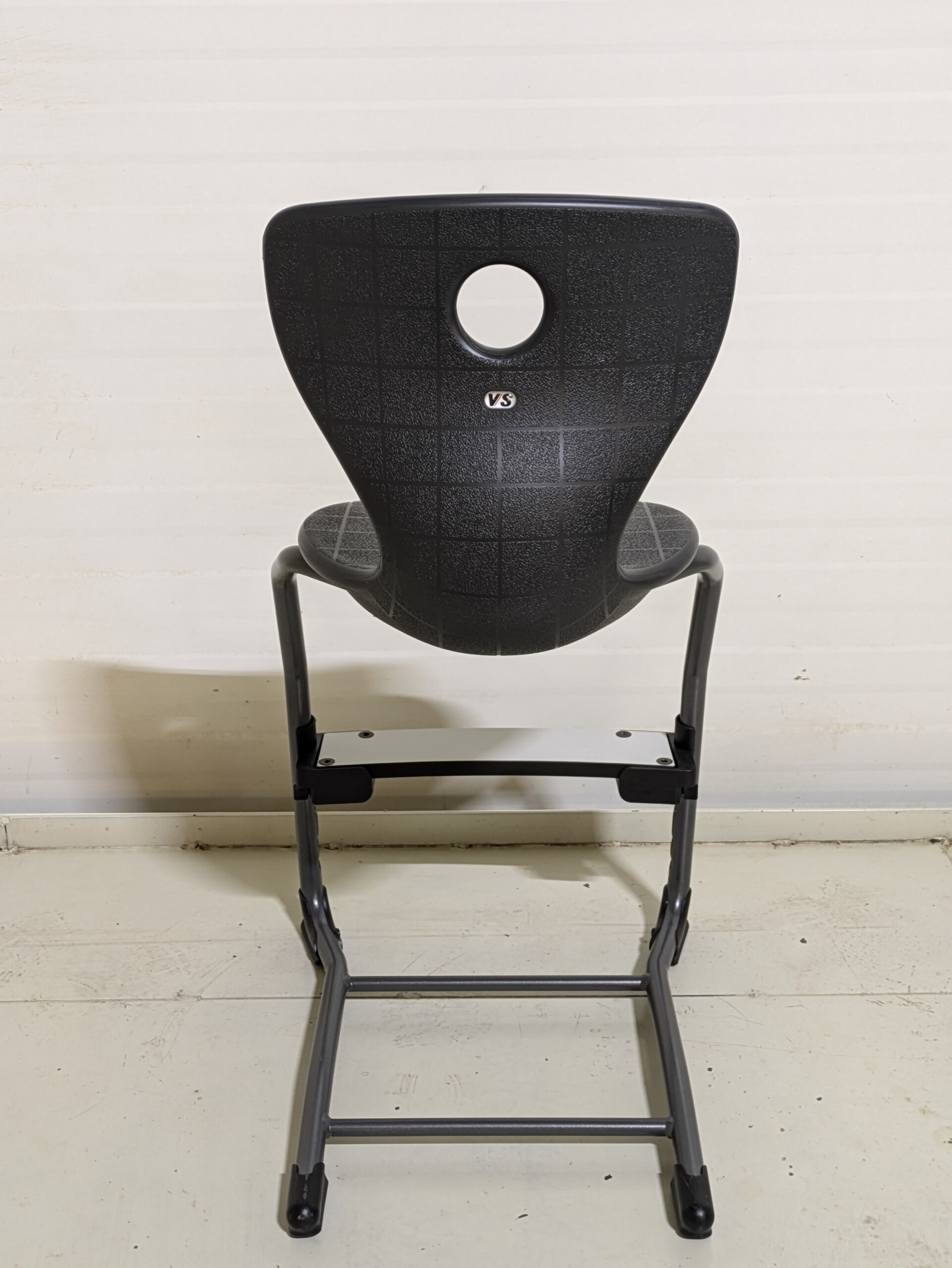 Seat and backrest in plastic (black). Legs in metal (grey).