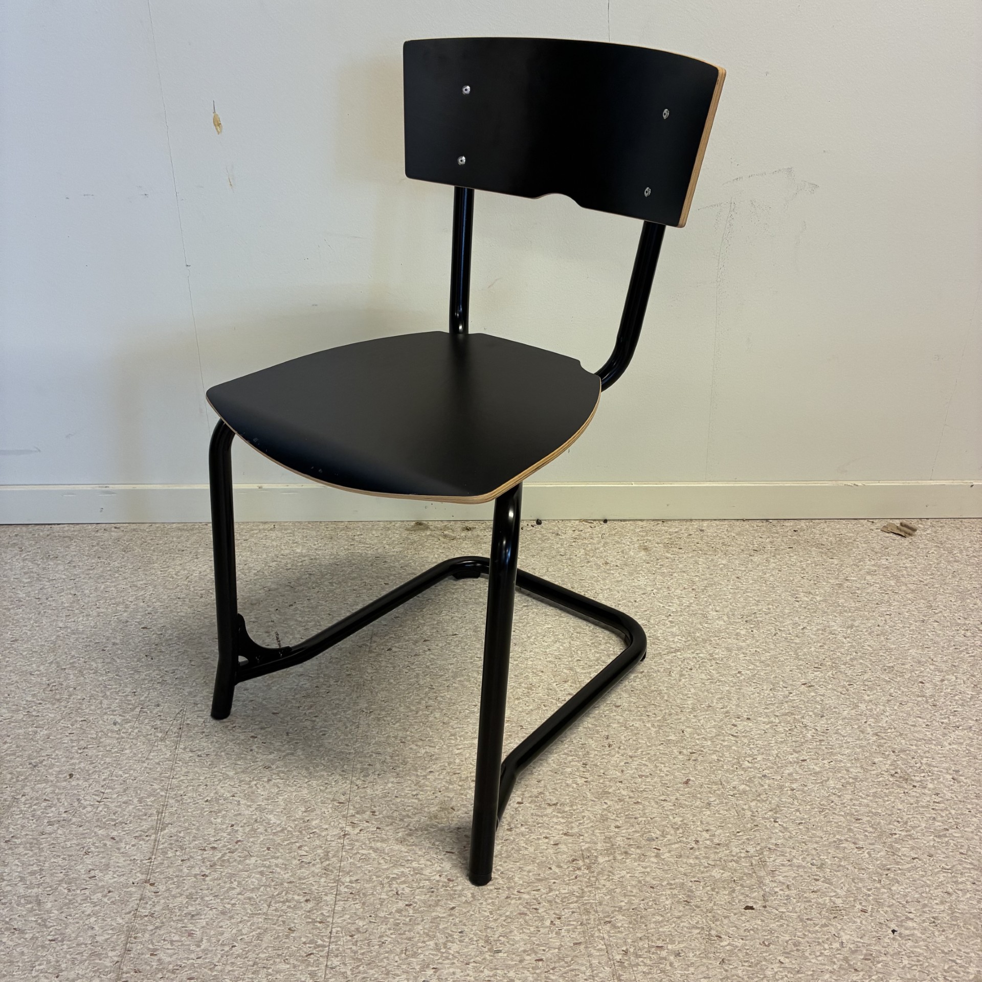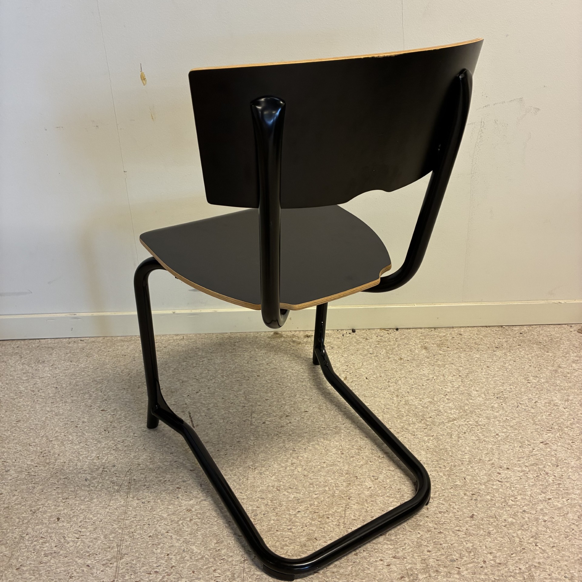 Seat and backrest in laminat (black). Sledgebase in metal (black).