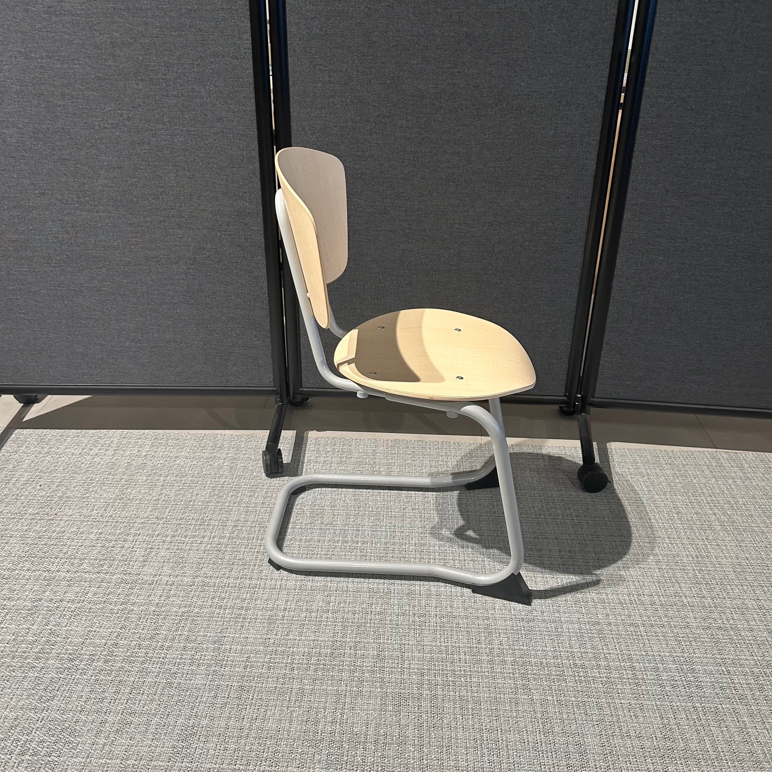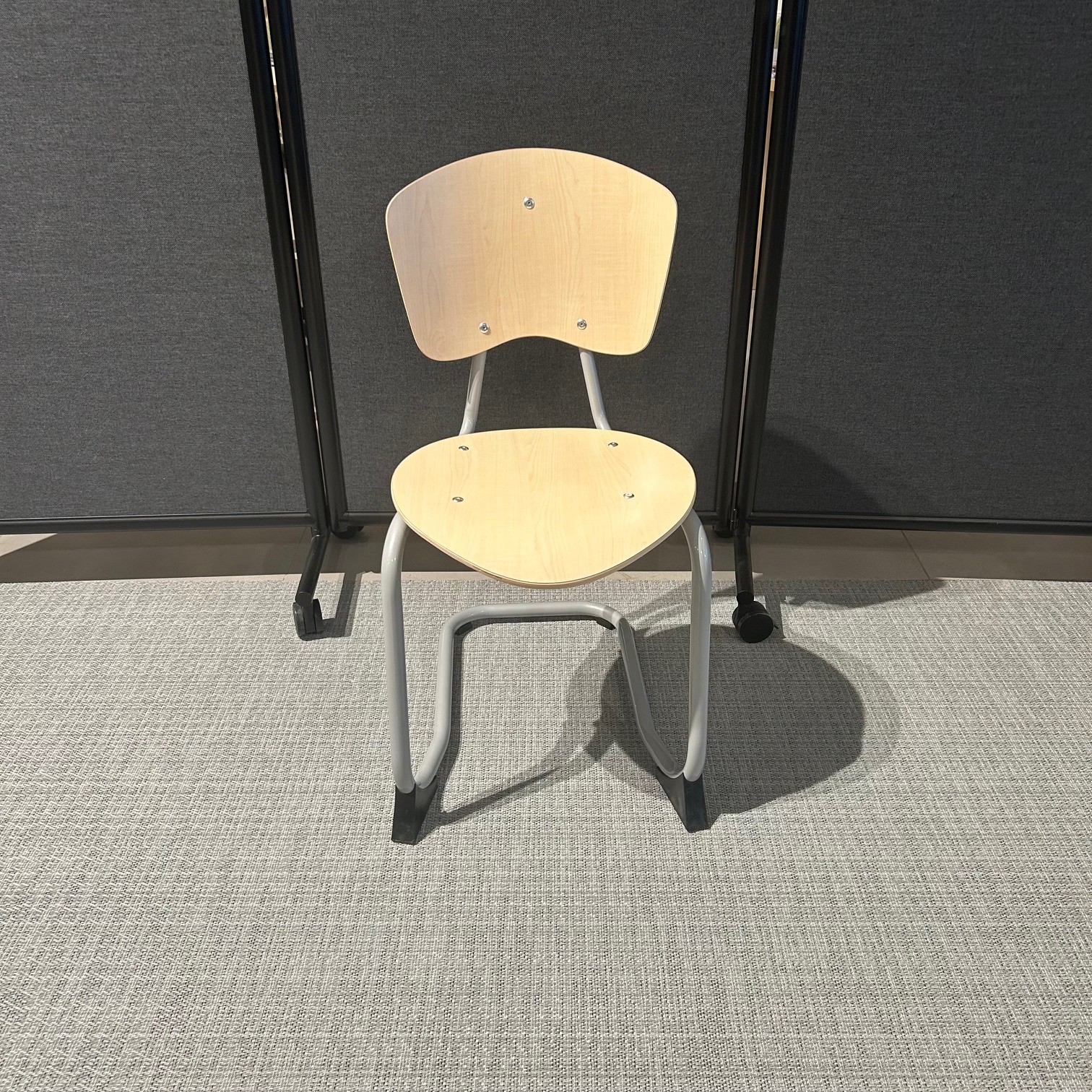 Seat and backrest in laminat (birch). Sledgebase in metal (silver).