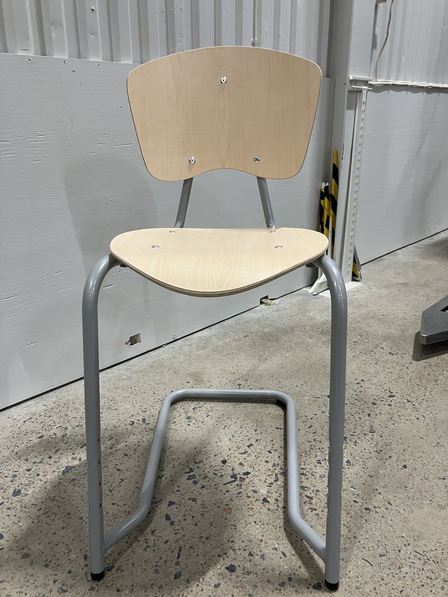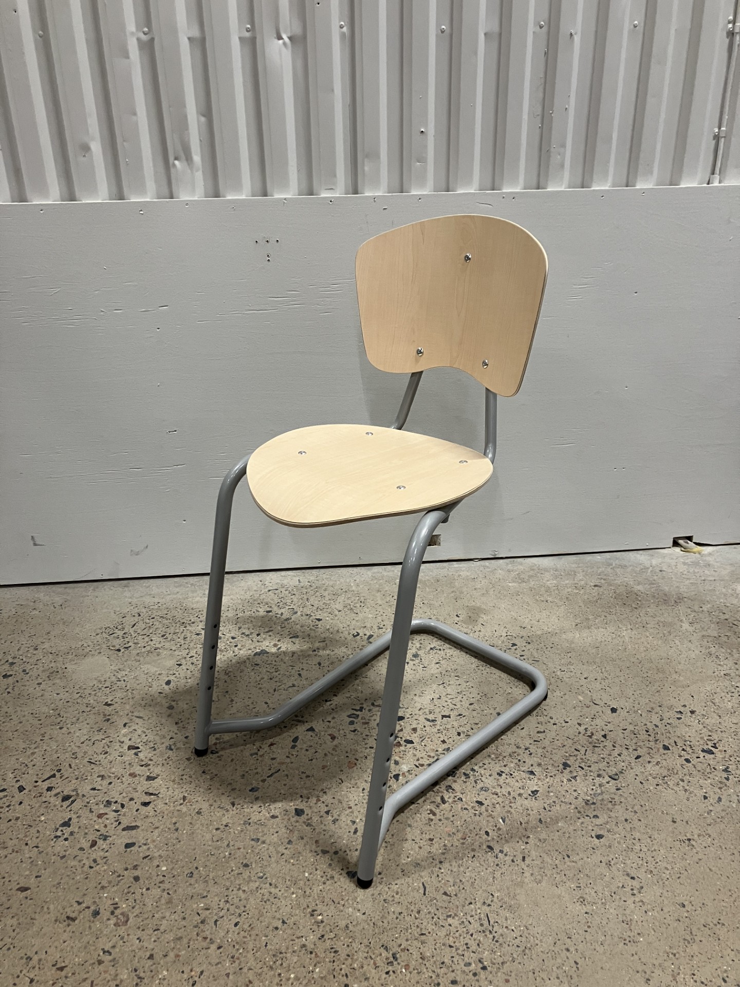 Seat and backrest in laminat (birch). Sledgebase in metal (silver).