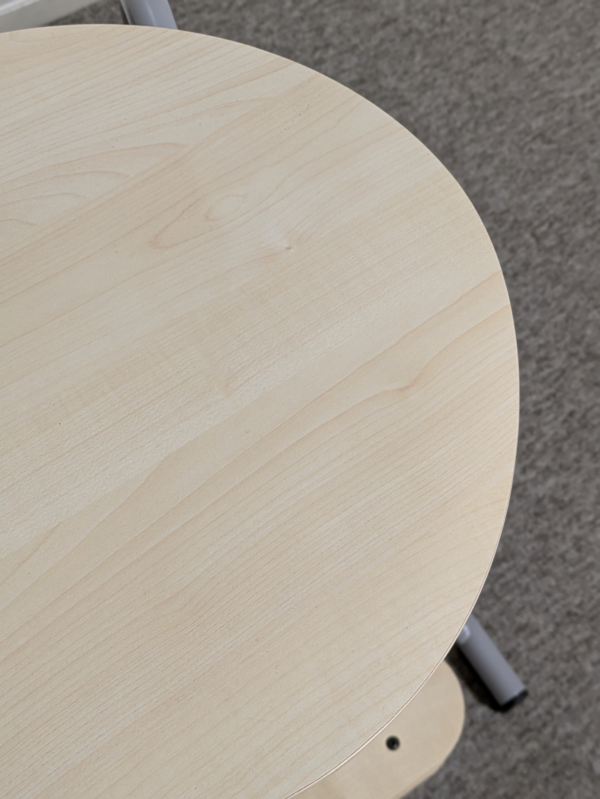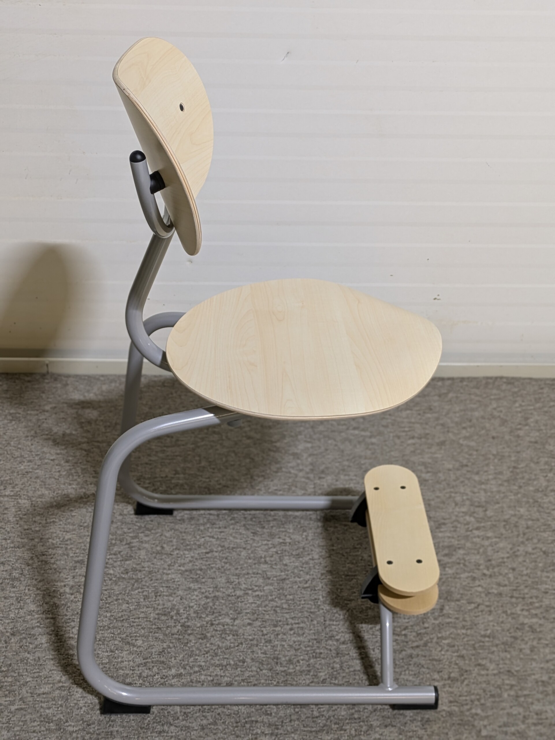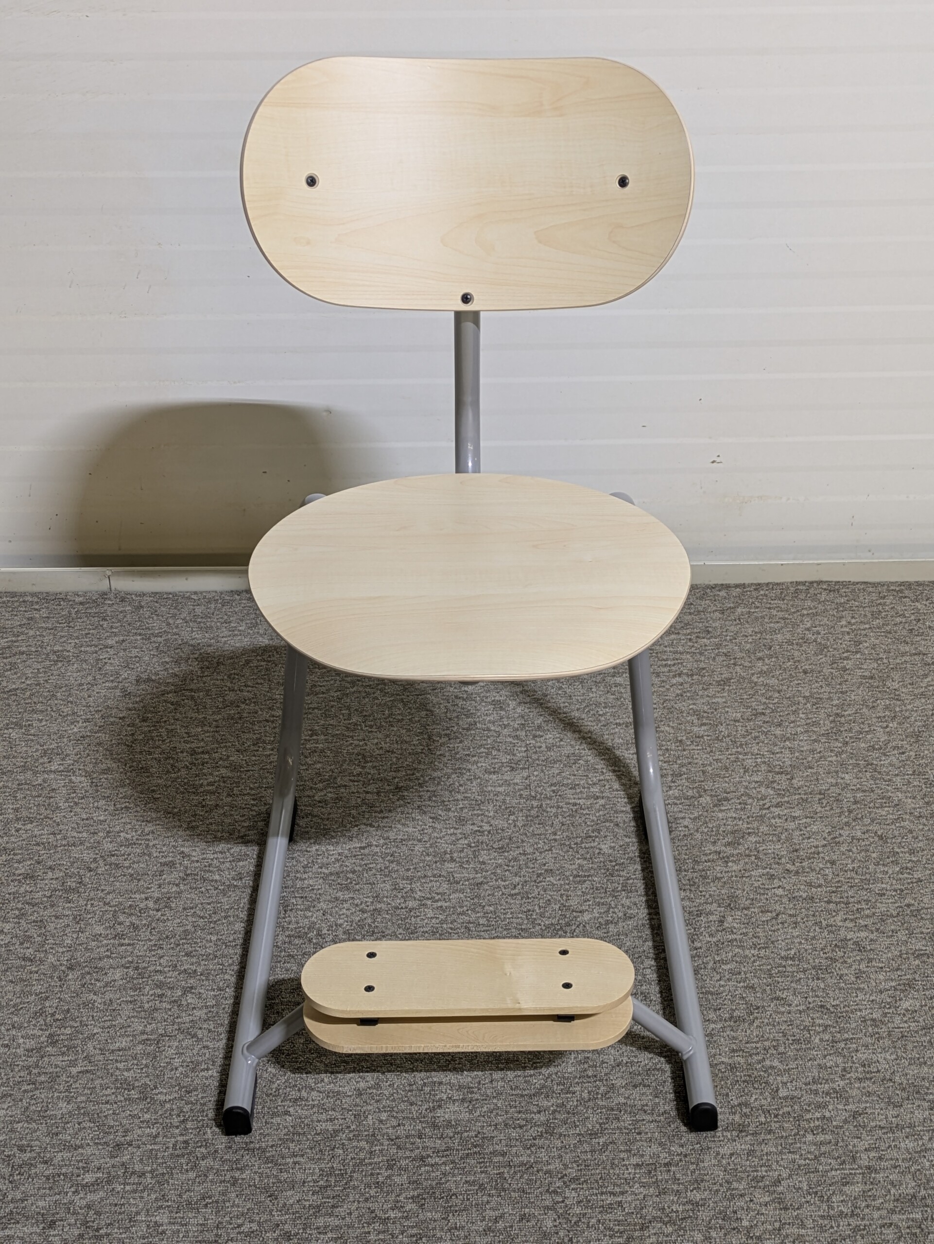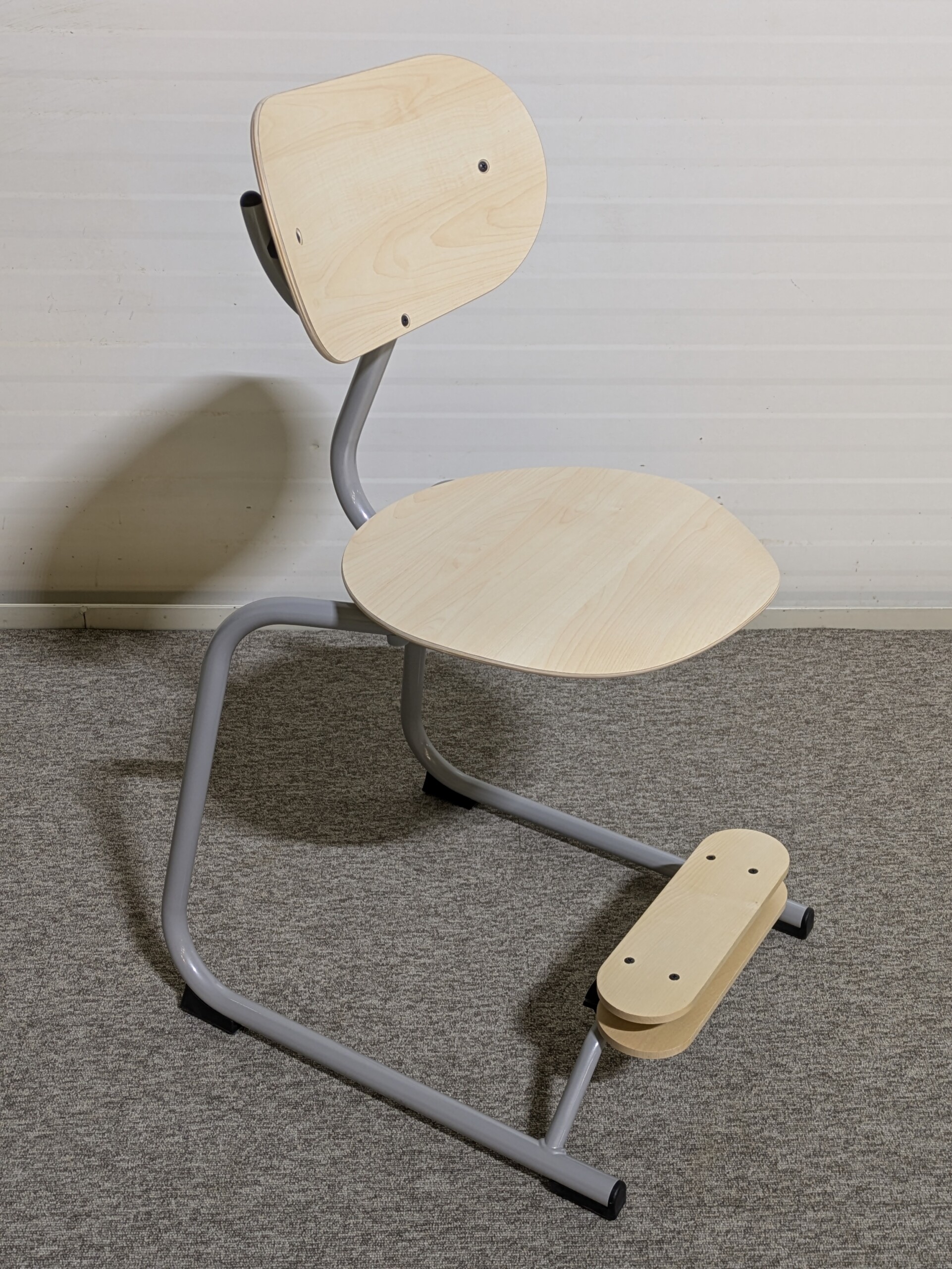 Seat and backrest in wood (bok). Sledgebase in metal (grey).