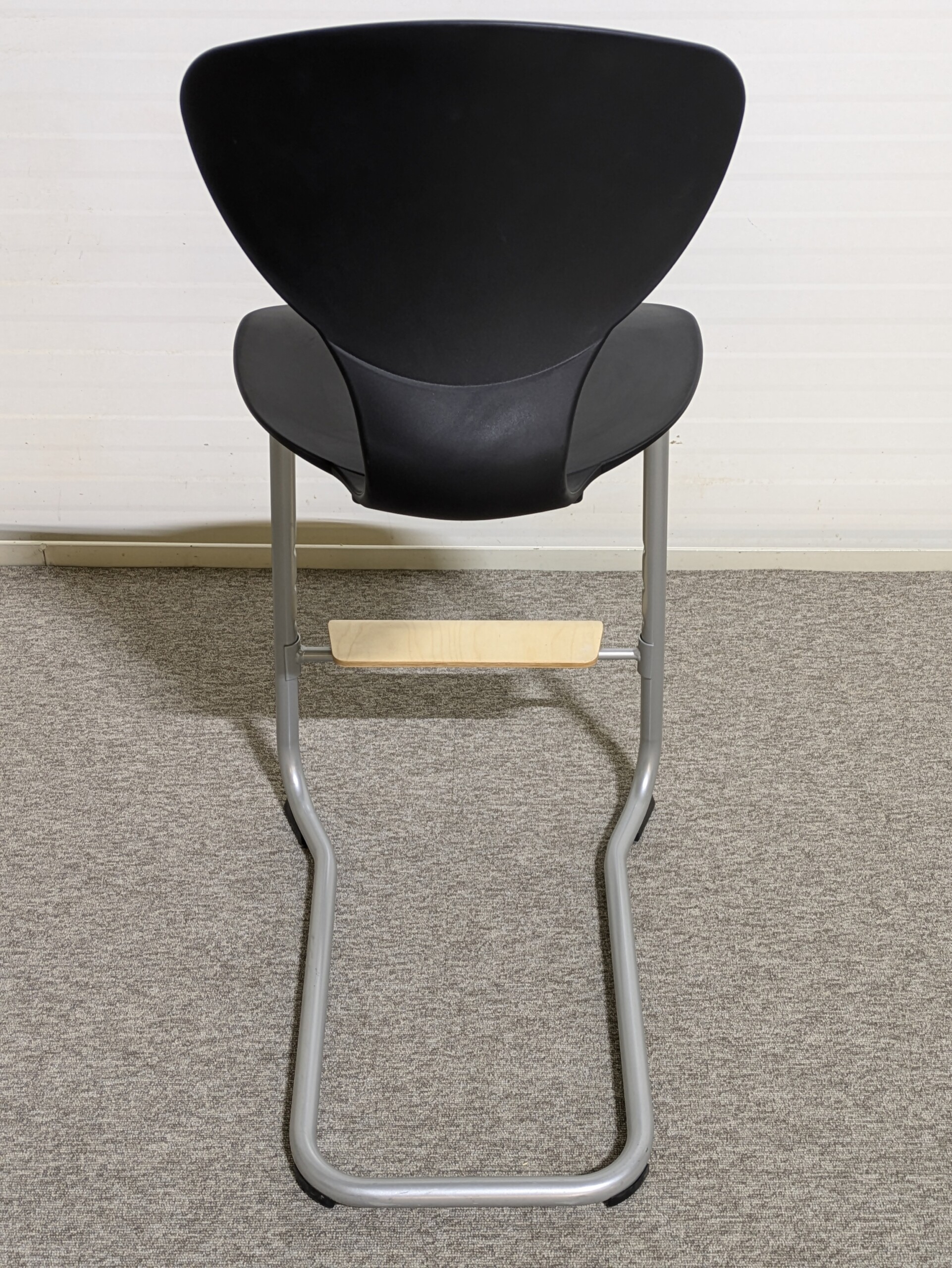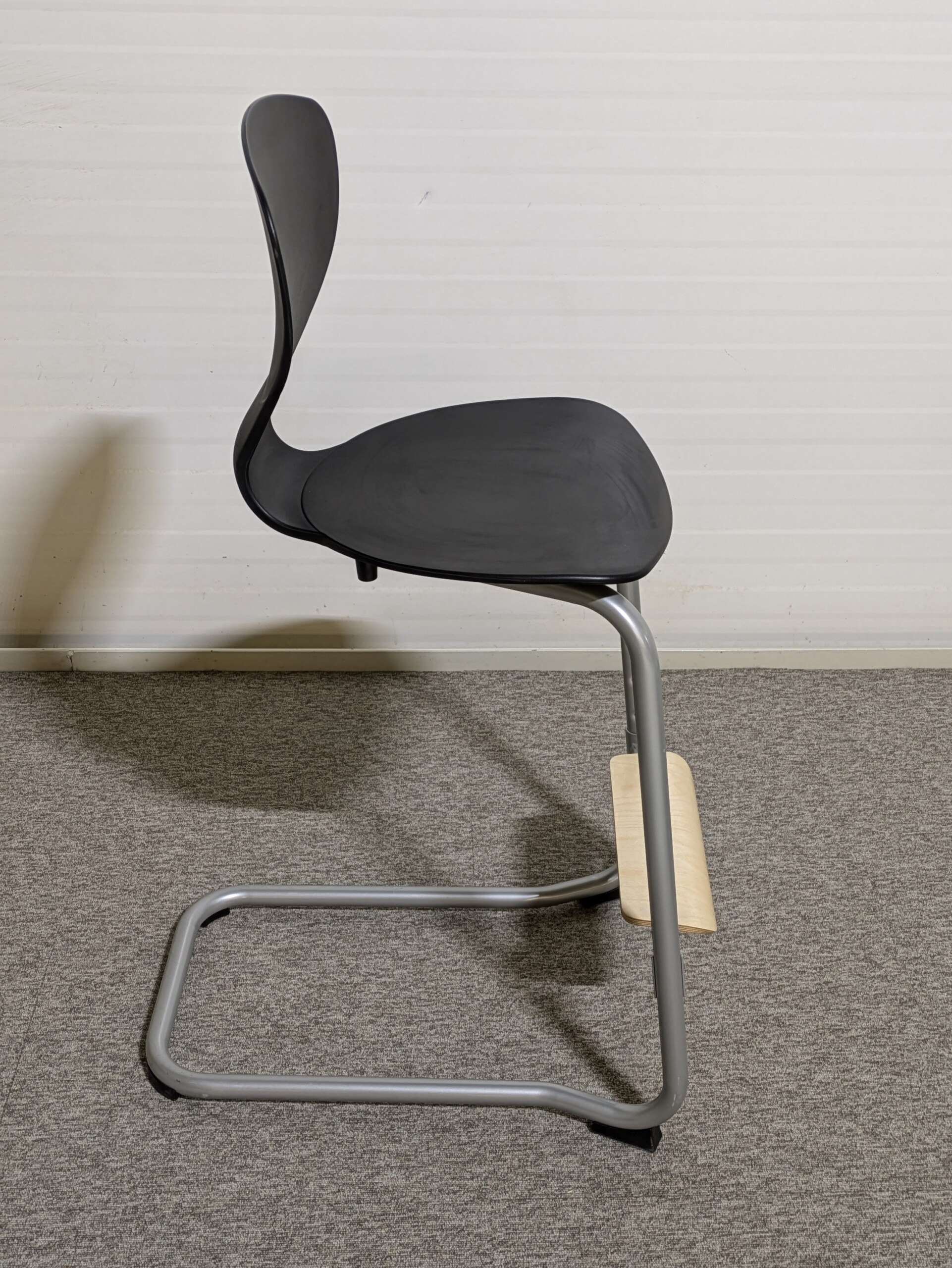 Seat and backrest in plastic (black). Sledgebase in metal (grey).