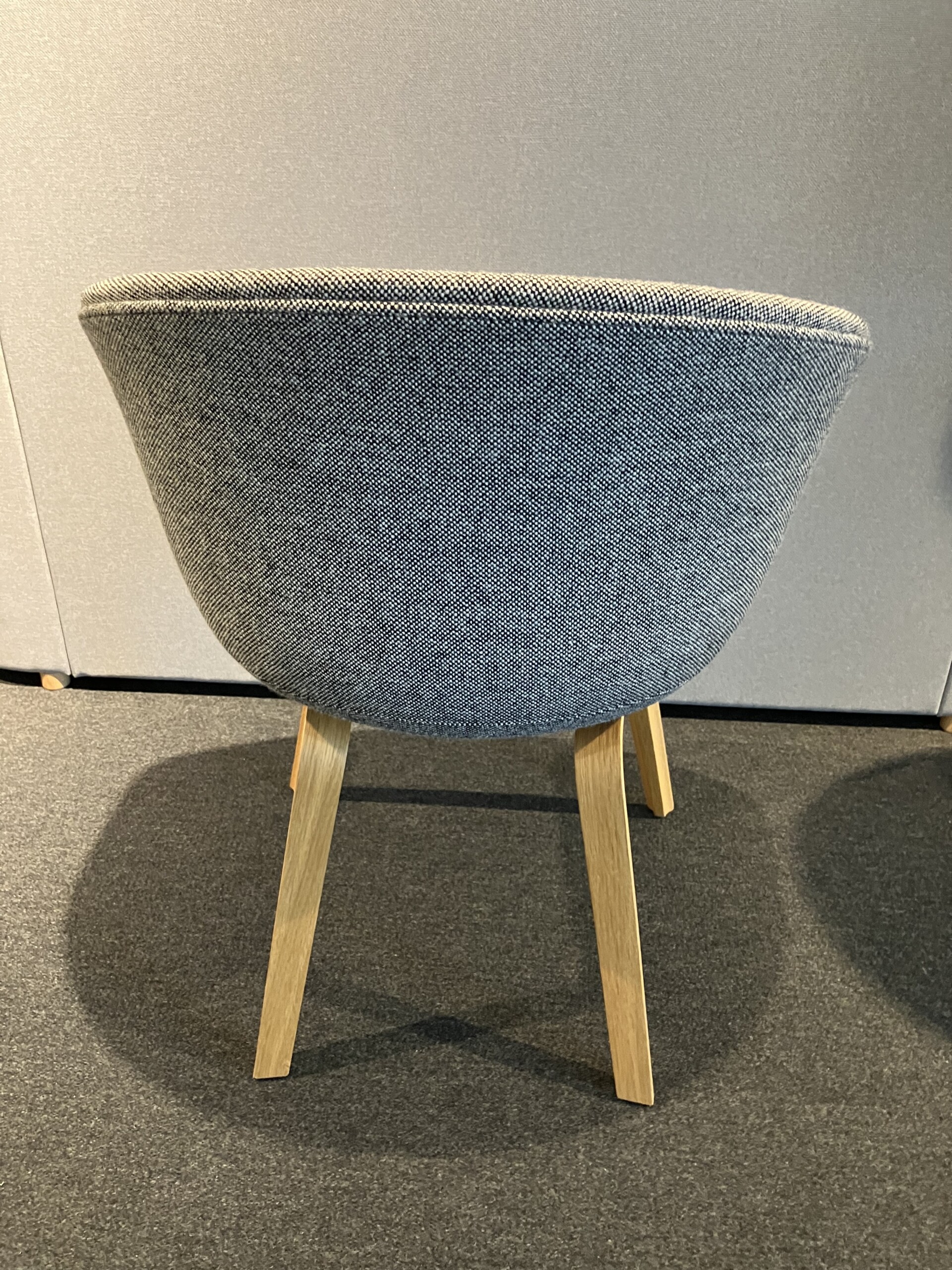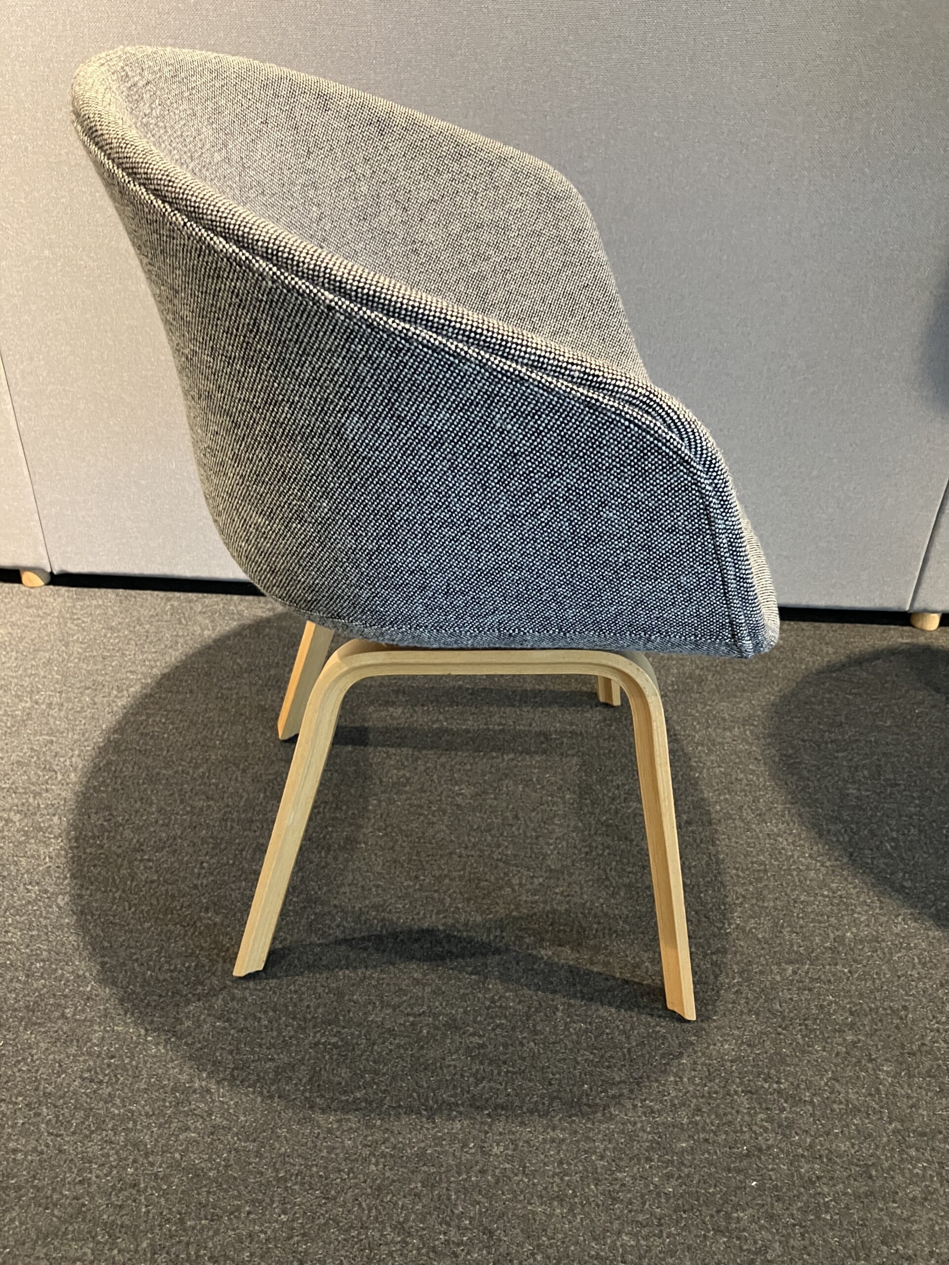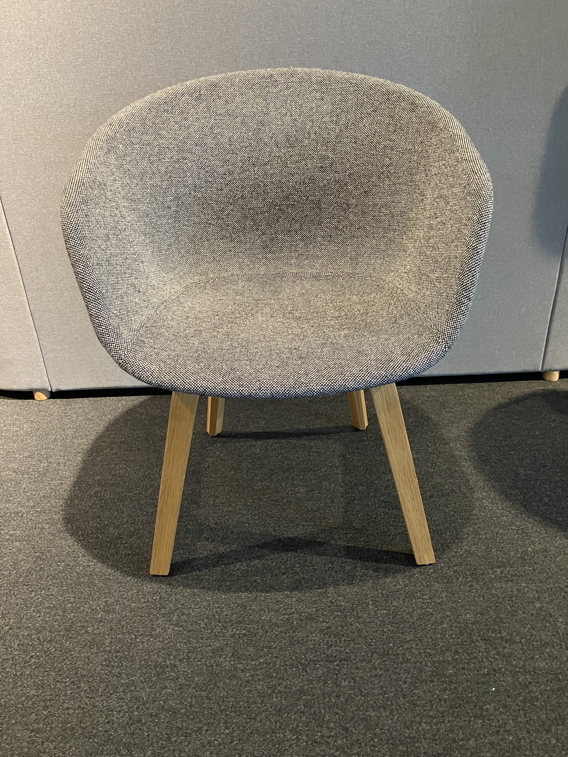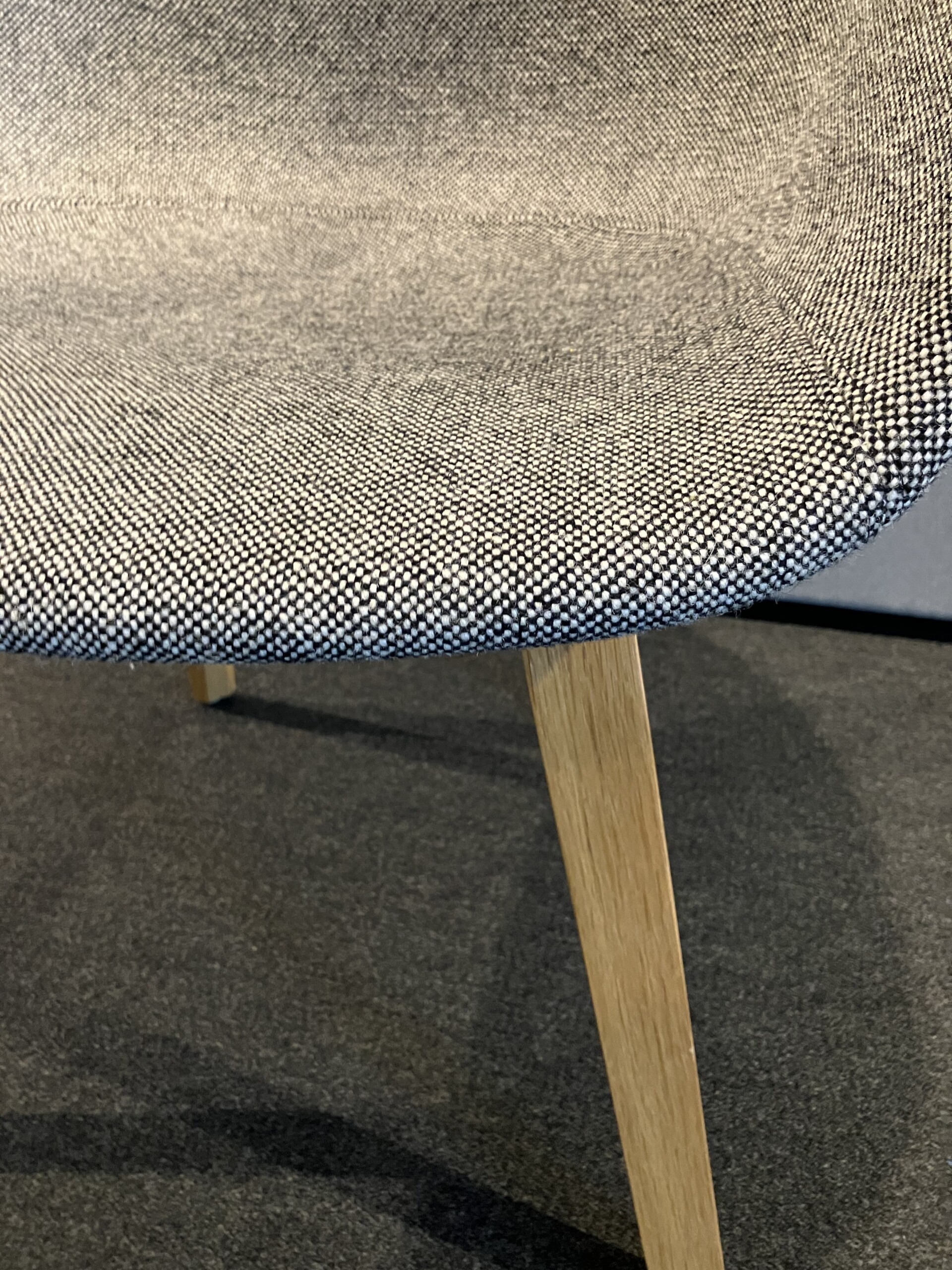 Seat and backrest in fabric (grey). Legs in wood (oak).