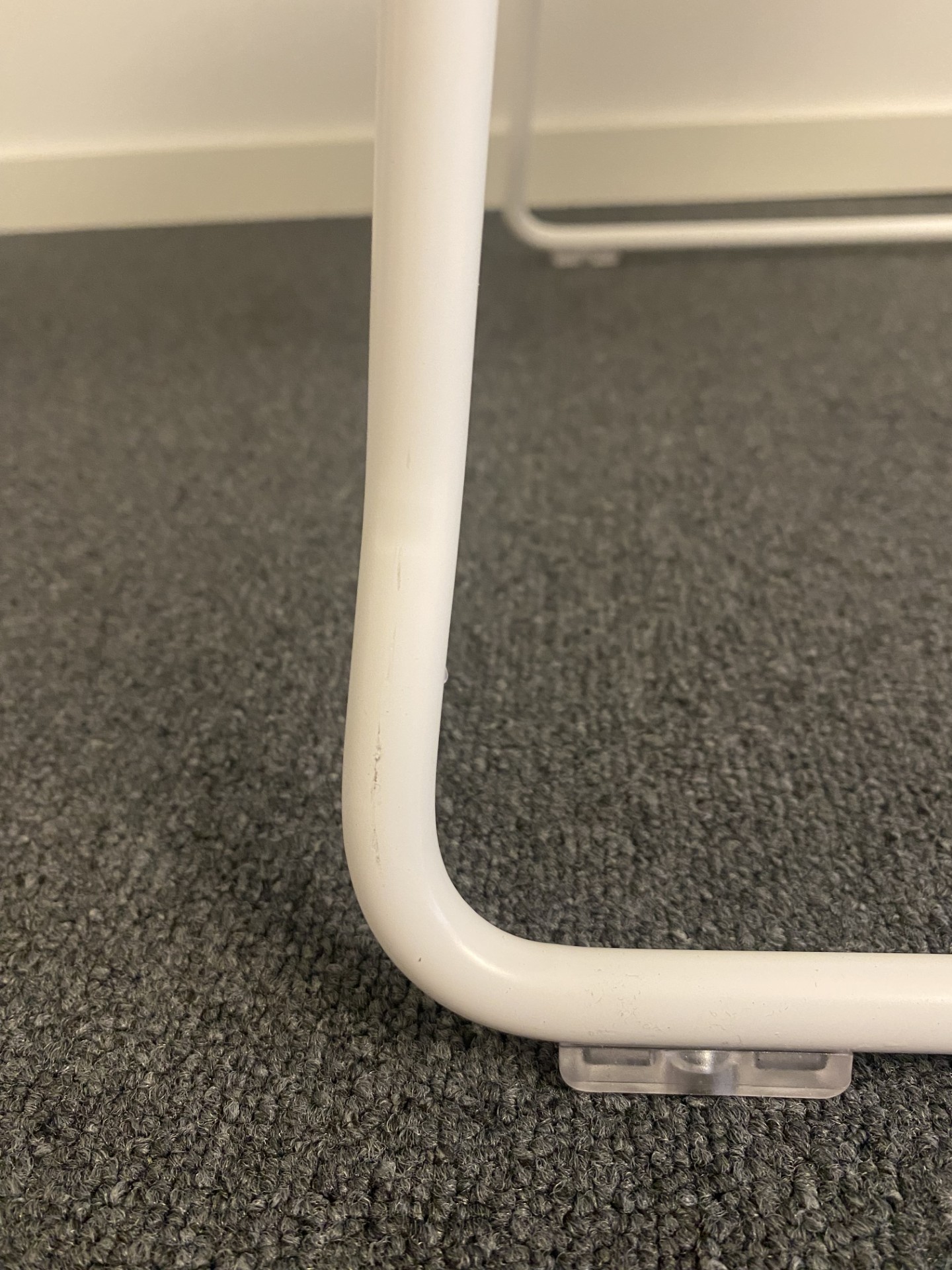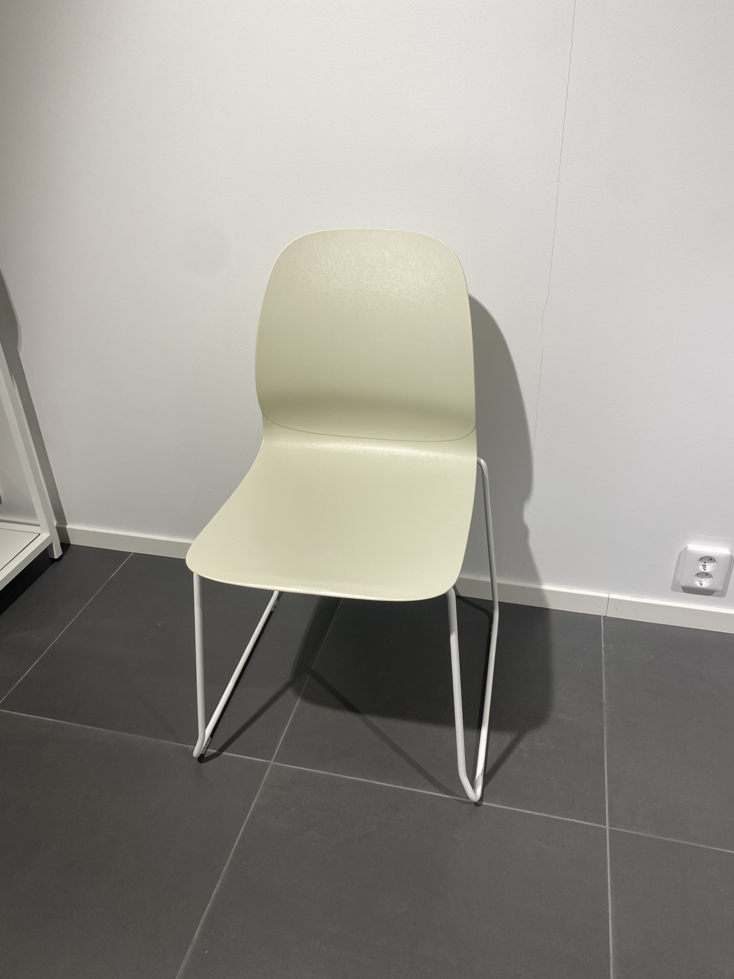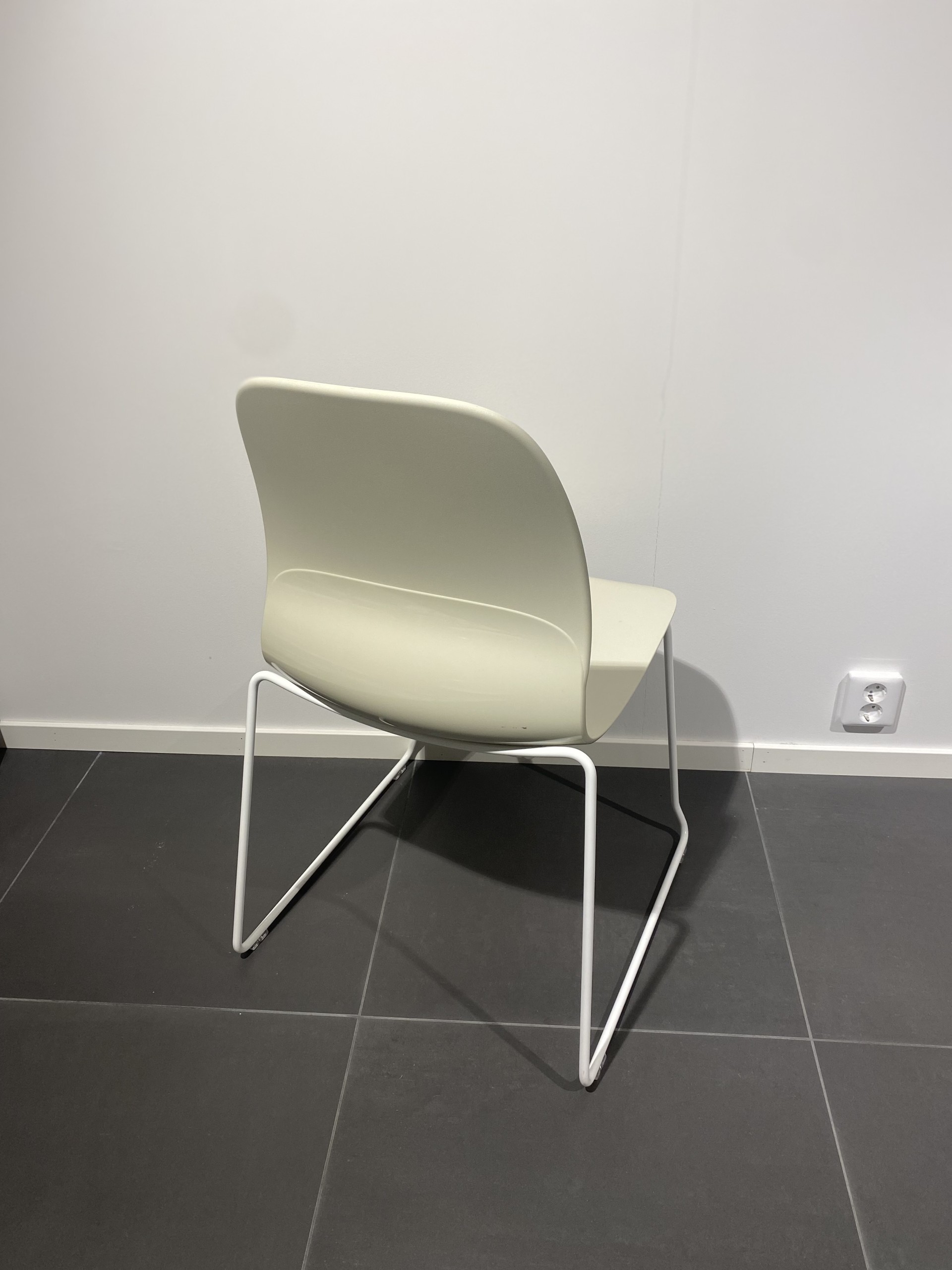 Seat and backrest in plastic (white). Sledgebase in metal (white).