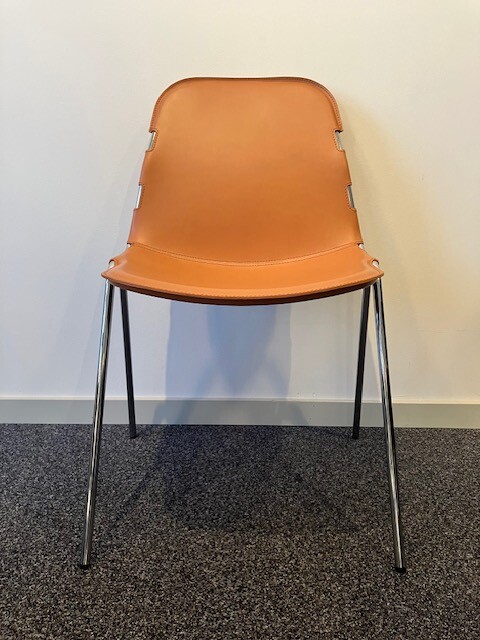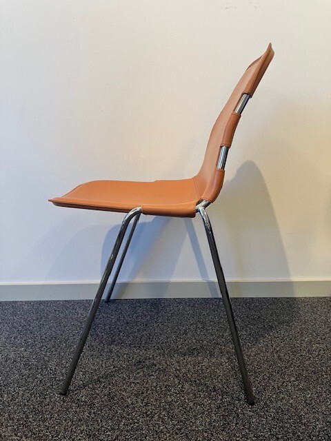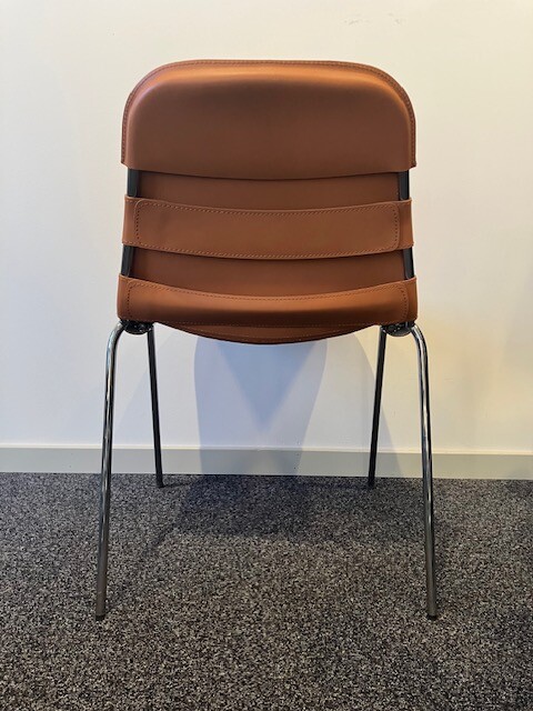 Seat and backrest in leather (brown). Legs in metal (aluminium).