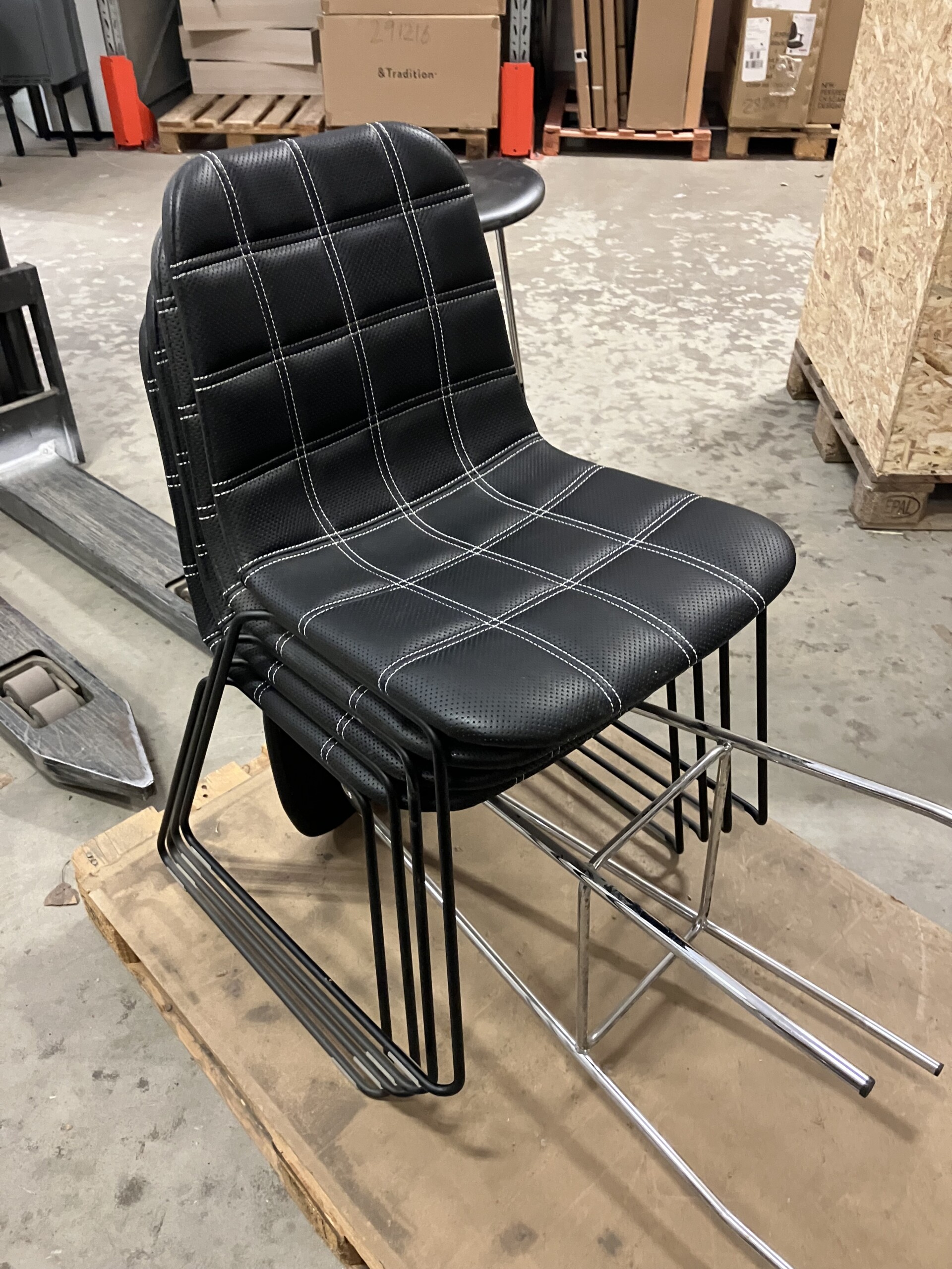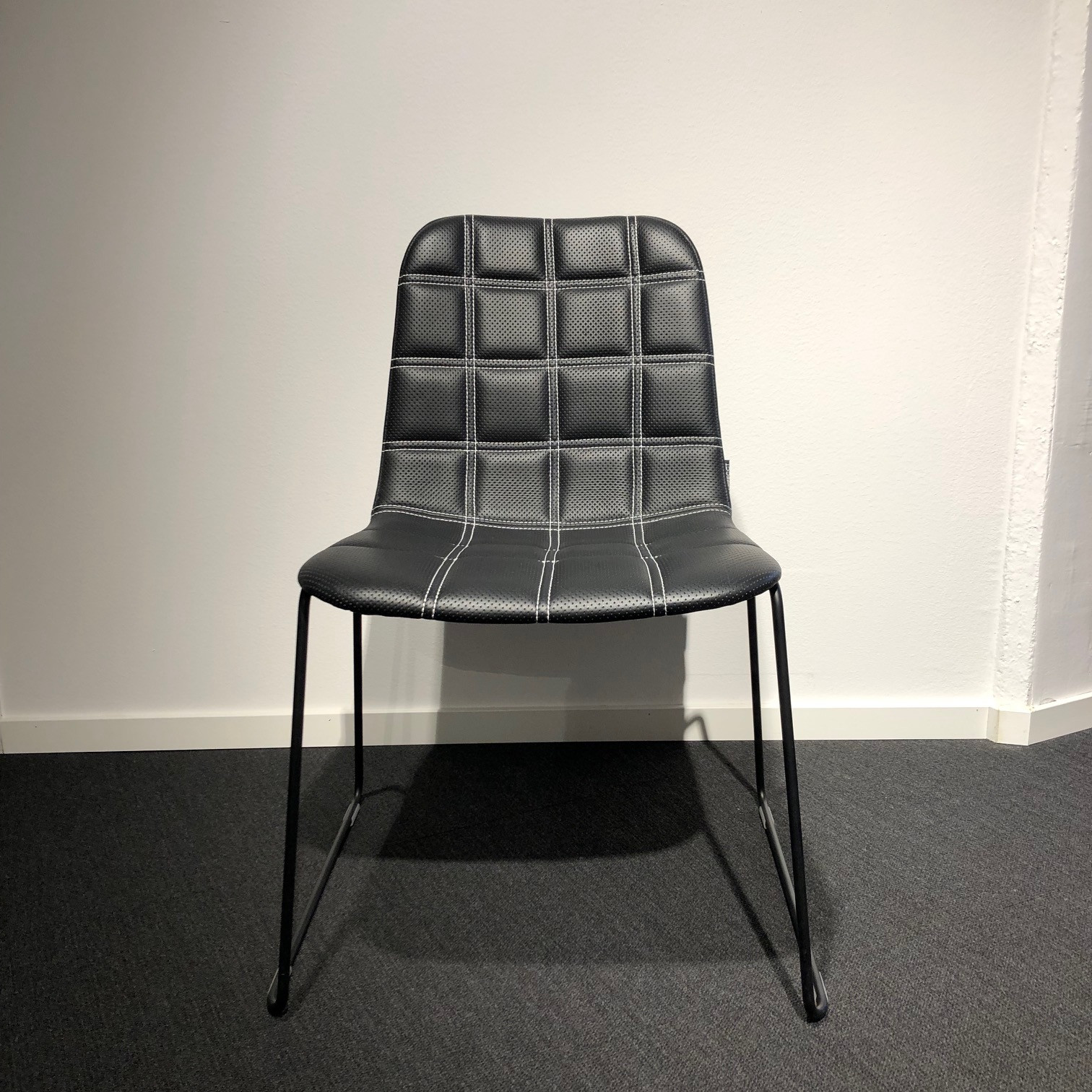 Seat and backrest in leather (black). Sledgebase in metal (black).