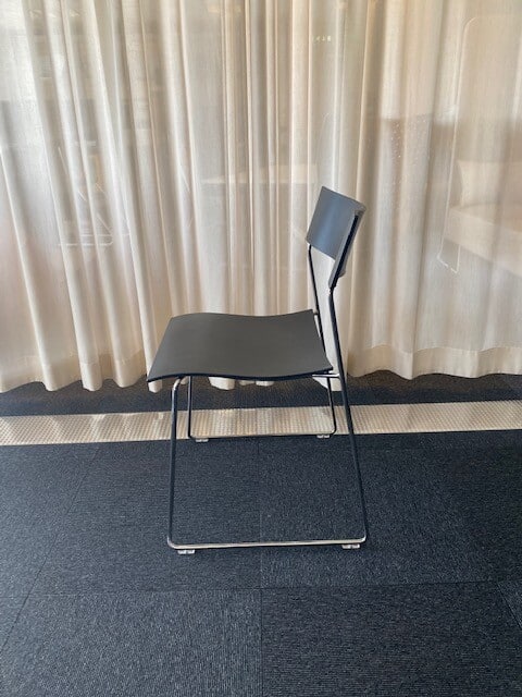Seat and backrest in plastic (black). Sledgebase in metal (chrome).