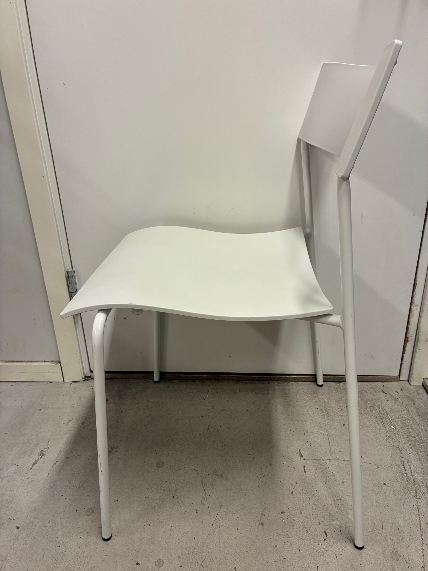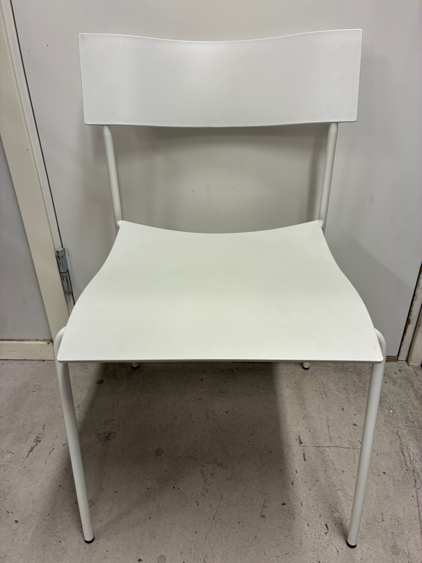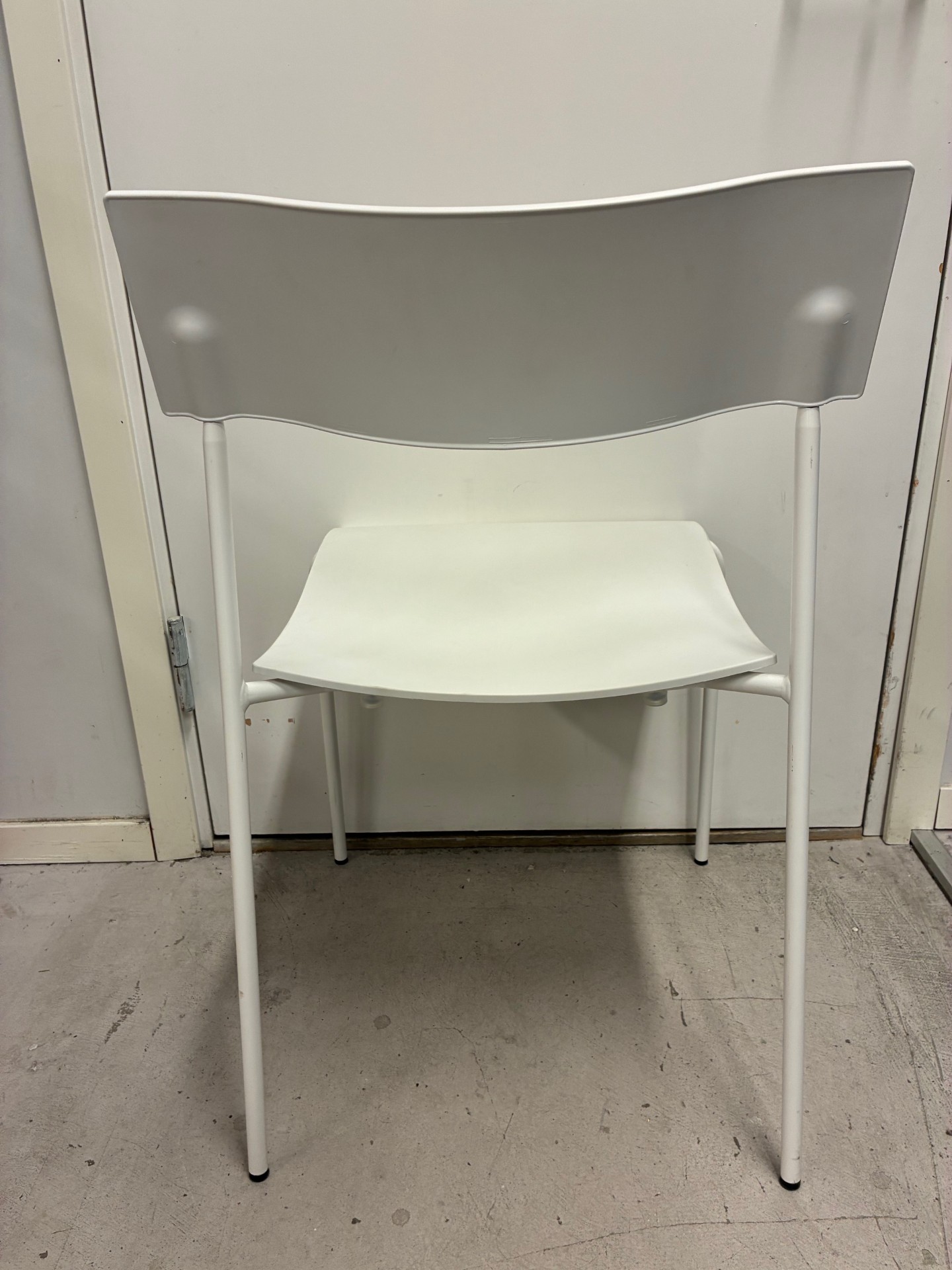 Seat and backrest in plastic (white). Legs in metal (white).