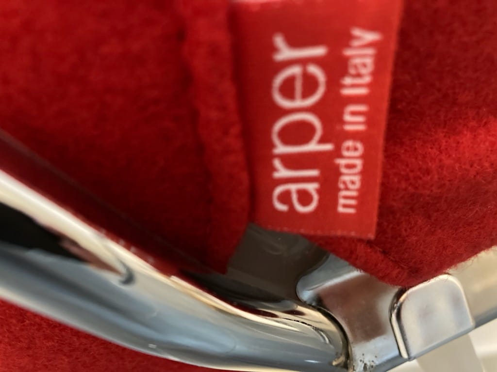 Seat and backrest in fabric (red). Legs in metal (aluminium).