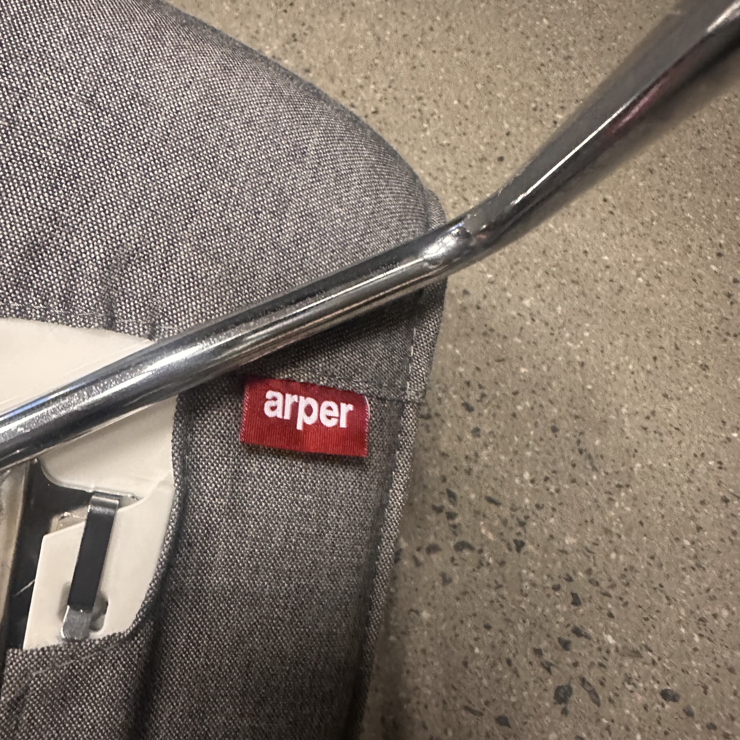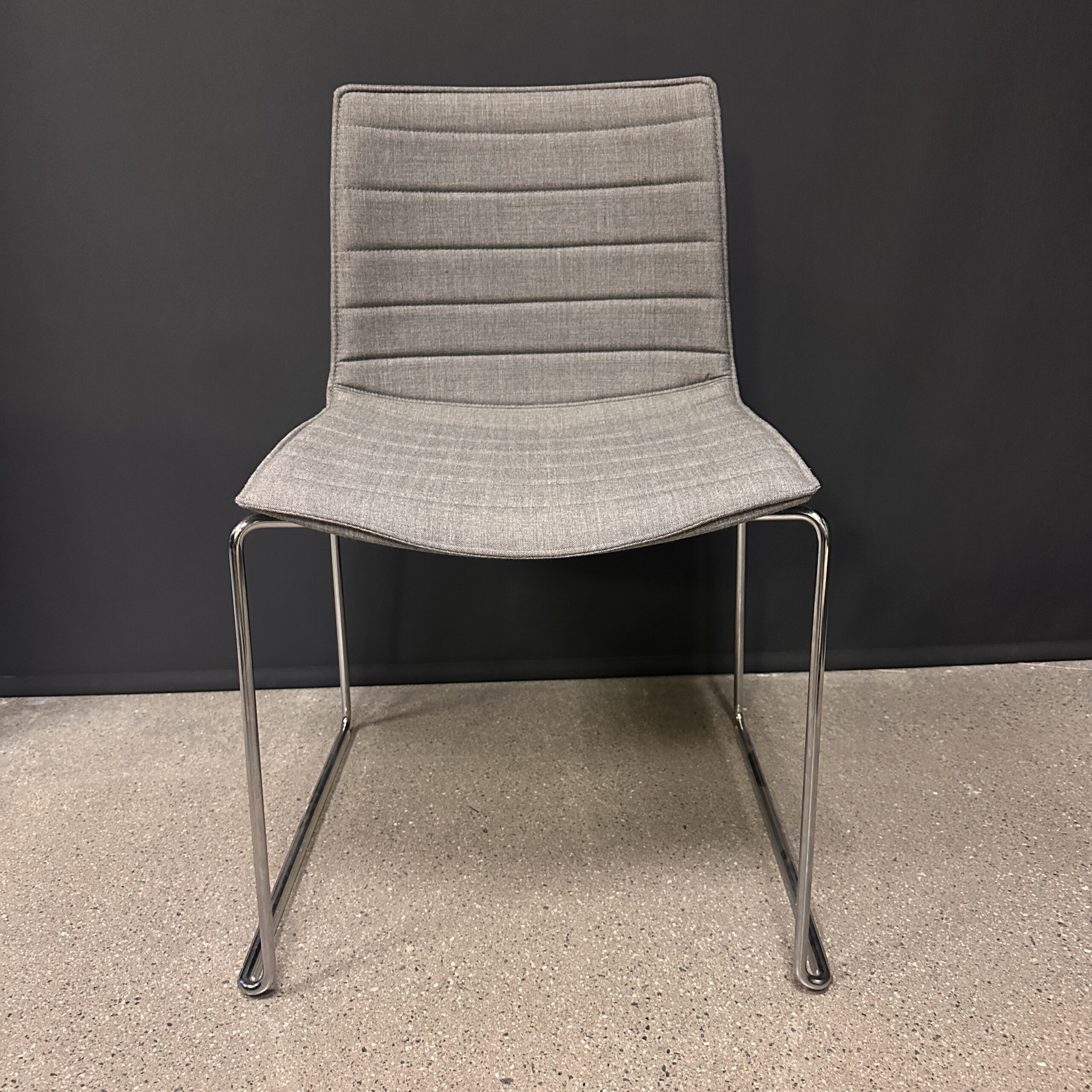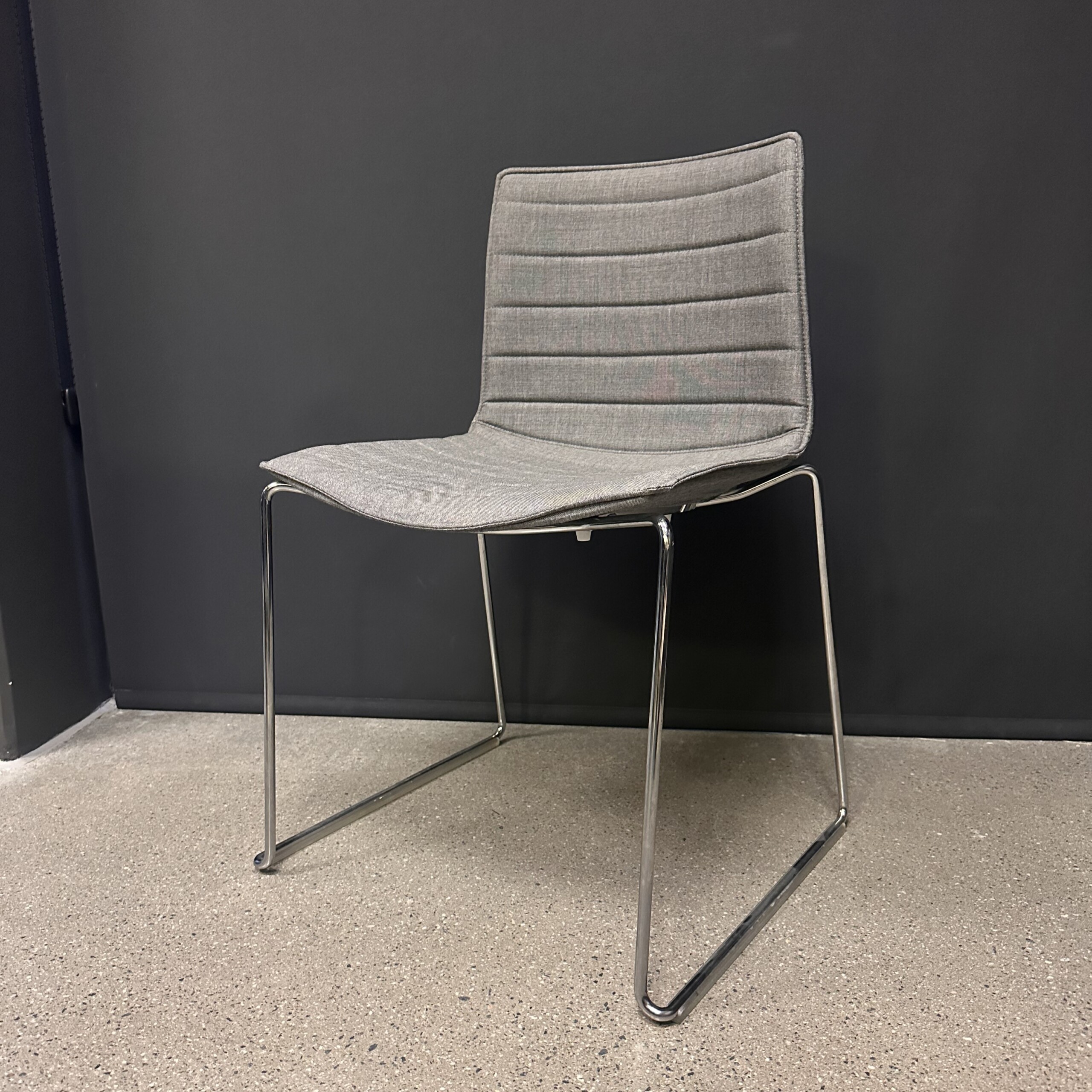 Seat and backrest in fabric (grey). Sledgebase in metal (silver).