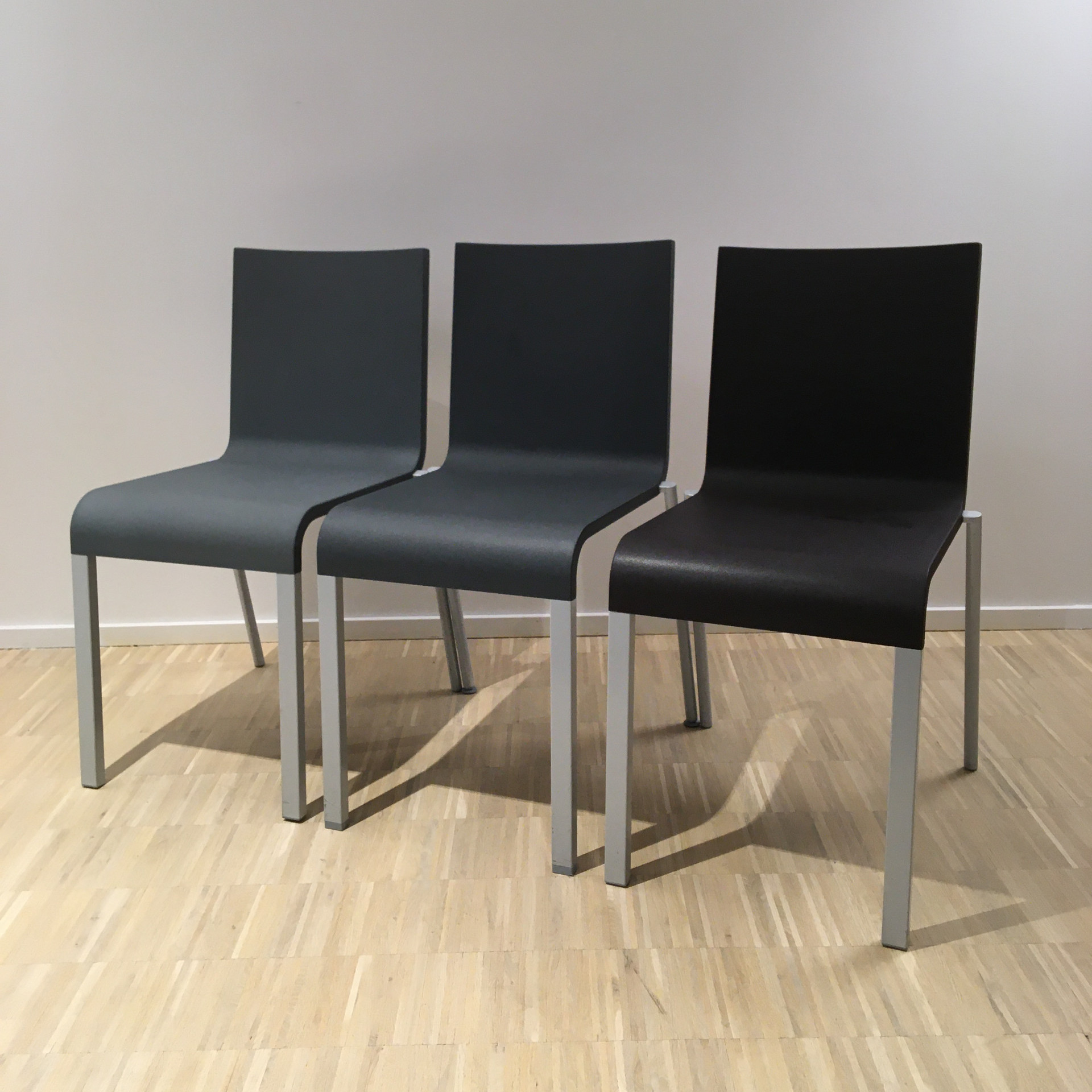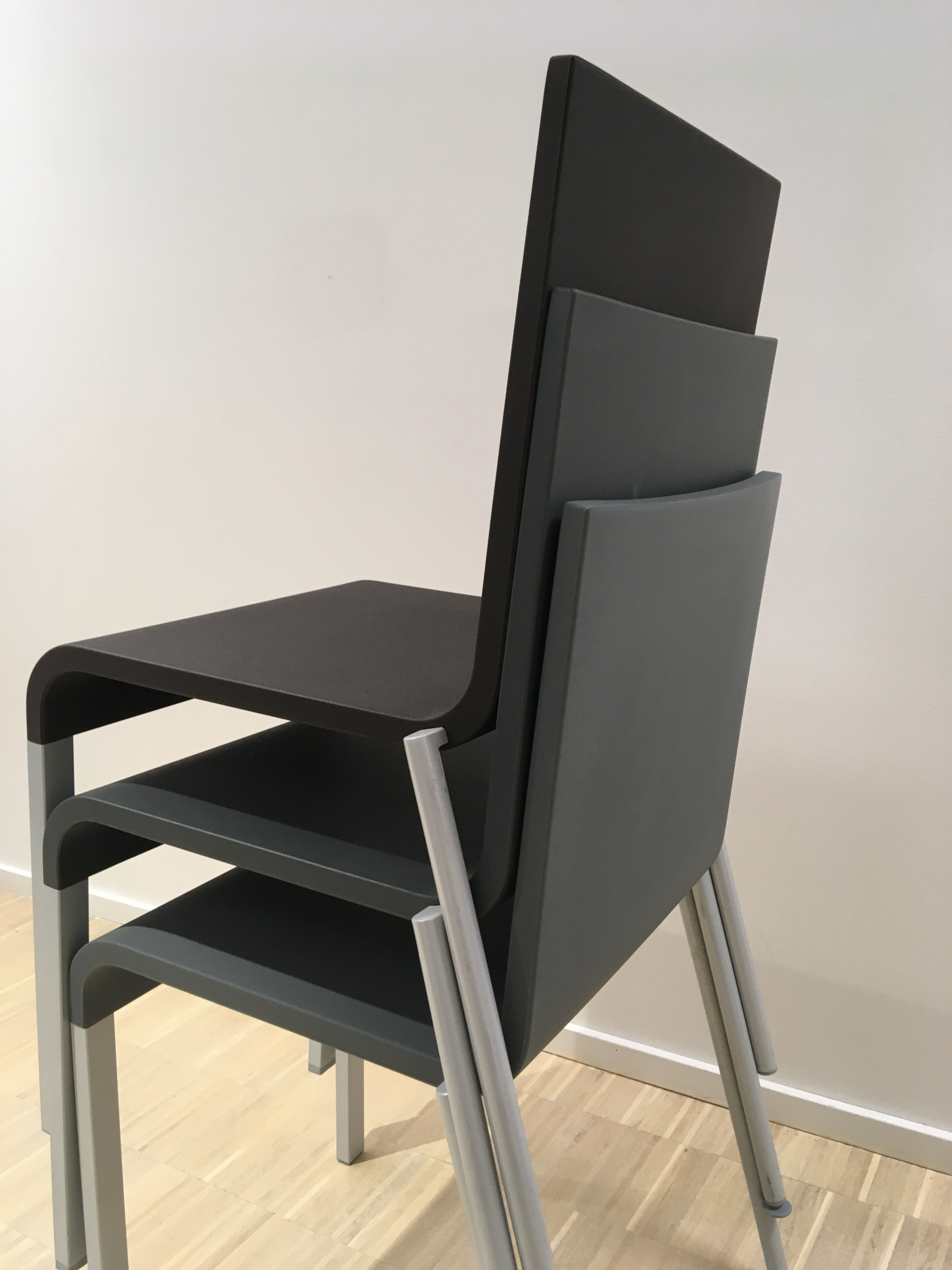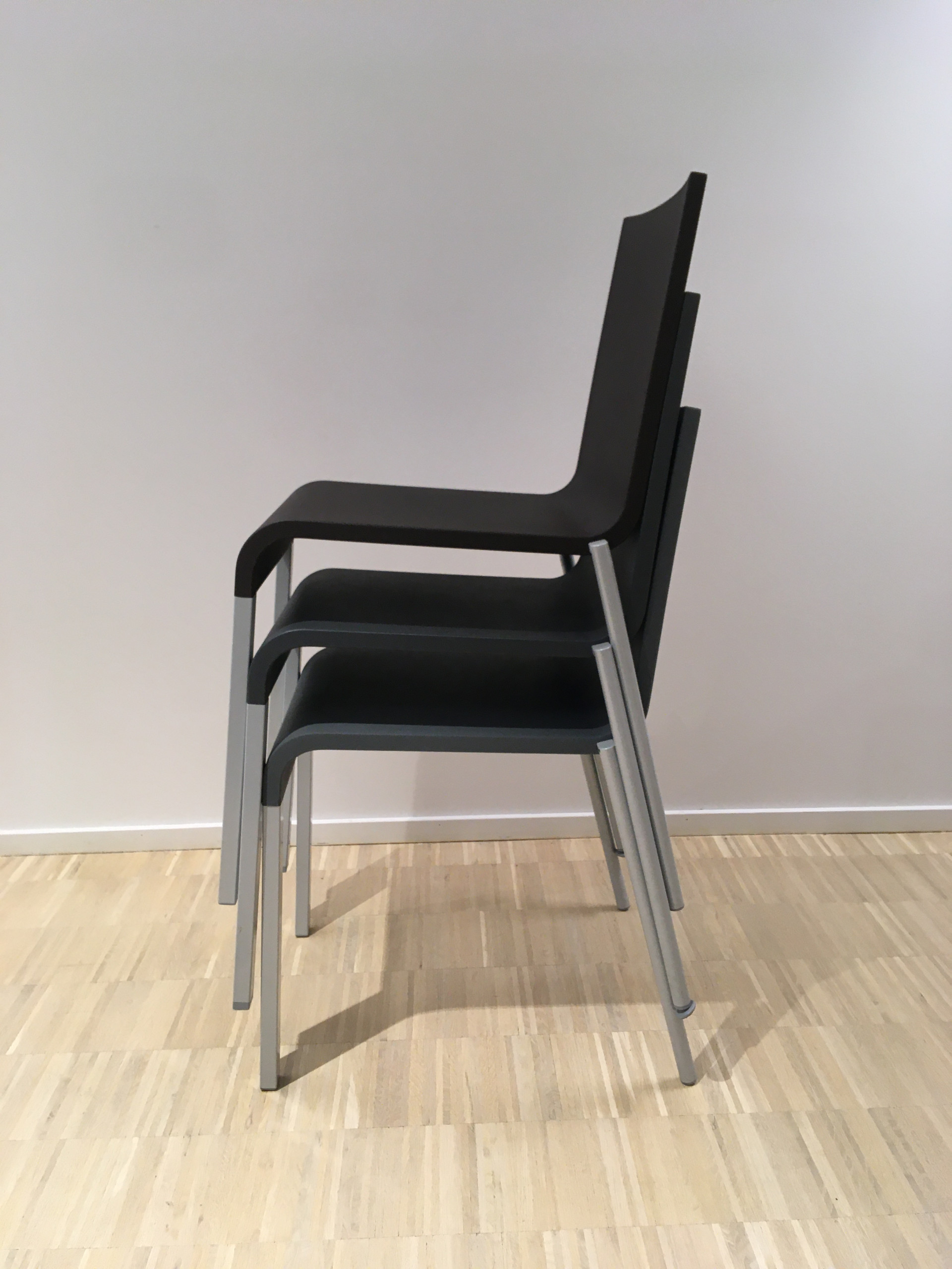 Seat and backrest in rubber (black). Legs in metal (silver).