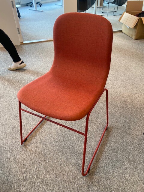 Seat and backrest in fabric (red). Sledgebase in metal (red).