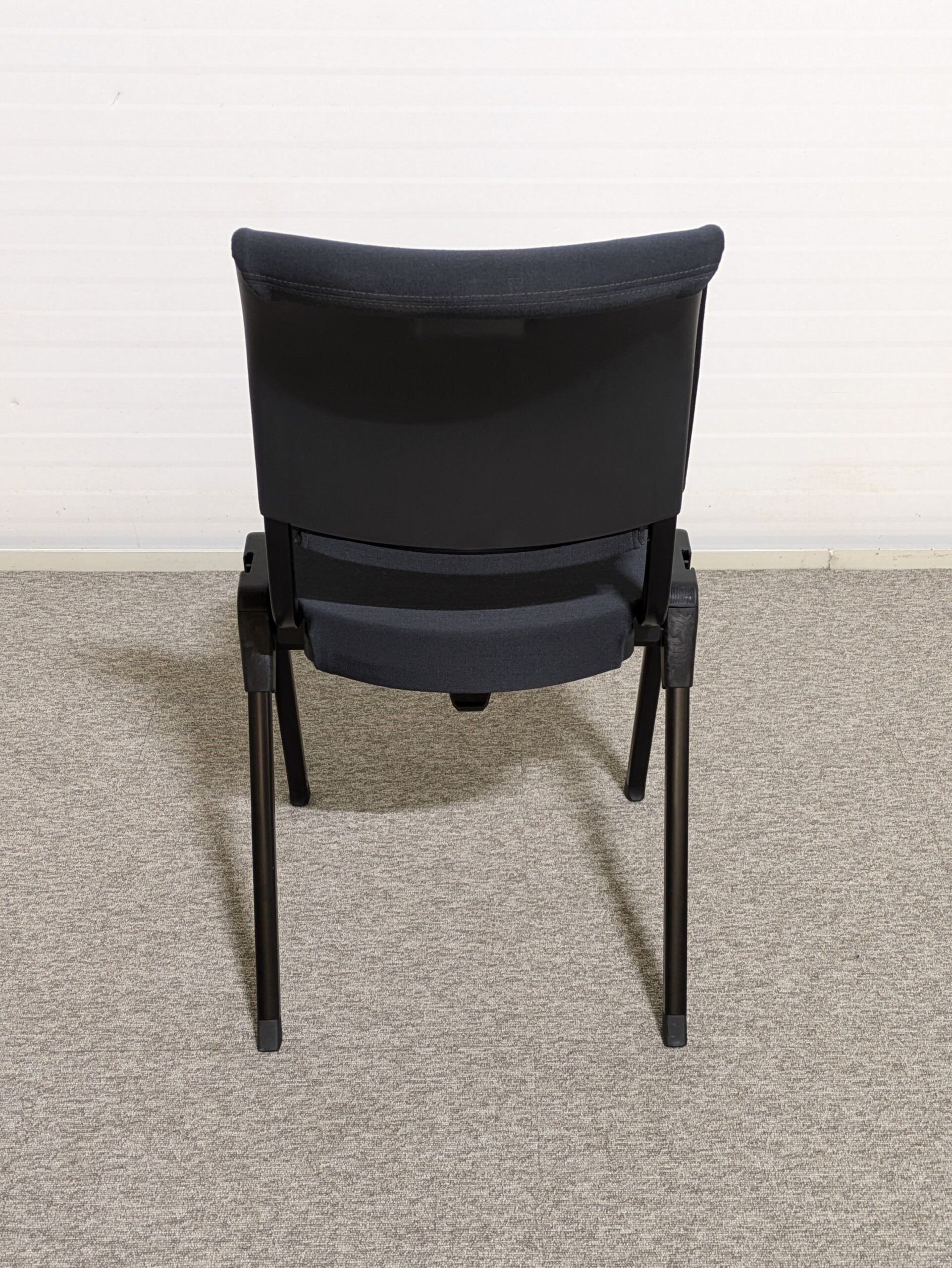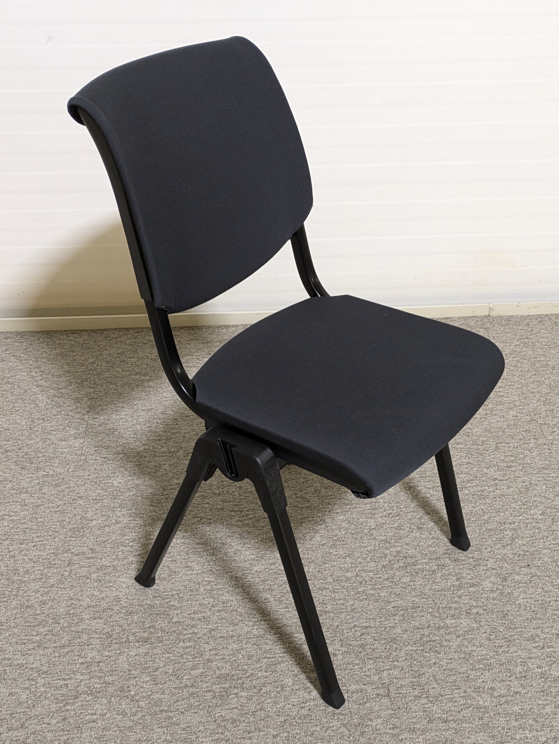 Seat and backrest in fabric (grey). Legs in metal (black).